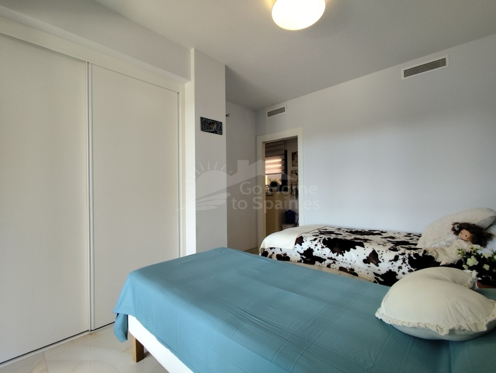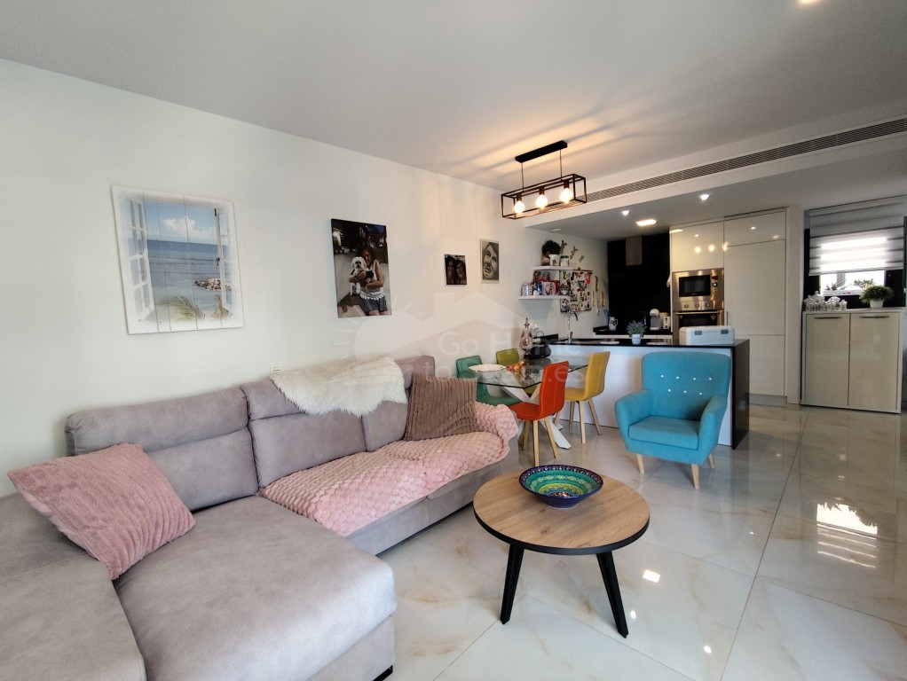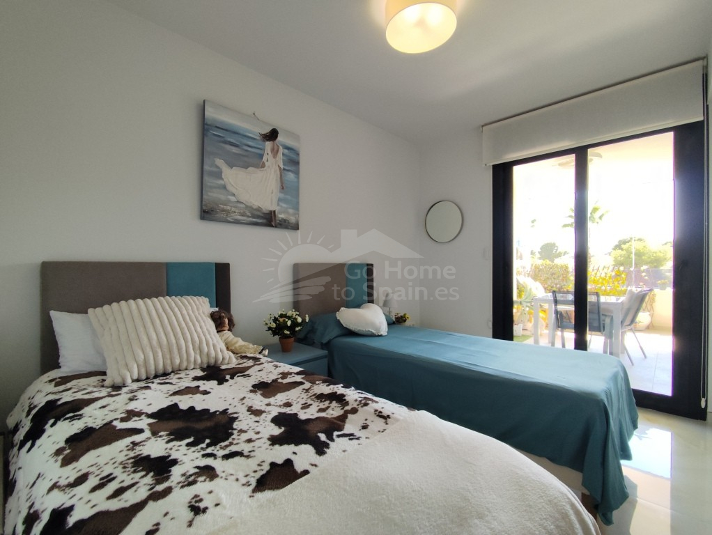 Apartamento. Apartamento moderno en venta en la Costa Blanca – Amplia terraza y vistas a la piscina.¿Busca un apartamento listo para entrar a vivir en la Costa Blanca con espacio exterior, comodidad y una ubicación privilegiada€ Este precioso apartamento de 2 dormitorios, construido en 2020, lo tiene todo: ideal para vivir de forma permanente, para vacaciones o como inversión para alquiler en España. Desde el momento en que entre, notará la luminosidad, la amplitud y la fluidez de la distribución. La cocina de planta abierta se integra a la perfección con la luminosa sala de estar, que da acceso directo a una espaciosa terraza orientada al sureste con vistas a los jardines comunitarios y la piscina. Esta terraza es una verdadera joya: está parcialmente cerrada con cortinas de cristal, para que puedas disfrutarla todo el año. Ábrela en verano o crea un acogedor espacio adicional durante los meses más fríos. Vivienda confortable con 2 dormitorios y 2 baños. El apartamento ofrece: 2 amplias habitaciones Dos baños modernos, ambos con calefacción por suelo radiante. Un dormitorio principal con baño privado. Ideal para recibir invitados, visitas familiares o simplemente para disfrutar de tu propio espacio con comodidad. Características principales Terraza orientada al sureste con vistas despejadas. Parcialmente amueblado – listo para entrar a vivir Cocina moderna totalmente equipada Aire acondicionado central (frío y calor) Persianas eléctricas + estores interiores Calefacción por suelo radiante en ambos baños. Acceso mediante ascensor desde el garaje subterráneo. Plaza de aparcamiento subterráneo privado Trastero seguro Complejo residencial bien mantenido Ubicado en una comunidad tranquila y verde, disfrutarás de: Hermosos jardines paisajísticos con palmeras y césped natural. Una gran piscina comunitaria cancha de petanca Entorno tranquilo y bien cuidado. Este es el tipo de lugar donde uno se siente inmediatamente de vacaciones. Ubicación privilegiada – Orihuela Costa Ubicado en una zona muy solicitada del sur de la Costa Blanca, todo está al alcance de la mano: A poca distancia a pie de tiendas, bares y restaurantes. Cerca del centro comercial La Zenia Boulevard Cerca de varios de los mejores campos de golf. A tan solo un corto trayecto en coche de las playas de arena blanca de Orihuela Costa. Tanto si busca comprar una propiedad en España por motivos de estilo de vida como si desea invertir, esta ubicación siempre tiene mucha demanda. Listo para mudarse: ¡empiece a disfrutar de España de inmediato! Este moderno apartamento en Orihuela Costa está completamente listo: sin esperas ni complicaciones. Solo tienes que traer tu maleta y empezar a disfrutar del estilo de vida mediterráneo.¿Le interesa€ Póngase en contacto con Sunrisa Real Estate hoy mismo para obtener más información o para programar una visita privada.