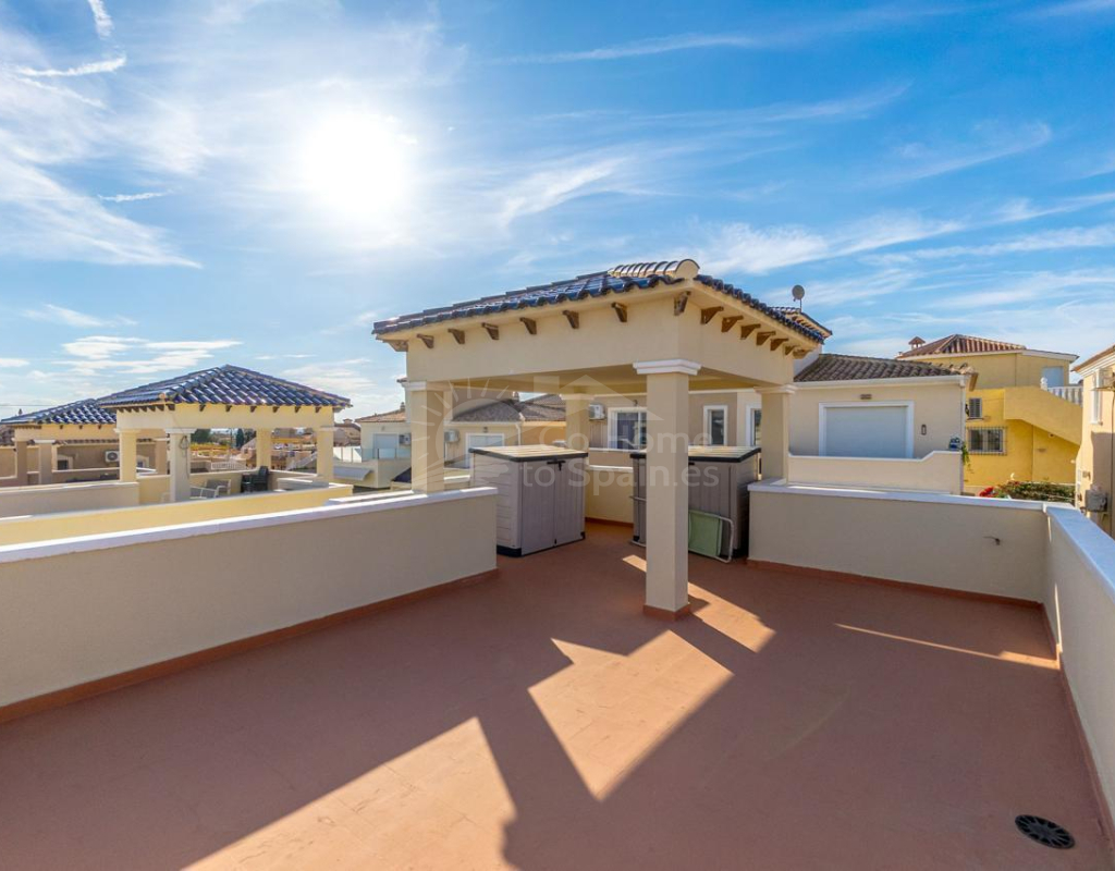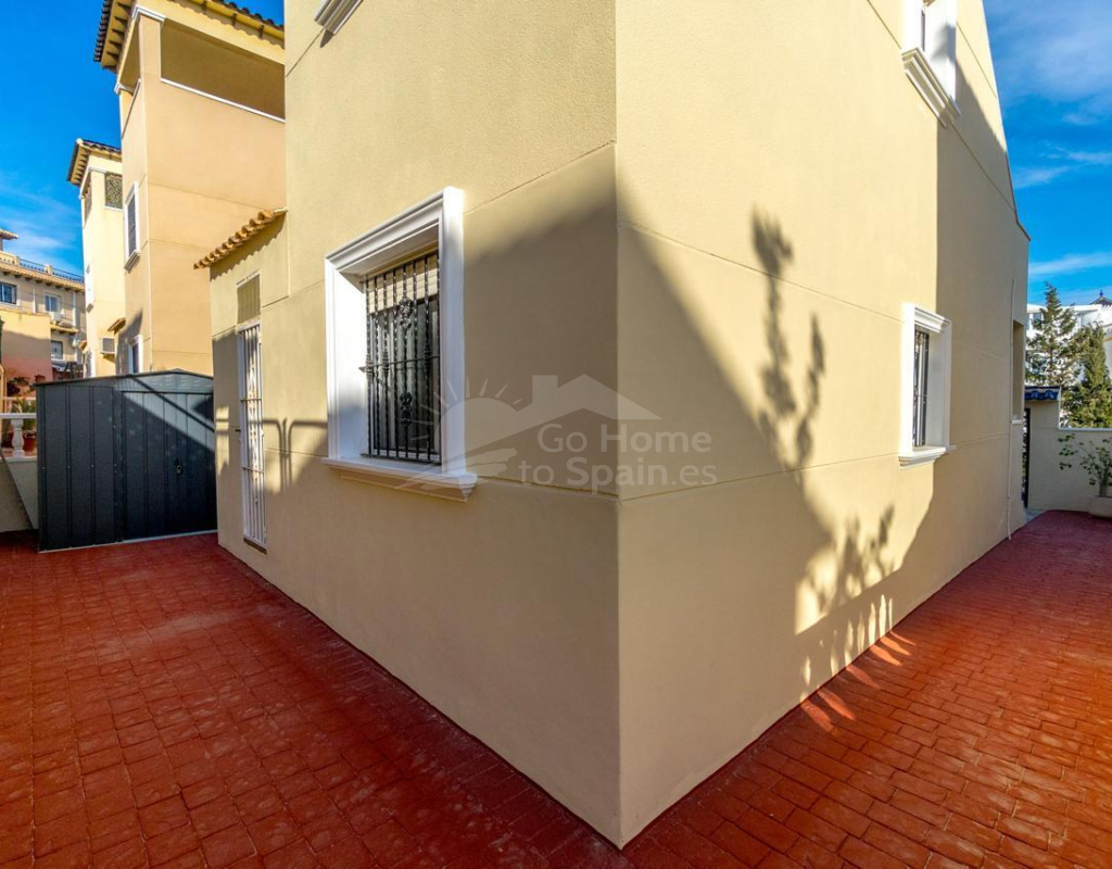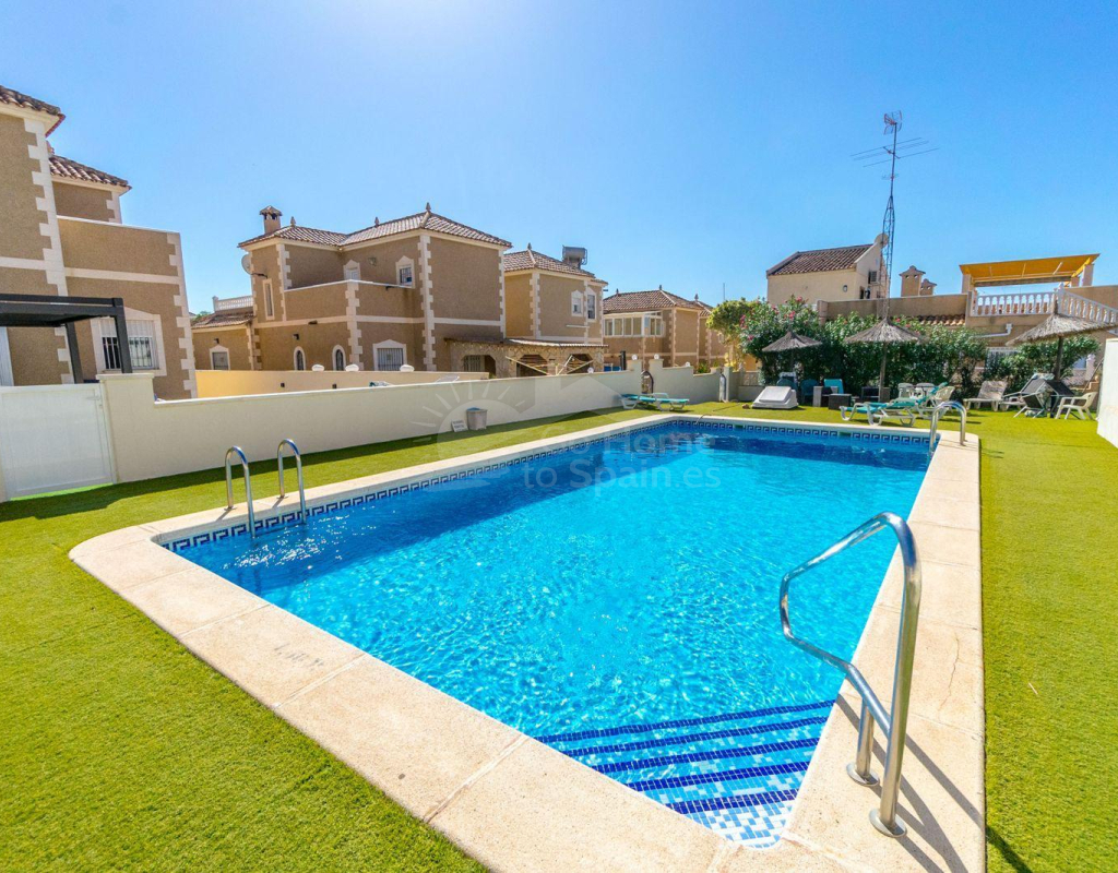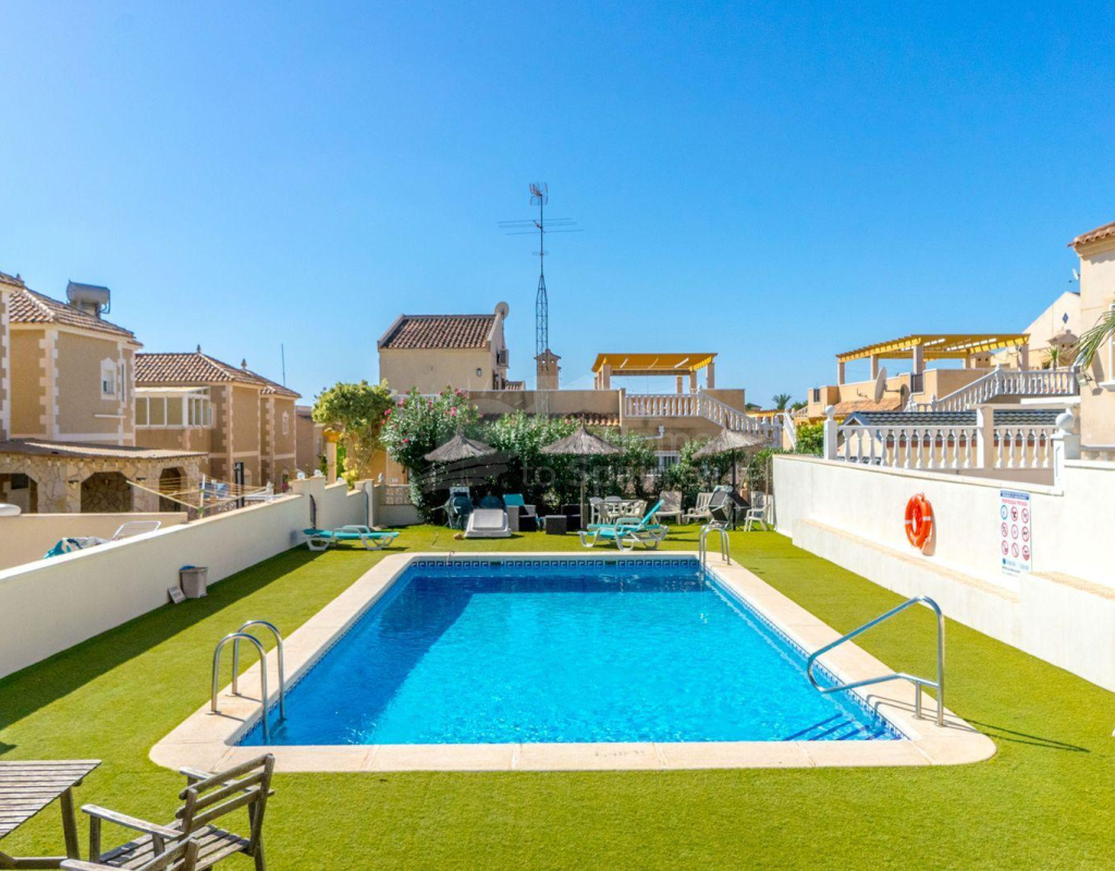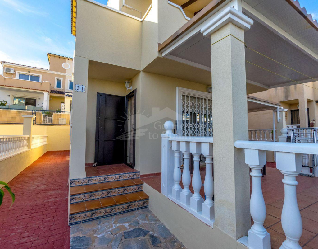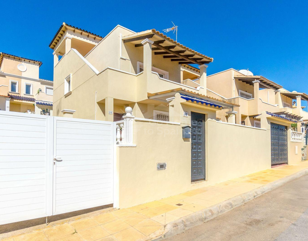 Casa unifamiliar en Orihuela Costa (Las Filipinas) 295.000 €Descripción generalPresentamos esta espectacular casa unifamiliar por 295.000€, ubicada en Las Filipinas, una prestigiosa y tranquila zona residencial de Orihuela Costa, al sur de la provincia de Alicante. Rodeada de naturaleza mediterránea y a pocos minutos de las mejores playas de la Costa Blanca, esta vivienda ofrece una combinación ideal entre privacidad, confort y calidad de vida.La propiedad está situada en una zona bien comunicada, cercana a campos de golf, centros comerciales, zonas de ocio, colegios internacionales y todos los servicios necesarios para vivir todo el año o disfrutar de vacaciones.Exterior y accesoEl acceso a la vivienda se realiza a través de un amplio patio privado que rodea toda la propiedad. En la parte frontal, encontramos un espacio perfecto para reuniones al aire libre, barbacoas y momentos de relax.El terreno permite estacionar cómodamente un vehículo, guardar bicicletas y colocar mobiliario de jardín o plantas decorativas. La parcela está delimitada por un muro de estilo mediterráneo, que proporciona privacidad y seguridad.Distribución interiorLa casa está diseñada con amplitud, funcionalidad y luz natural como protagonistas. Los acabados de calidad y los amplios ventanales ofrecen un ambiente acogedor y elegante.Planta bajaSalón-comedor Amplio y cómodo, con acceso directo a la terraza.Cocina independiente Totalmente equipada, con muebles modernos y acceso a una despensa anexa.Dormitorio doble Con excelente iluminación natural.Baño completo Con cabina de ducha.Galería Espacio funcional y versátil.Primera plantaDos dormitorios amplios, uno de ellos con acceso a una terraza privada.Baño completo Con bañera y acabados elegantes.Terrazas y vistasLa propiedad cuenta con una amplia terraza y un solárium privado, ideal para disfrutar del sol durante todo el año. Desde estas zonas se aprecian vistas despejadas a zonas verdes y al entorno natural, lo que convierte este espacio en el lugar perfecto para relajarse o disfrutar de cenas al aire libre.Zonas comunes y serviciosLa urbanización ofreceUna gran piscina comunitaria rodeada de jardines cuidados.Tumbonas, zonas de sombra y áreas de descanso.Áreas deportivas y parques cercanos, ideales para familias con niños.Comodidades adicionalesPlaza de aparcamiento privada y trastero.Sistema de seguridad con valla perimetral y puerta de acceso reforzada.Aire acondicionado en las estancias principales.Vivienda lista para entrar a vivir.Ubicación privilegiada Las Filipinas, Orihuela CostaLas Filipinas es una zona residencial tranquila pero muy bien situada, ideal tanto para residentes como para quienes buscan una segunda residencia en la costa. En sus alrededores se encuentran todos los servicios necesarios, además de una excelente oferta de ocio, deporte y turismo.Playas cercanas (10-15 minutos en coche)Playa de La ZeniaPlaya FlamencaCala CapitánPlaya de CampoamorPlaya de Cabo RoigCentros comerciales y serviciosZenia Boulevard (a 10 minutos) el mayor centro comercial al aire libre de la provincia.Supermercados, restaurantes, farmacias, colegios internacionales, etc.Campos de golf cercanosVillamartín Golf ClubCampo de Golf Las RamblasReal Club de Golf CampoamorLas Colinas Golf Country ClubAeropuertos cercanosAeropuerto de Alicante-Elche (ALC) a 55 minutos en coche.Aeropuerto Internacional de la Región de Murcia (RMU) a 45 minutos en coche.Ideal para...Esta propiedad es ideal para quienes buscan un hogar bien ubicado, rodeado de servicios y cerca del mar. Ya sea como vivienda permanente o como segunda residencia para disfrutar del clima mediterráneo, su excelente ubicación, distribución y calidad la convierten en una inversión segura.IBI 261,04 € / añoComunidad 320 € / año