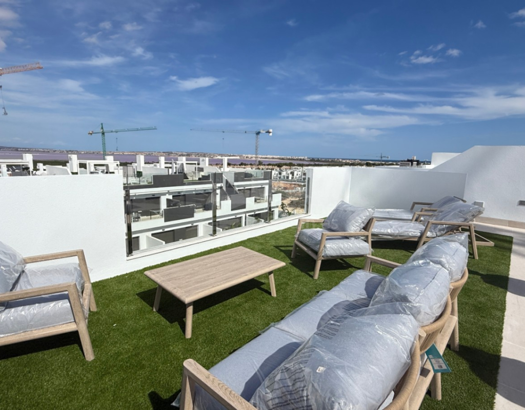 Ubicado en la cautivadora ciudad de Torrevieja, este apartamento moderno promete ser el refugio ideal para quienes buscan un estilo de vida cómodo y relajante. Con una superficie construida de 115 m² y utilizable de 110 m², cada rincón de este hogar ha sido diseñado para maximizar el espacio y la luz natural. Distribución del EspacioEl apartamento cuenta con 2 acogedoras habitaciones, perfectas para disfrutar de la tranquilidad y el descanso que mereces. Un baño bien distribuido proporciona funcionalidad y comodidad. La cocina, de concepto americano, se integra armoniosamente con el salón, creando un ambiente abierto y acogedor, ideal para compartir momentos en familia o con amigos. Disfruta del Aire LibreUno de los grandes encantos de este apartamento es su terraza de 22.80 m², un espacio perfecto para disfrutar del clima mediterráneo. Imagina relajarte con una taza de café por la mañana o organizar cenas al aire libre mientras disfrutas de las vistas. La orientación este asegura que puedas disfrutar del sol durante las horas matutinas, llenando tu hogar de luz y calidez. Comodidades y ServiciosLa comunidad en la que se encuentra el apartamento ofrece una piscina comunitaria, ideal para refrescarse durante los cálidos días de verano. Además, el edificio dispone de aparcamientos para tu conveniencia y está diseñado con un estilo moderno, brindando no solo estética, sino también funcionalidad en la distribución de sus espacios. Las buenas comunicaciones con las principales vías de acceso hacen que moverte por la ciudad sea rápido y cómodo. Un Lugar para Llamar HogarEste apartamento en Torrevieja representa no solo una opción de vivienda, sino un estilo de vida en un entorno vibrante y lleno de oportunidades. Ciudades cercanas, belleza natural, y un clima envidiable hacen de esta propiedad un lugar donde tus sueños pueden hacerse realidad. La Costa Blanca es conocida por su posibilidades de recreo y relajación, ofreciendo una gama de actividades y atracciones para disfrutar durante todo el año. No dejes pasar la oportunidad de vivir en este magnífico apartamento que, más que un espacio físico, es un hogar cargado de potencial y calidez.