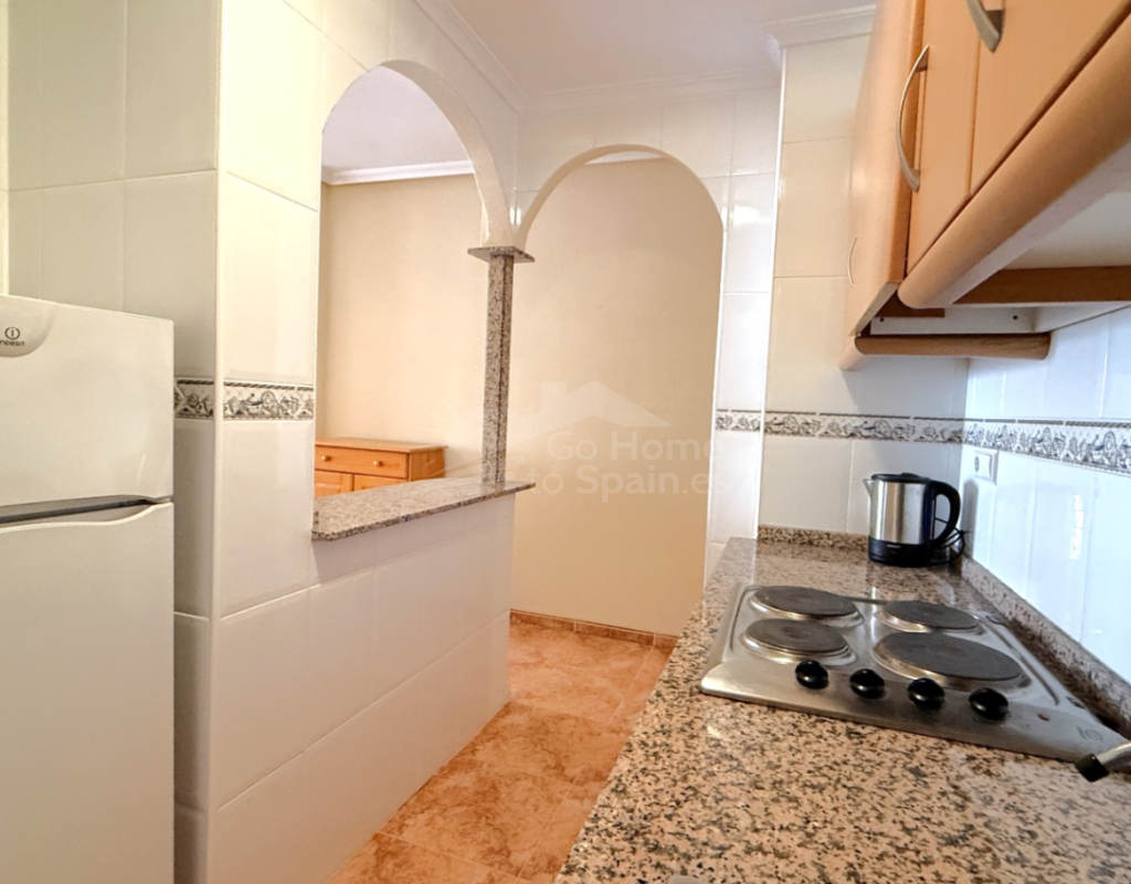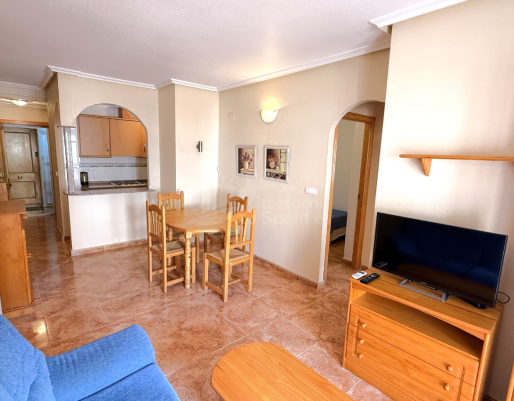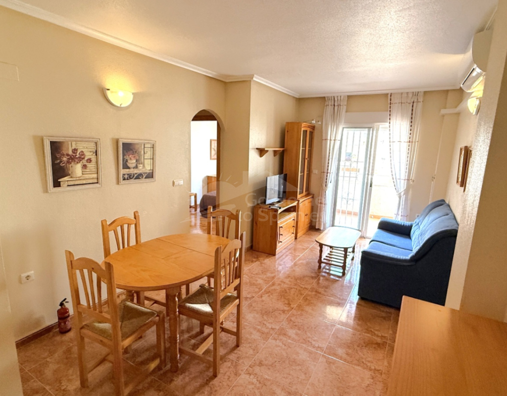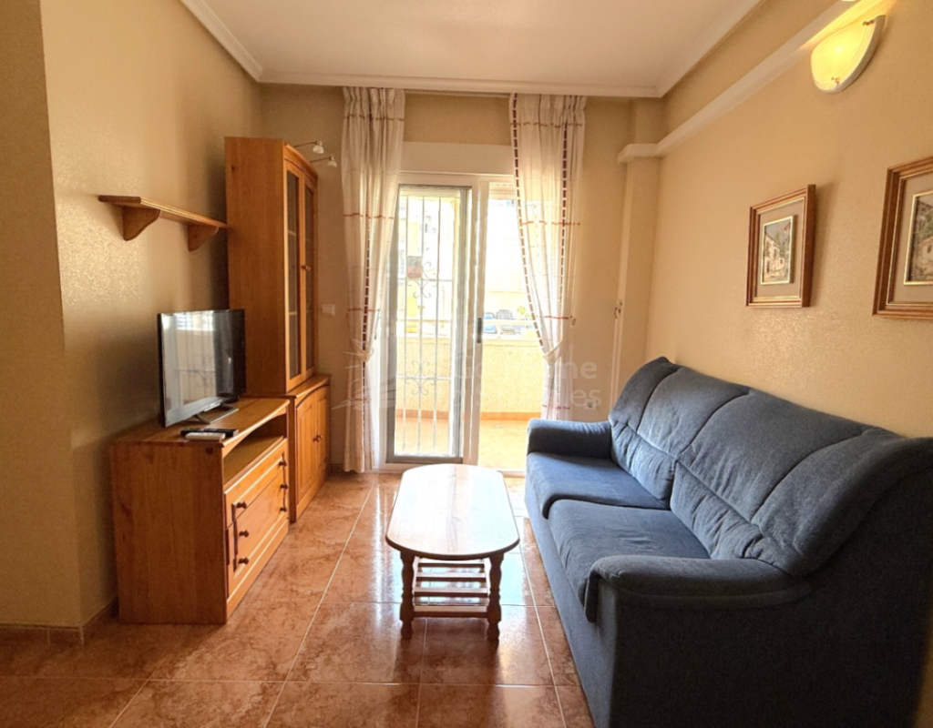 Acogedora Casa Costera Descubre un encantador apartamento ubicado en la hermosa zona de Costa Blanca Sur en Torrevieja, un destino conocido por su clima soleado y su impresionante costa. Esta deliciosa residencia ofrece una perfecta combinación de comodidad, estilo y accesibilidad, convirtiéndola en una opción ideal para familias o aquellos que buscan una escapada estacional. Distribución Cuidadosa Con una superficie de 65 m², este hogar cuenta con dos acogedoras habitaciones, proporcionando amplio espacio para relajarse y descansar. Diseñado pensando en la practicidad, el apartamento cuenta con una bien equipada cocina americana que fluye sin esfuerzo hacia la sala de estar, fomentando una sensación de apertura. En el corazón del hogar, encontrarás un acogedor espacio de estar que sirve como el telón de fondo perfecto para momentos y reuniones apreciadas. Comodidad al Aire Libre Sal a tu terraza cubierta de 3 m², un lugar acogedor para disfrutar de tu café por la mañana o de una cena bajo las estrellas. Con una orientación sureste favorable, este espacio exterior está bañado en suave luz solar, mejorando tu experiencia diaria de vida. El balcón ofrece un retiro pacífico, ideal para relajarse después de un día de exploración por los vibrantes alrededores. Servicios Comunitarios Enfatizando un estilo de vida de ocio y recreación, la propiedad cuenta con una piscina comunitaria bien mantenida, perfecta para disfrutar de días soleados y refrescarse en sus agradables aguas. Como parte de una comunidad amigable, los residentes pueden disfrutar de la camaradería de los vecinos mientras aprecian la conveniencia de los servicios compartidos. Comodidades Modernas Este apartamento está equipado con aire acondicionado, asegurando un ambiente cómodo durante los cálidos meses de verano. La propiedad se entrega amueblada, lo que te permite mudarte y comenzar a disfrutar de tu nuevo hogar de inmediato. Además, el apartamento está estratégicamente ubicado, proporcionando excelentes comunicaciones para un fácil acceso a tiendas locales, opciones de restaurantes y hermosas playas. Entorno y Accesibilidad En Torrevieja, la vibrante atmósfera se complementa con la impresionante belleza natural de la región de Costa Blanca. Los residentes pueden adoptar un estilo de vida lleno de actividades al aire libre y explorar atracciones cercanas, todo a un fácil alcance. Las buenas comunicaciones de la zona prometen conveniencia y accesibilidad, asegurando que puedas disfrutar sin esfuerzo de todo lo que este paraíso costero tiene para ofrecer. Eficiencia Energética Esta propiedad actualmente posee una calificación de certificación energética de G, invitando a los nuevos propietarios a explorar posibles mejoras para una mayor sostenibilidad.