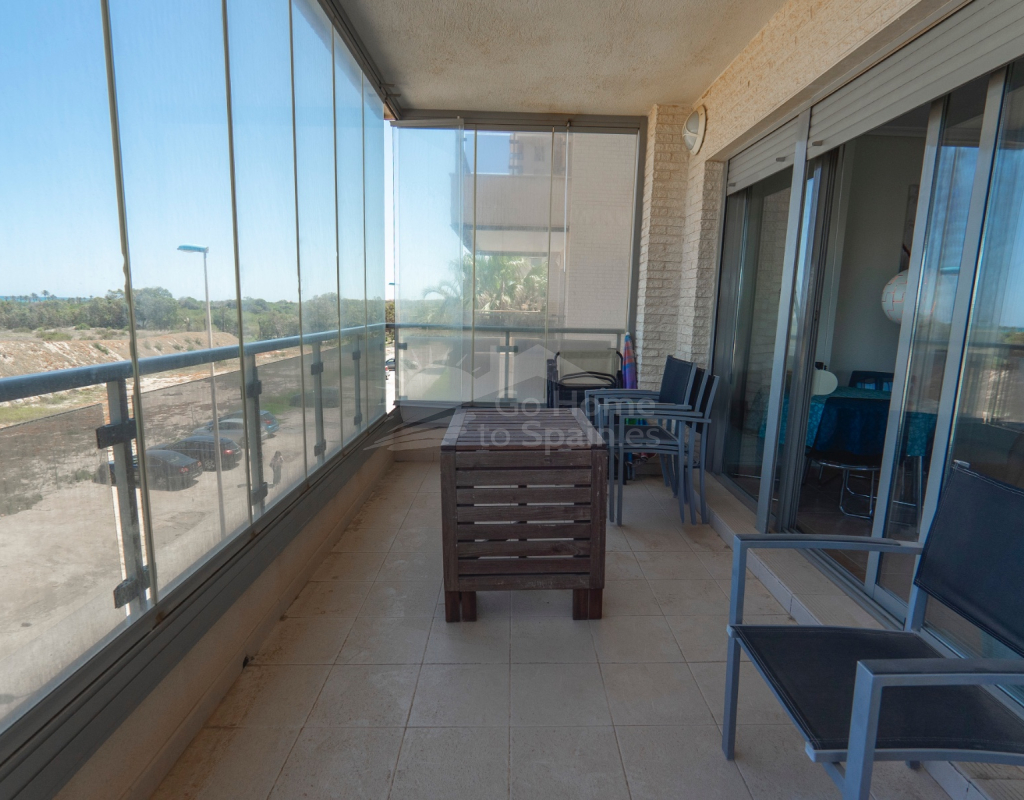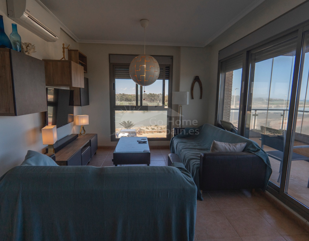 Apartamento moderno con vistas al mar y al río. Ubicado en la cotizada zona del puerto deportivo de Guardamar del Segura , este luminoso y moderno apartamento de tres dormitorios y dos baños ofrece impresionantes vistas al río Segura, al puerto deportivo y al mar Mediterráneo . Perfectamente ubicado en la segunda planta de un edificio moderno con ascensor , esta vivienda es ideal para vivir todo el año, disfrutar de vacaciones o como inversión para alquilar. El espacioso salón da a una terraza privada , completamente cerrada con cortinas de cristal, disponible todo el año. Desde aquí, al igual que desde el dormitorio principal , se disfruta de vistas panorámicas del río, el puerto deportivo y el mar. La propiedad cuenta con una moderna cocina con galería y lavadero independiente , ideal para el día a día. El dormitorio principal cuenta con un baño en suite con ducha , mientras que los dos dormitorios dobles adicionales son amplios, uno de ellos también con vistas al mar . Un elegante y bien equipado baño familiar completa la distribución. El complejo cuenta con una amplia gama de servicios, incluyendo una gran piscina con jacuzzi , duchas de agua caliente y fría , y un telesilla para personas con discapacidad que facilita el acceso a la piscina para todos. Los residentes también tienen acceso a minigolf , pistas de tenis y un parque infantil , lo que lo convierte en un entorno perfecto para familias y quienes buscan un estilo de vida activo. Guardamar del Segura es una vibrante ciudad costera de la Costa Blanca española, conocida por sus extensas playas de arena dorada , extensos pinares y parques naturales. Conserva el auténtico encanto español, a la vez que ofrece todas las comodidades modernas. La zona del puerto deportivo, donde se ubica el apartamento, es una de las más tranquilas y pintorescas de la ciudad, con acceso directo a paseos fluviales, deportes acuáticos y restaurantes frente al mar. El centro de la ciudad está a solo unos minutos en coche. También puede dar un paseo tranquilo por el sendero que atraviesa el pinar y las dunas para llegar al pueblo. Aquí encontrará una gran variedad de tiendas, bares, restaurantes de tapas tradicionales y un animado mercado semanal. El aeropuerto de Alicante está a solo 30 minutos en coche , lo que lo convierte en una ubicación excelente tanto para quienes viajan diariamente como para quienes viajan con frecuencia. Para los amantes del golf, varios campos de golf de primera clase, como La Marquesa, Las Colinas y Villamartín, se encuentran a entre 15 y 20 minutos en coche . Tanto si busca residencia permanente como una escapada vacacional, esta propiedad combina ubicación, vistas y estilo de vida en una de las localidades más codiciadas de la Costa Blanca. Contáctenos hoy mismo para concertar una visita y descubrir el encanto de Guardamar del Segura.