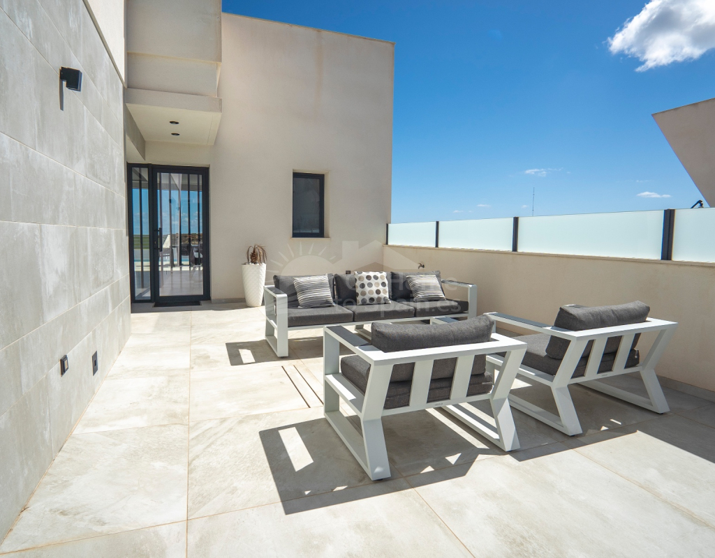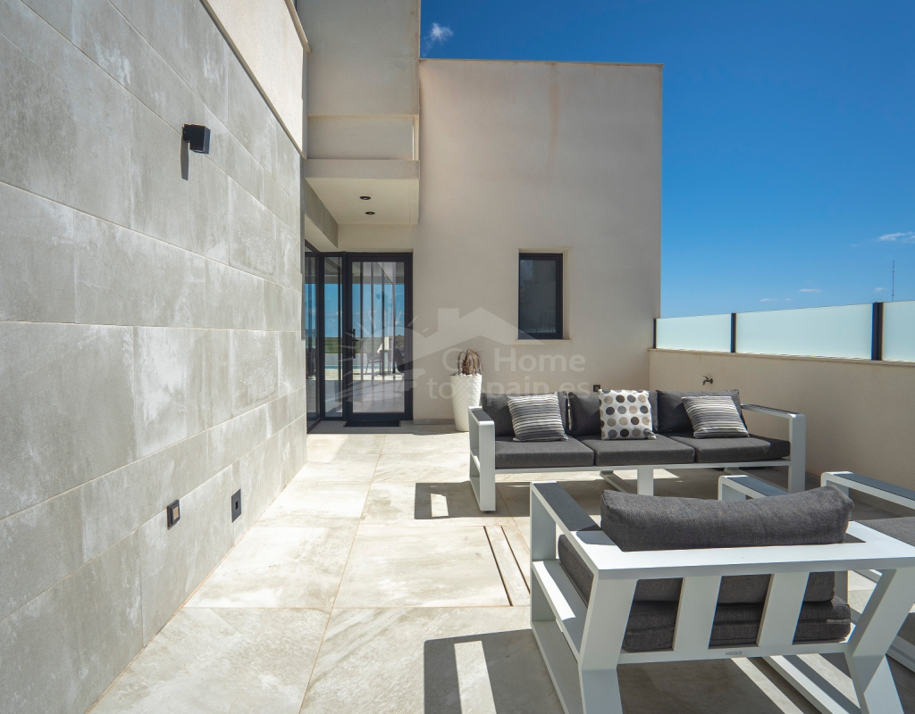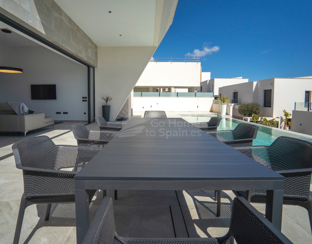 Descubre una elegancia y lujo sin igual en esta espaciosa villa moderna, que ofrece 5 amplios dormitorios y 6 baños, cada uno con su propio baño en suite para una privacidad total. Ubicada cerca del Parque El Recorral en Ciudad Quesada, esta obra maestra contemporánea está diseñada para aquellos que valoran tanto la comodidad como el estilo. La villa cuenta con espacios de vida abiertos y aireados, llenos de luz natural, realzados por acabados elegantes y un diseño sofisticado. La cocina gourmet estilo americano y las amplias áreas de comedor son perfectas para recibir visitas, mientras que los lujosos espacios exteriores ofrecen un ambiente ideal para relajarse y disfrutar. Date un baño refrescante en la piscina infinita privada, rodeada por jardines bellamente paisajistas, o disfruta de las impresionantes vistas al campo de Guardamar. Características clave: 5 Dormitorios, cada uno con baño en suite 6 Baños en total Cocina Americana Piscina Infinita Privada Garaje Privado Comunidad Cerrada y Segura Vista al campo Distancia a la Playa: 7 km Distancia al Aeropuerto: 38 km Distancia a Servicios: 1 km Distancia al Golf: 1 km Construida en 2019, esta villa ofrece la mezcla perfecta de lujo moderno y comodidad. No pierdas la oportunidad de ser dueño de esta propiedad única y vivir el estilo de vida mediterráneo en su máxima expresión. ¡Contáctanos ahora para organizar una visita!