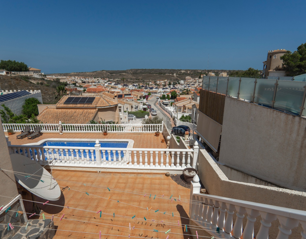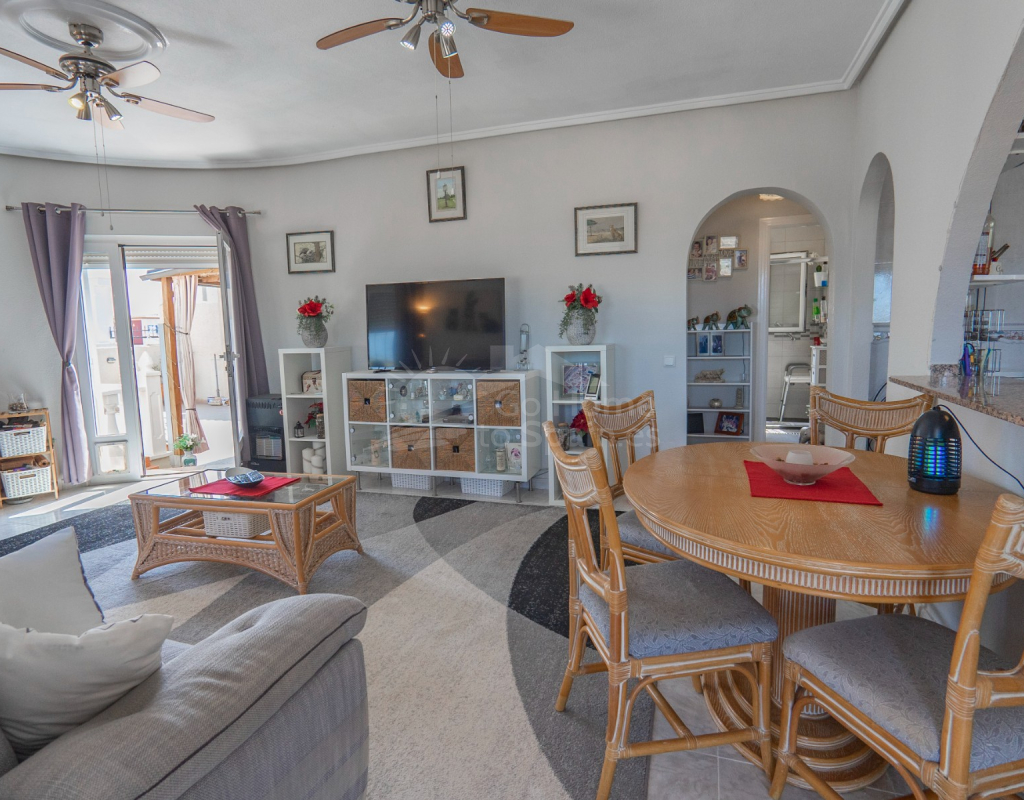 Nos complace presentar al mercado esta encantadora villa de 3 dormitorios y 2 baños, construida en dos plantas y con un dormitorio y baño independientes. La propiedad también dispone de un amplio sótano que puede utilizarse como trastero, sala de juegos o una combinación de ambos. La vivienda principal cuenta con dos dormitorios, un baño, un amplio y luminoso salón-comedor de concepto abierto, así como una agradable terraza acristalada con vistas a los alrededores. En la planta inferior se encuentra un dormitorio independiente con baño en suite, ideal para invitados o familiares. En el exterior, la propiedad ofrece aparcamiento fuera de la carretera para un coche y amplios espacios para disfrutar del sol y del estilo de vida español. Al formar parte de una comunidad, también se tiene acceso a la piscina comunitaria. La villa se encuentra cerca del campo de golf La Marquesa y de todos los servicios de la zona, incluyendo bares, restaurantes y un supermercado. La propiedad necesita algunas mejoras, lo cual se refleja en el precio.