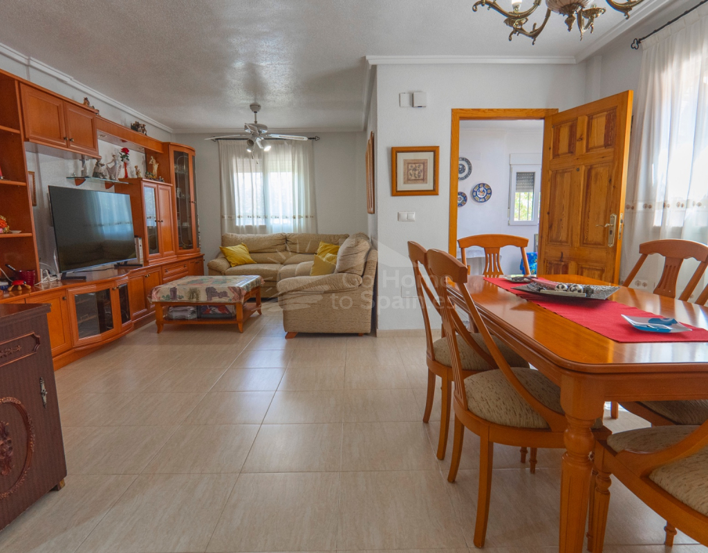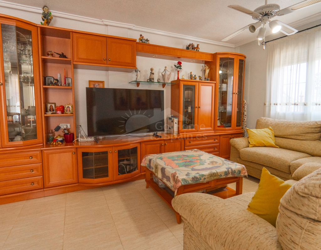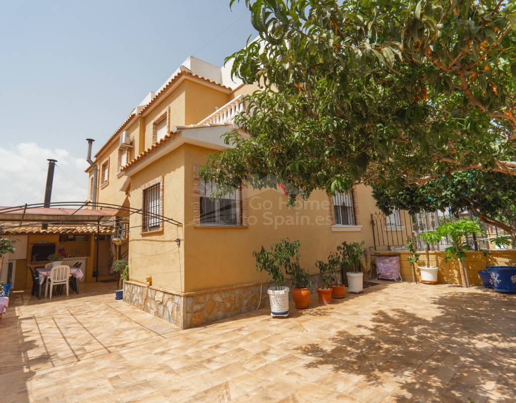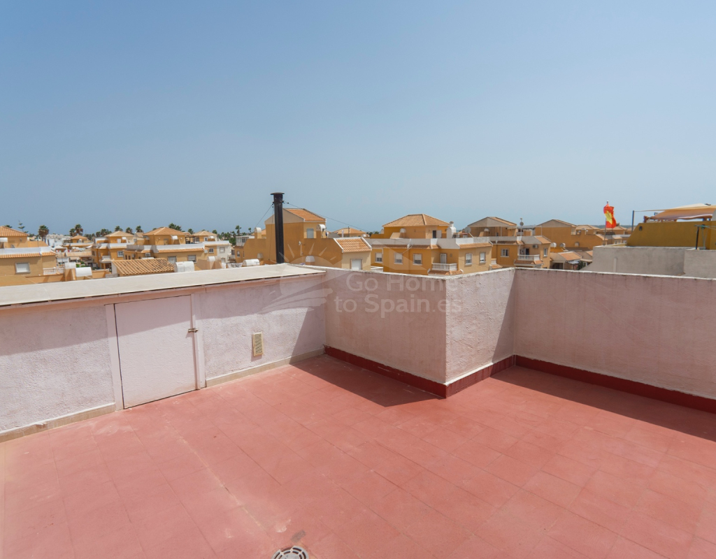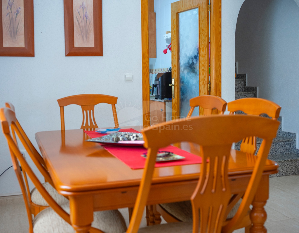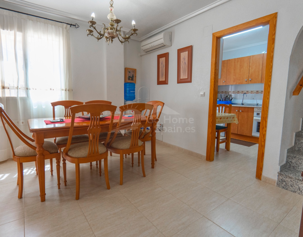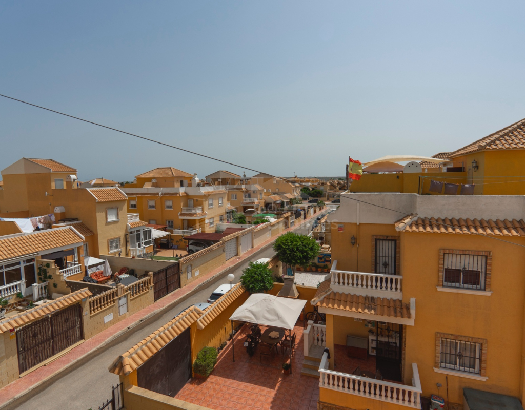Encantadora Quad-House en Lo Marabu, Ciudad Quesada Ubicada en la codiciada zona residencial de Lo Marabu, Ciudad Quesada, esta atractiva vivienda tipo quad-house ofrece la combinación perfecta de comodidad, conveniencia y bajo mantenimiento. A tan solo 5 minutos a pie de todo tipo de servicios como supermercados (Tesco, Consum, Aldi), bares y restaurantes, y a solo 15 minutos caminando del animado centro de Ciudad Quesada, la propiedad goza de una ubicación inmejorable tanto para vivir todo el año como para disfrutar de vacaciones. En la planta baja, la casa cuenta con una acogedora estancia adicional actualmente utilizada como sala de estar y TV, un luminoso salón-comedor de planta abierta, una cocina independiente totalmente equipada (con posibilidad de abrirla al salón) y un baño completo con ducha. En la primera planta se encuentran tres dormitorios dobles con armarios empotrados y un baño familiar completo. Desde aquí se accede al solárium privado en la azotea, que dispone de espacio de almacenamiento y mucho sitio para tomar el sol o relajarse. En el exterior, la vivienda ofrece aparcamiento dentro de la parcela, una amplia terraza embaldosada de fácil mantenimiento, una zona cubierta con cocina exterior y diferentes espacios ideales para disfrutar del sol mediterráneo y de comidas al aire libre. Además, como parte de una comunidad bien cuidada, los residentes tienen acceso a dos bonitas piscinas comunitarias, perfectas para refrescarse en los días más cálidos. Esta propiedad es una excelente oportunidad para quienes buscan un hogar familiar, una casa de vacaciones o una inversión en una de las zonas más deseadas de Ciudad Quesada.