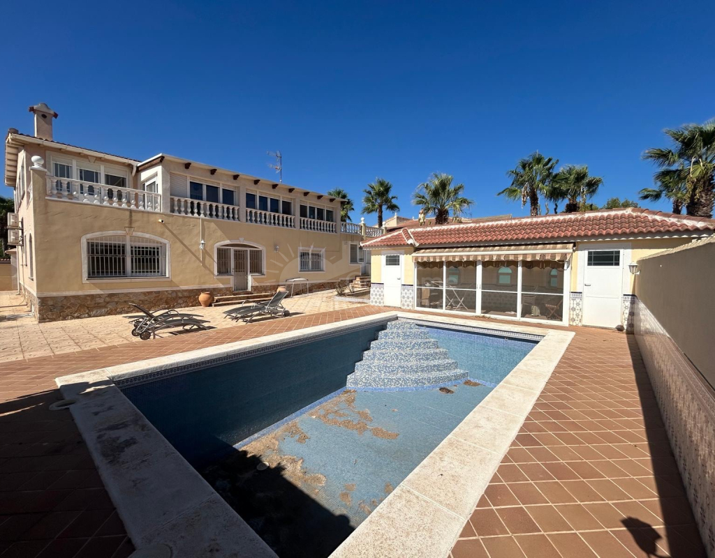 Impresionante villa de 6 dormitorios con alojamiento independiente para invitados en el corazón de Ciudad Quesada Situada en la codiciada Calle Azul, en pleno centro de Ciudad Quesada (Rojales), esta excepcional propiedad ofrece la combinación perfecta de espacio, comodidad y conveniencia. Ubicada en una generosa parcela de 1125 m² con una superficie construida de 426 m², esta villa es ideal para familias numerosas, recibir invitados o incluso como inversión. Características principales: 6 amplios dormitorios y 4 baños, incluyendo un alojamiento independiente dentro de la propiedad, con su propia cocina, salón, dormitorio y baño, perfecto para invitados, familiares o para alquilar. Una piscina privada rodeada de terrazas y jardines maduros, que ofrece un tranquilo espacio al aire libre. Tres garajes privados, que proporcionan un amplio aparcamiento seguro y espacio de almacenamiento. Situada a pocos pasos de todos los servicios locales, incluyendo tiendas, restaurantes, centros médicos y mucho más, disfrute de todas las ventajas de vivir en el centro sin renunciar a la privacidad ni al espacio. Esta oportunidad única en el corazón de Quesada combina una ubicación céntrica con el lujo de una gran parcela y un amplio espacio habitable, algo único en el mercado actual.