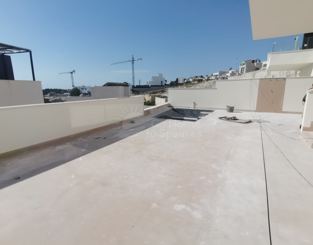 Disfruta de uno de nuestros bungalows AMAY BELLAVISTA: diseño, confort y ubicación Este maravilloso bungalow planta baja de obra nueva y diseño moderno cuenta con tres dormitorios y dos baños ,cocina americana con isla y gran salón comedor con mucha luz.  Con 92m2 de superficie de vivienda. Cuenta con amplias terrazas para tomar el sol durante todo el año, una piscina comunitaria con vistas preciosas al bosque, la naturaleza y las icónicas lagunas de Torrevieja – La Mata. Esta nueva promoción se sitúa en San Miguel de Salinas, conocido también como el “Balcón de la Costa Blanca”. Es uno de los pueblos mediterráneos más tranquilos, silenciosos y con las mejores vistas panorámicas sobre el litoral alicantino y su paisaje natural. Sus 100 metros de altura sobre el nivel del mar permite disfrutar de unos atardeceres de película y unas vistas privilegiadas del lugar. Esto es lo que te encontrarás viviendo en AMAY BELLAVISTA: tranquilidad, naturaleza y mar. Te encantará vivir a tan solo 15 minutos en coche de las playas mejor valoradas de la Costa Blanca Sur y rodeado de una selección de campos de golf de ensueño, entre los que se encuentra Las Colinas Golf & Country Club, en Dehesa de Campoamor (Orihuela Costa).