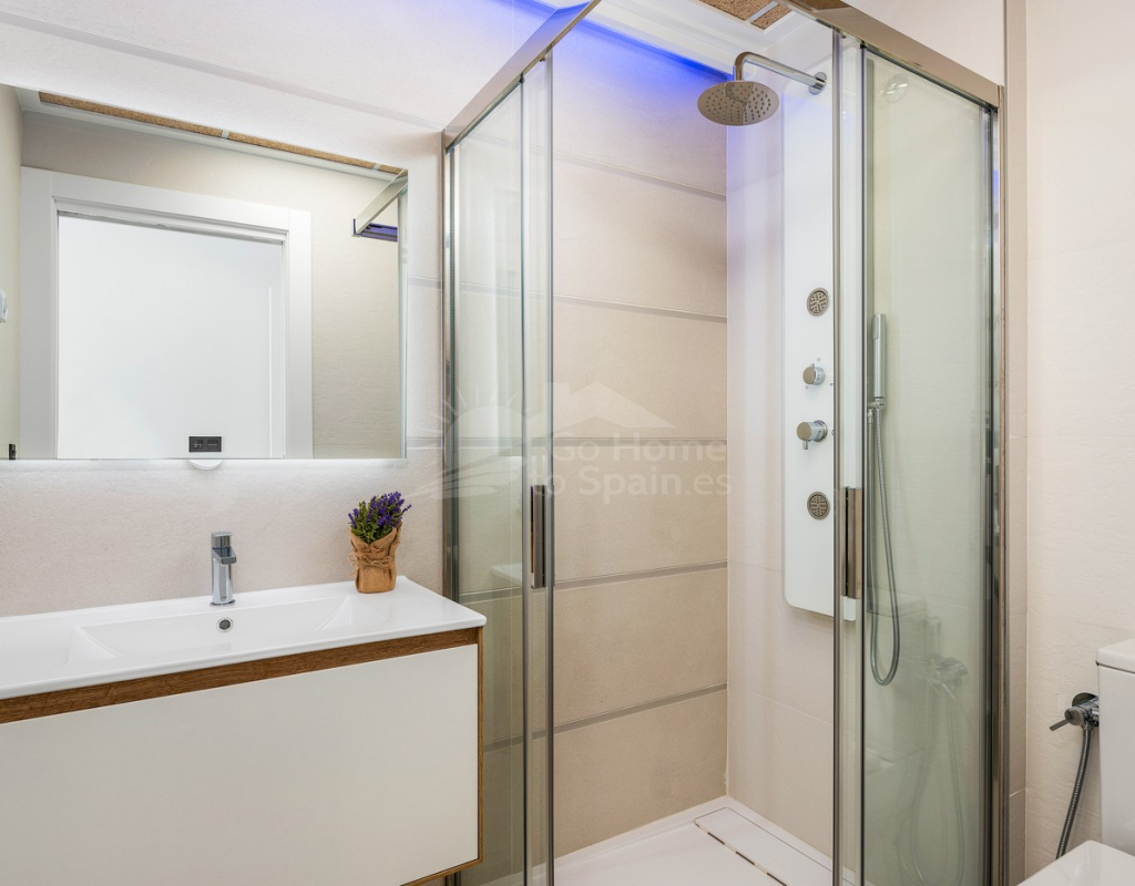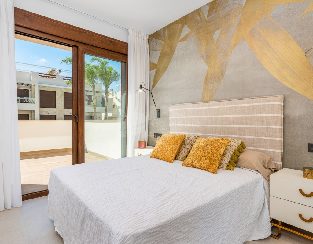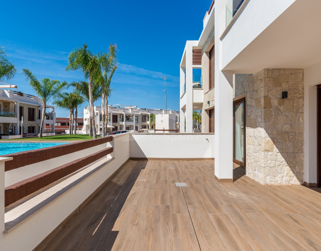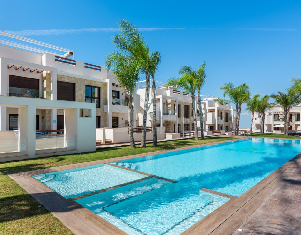 Bungalow de planta baja en urbanización de Torrevieja Qué suerte tendrás viviendo en este precioso bungalow de nueva construcción en Torrevieja. Pertenece a un lujoso residencial conocido como Los Balcones de Vivi, desde donde se divisan unas espectaculares vistas a La Laguna Rosa de Torrevieja. Un lugar como ningún otro para desconectar. La propiedad disfruta de una gran terraza privada que, cada mañana, cuenta con la presencia del inagotable sol de la Costa Blanca, además de unas bonitas vistas a los jardines y a las dos enormes piscinas comunitarias. Con el preciado clima del mediterráneo español, las zonas exteriores se convertirán en tu rincón sagrado. Podrás respirar el aire limpio y puro de la naturaleza y el mar Mediterráneo. Los interiores de la casa te conectan con estos preciosos exteriores gracias al diseño de sus puertas cristaleras y ventanales. Te sorprenderá descubrir qué se esconde en sus 62 m2: una cocina abierta moderna con barra para el desayuno, un luminoso salón comedor multifunctional, 2 habitaciones llenas de confort y 2 baños de ducha con las más altas especificaciones. Vivirás en una de las zonas más codiciadas de Torrevieja, con mucha oferta de ocio y muchos atractivos a tu alrededor: Paraje Natural de Lagunas de Torrevieja – La Mata Playas y calas de arenas suaves y aguas transparentes, certificadas con la Q de Calidad Turística 4 Campos de Golf, entre ellos Las Colinas Golf & Country Club Senderos y parques ecológicos ideales para pasear, fotografiar y caminar junto a tu mascota Centro comercial La Zenia Boulevard, el más grande de la provincia de Alicante Este bungalow busca un propietario como tú, con ganas de disfrutar del sol, las terrazas y todas las comodidades de la Costa Blanca Sur.