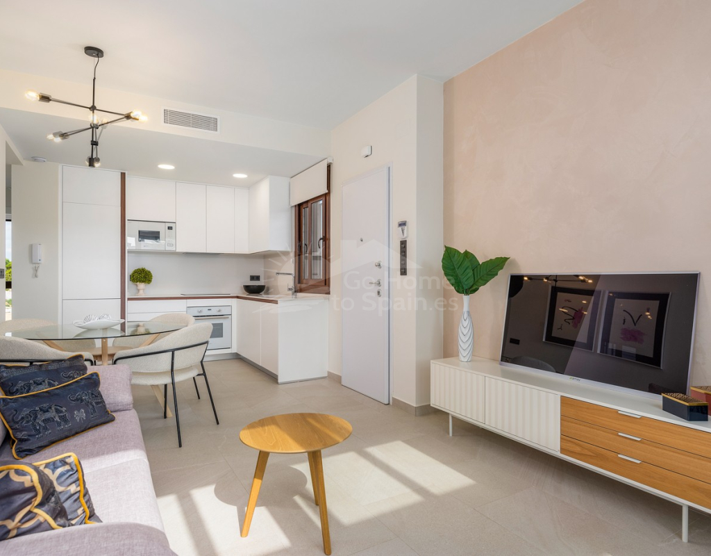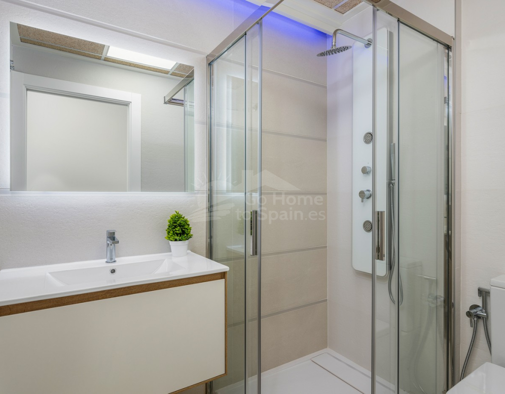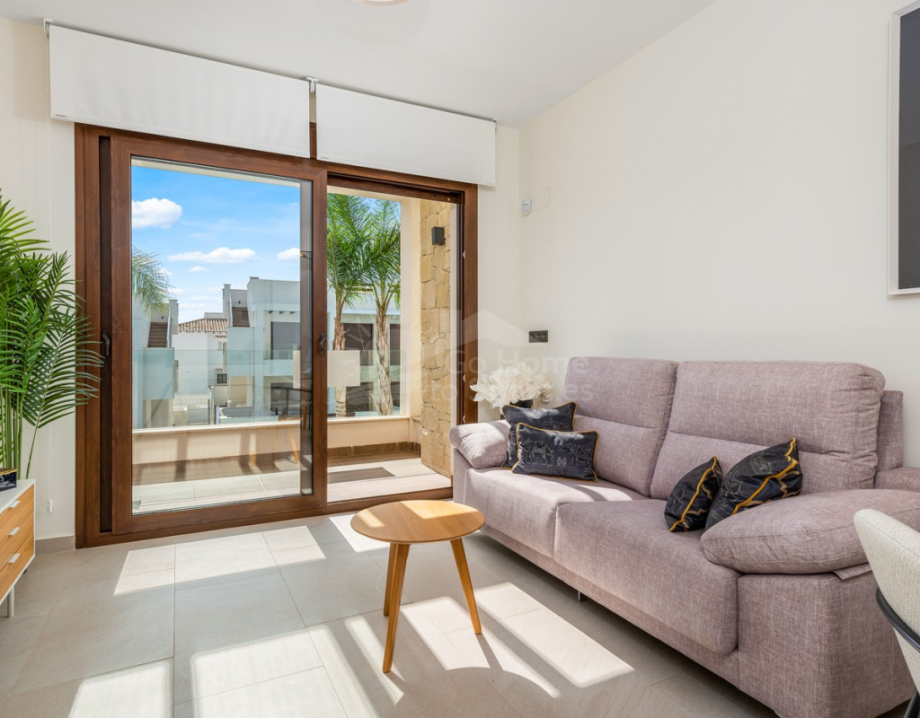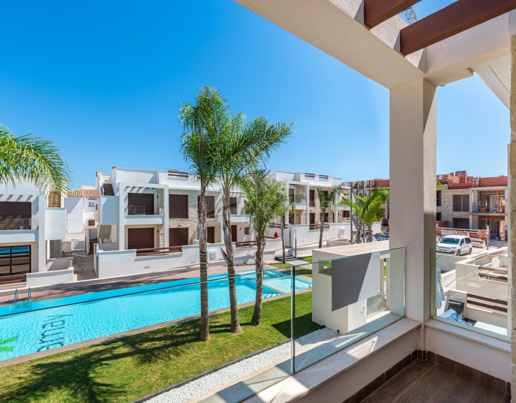 Bungalow de planta alta en urbanización de Torrevieja Qué suerte tendrás viviendo en este precioso bungalow de nueva construcción en Torrevieja. Pertenece a un lujoso residencial conocido como Los Balcones de Vivi, desde donde se divisan unas espectaculares vistas a La Laguna Rosa de Torrevieja. Un lugar como ningún otro para desconectar. La propiedad disfruta de una gran terraza privada que, cada mañana, cuenta con la presencia del inagotable sol de la Costa Blanca, además de unas bonitas vistas a los jardines y a las dos enormes piscinas comunitarias. Con el preciado clima del mediterráneo español, las zonas exteriores se convertirán en tu rincón sagrado. Podrás respirar el aire limpio y puro de la naturaleza y el mar Mediterráneo. Los interiores de la casa te conectan con estos preciosos exteriores gracias al diseño de sus puertas cristaleras y ventanales. Te sorprenderá descubrir qué se esconde en sus 70 m2: una cocina abierta moderna con barra para el desayuno, un luminoso salón comedor multifunctional, 3 habitaciones llenas de confort y 2 baños de ducha con las más altas especificaciones. Vivirás en una de las zonas más codiciadas de Torrevieja, con mucha oferta de ocio y muchos atractivos a tu alrededor: Paraje Natural de Lagunas de Torrevieja – La Mata Playas y calas de arenas suaves y aguas transparentes, certificadas con la Q de Calidad Turística 4 Campos de Golf, entre ellos Las Colinas Golf & Country Club Senderos y parques ecológicos ideales para pasear, fotografiar y caminar junto a tu mascota Centro comercial La Zenia Boulevard, el más grande de la provincia de Alicante Este bungalow busca un propietario como tú, con ganas de disfrutar del sol, las terrazas y todas las comodidades de la Costa Blanca Sur.