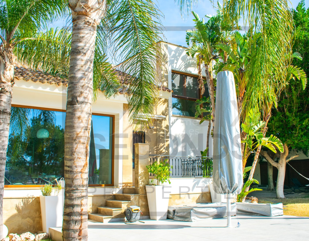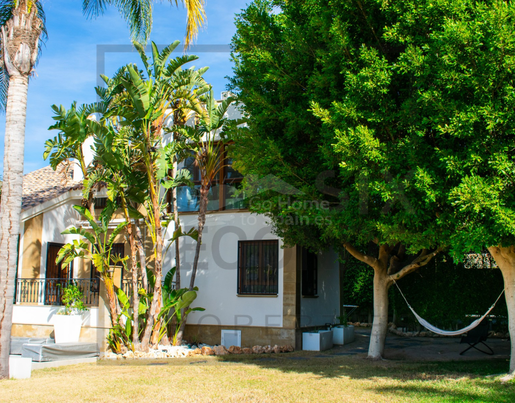 Presentamos esta exclusiva villa que se alza majestuosamente en una parcela doble, abarcando un total de 1200 metros cuadrados de terreno, donde 912 metros cuadrados se despliegan en un exuberante jardín con vegetación avanzada.