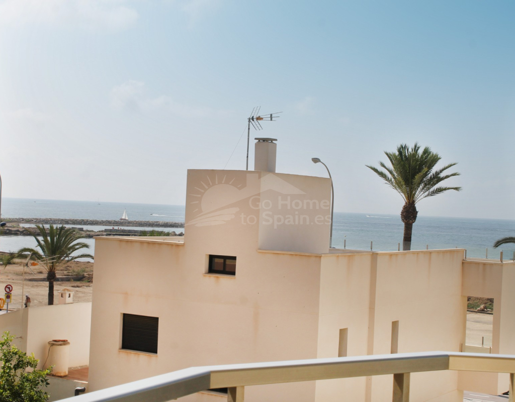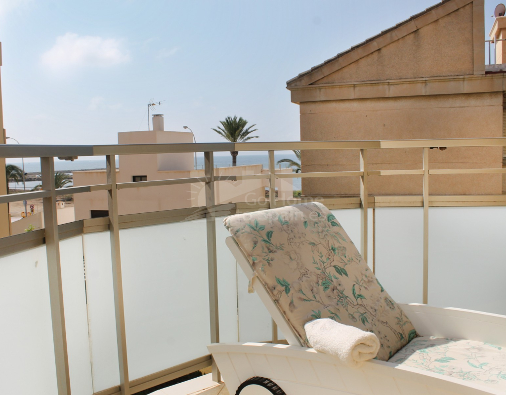 La terraza, que abarca tres lados del edificio, es perfecta para disfrutar de las vistas panorámicas. Además, la propiedad incluye una plaza de garaje individual y cerrada, equipada con ducha y tomas para lavar una moto acuática. Las zonas comunes están ajardinadas, creando un ambiente de tranquilidad y confort.