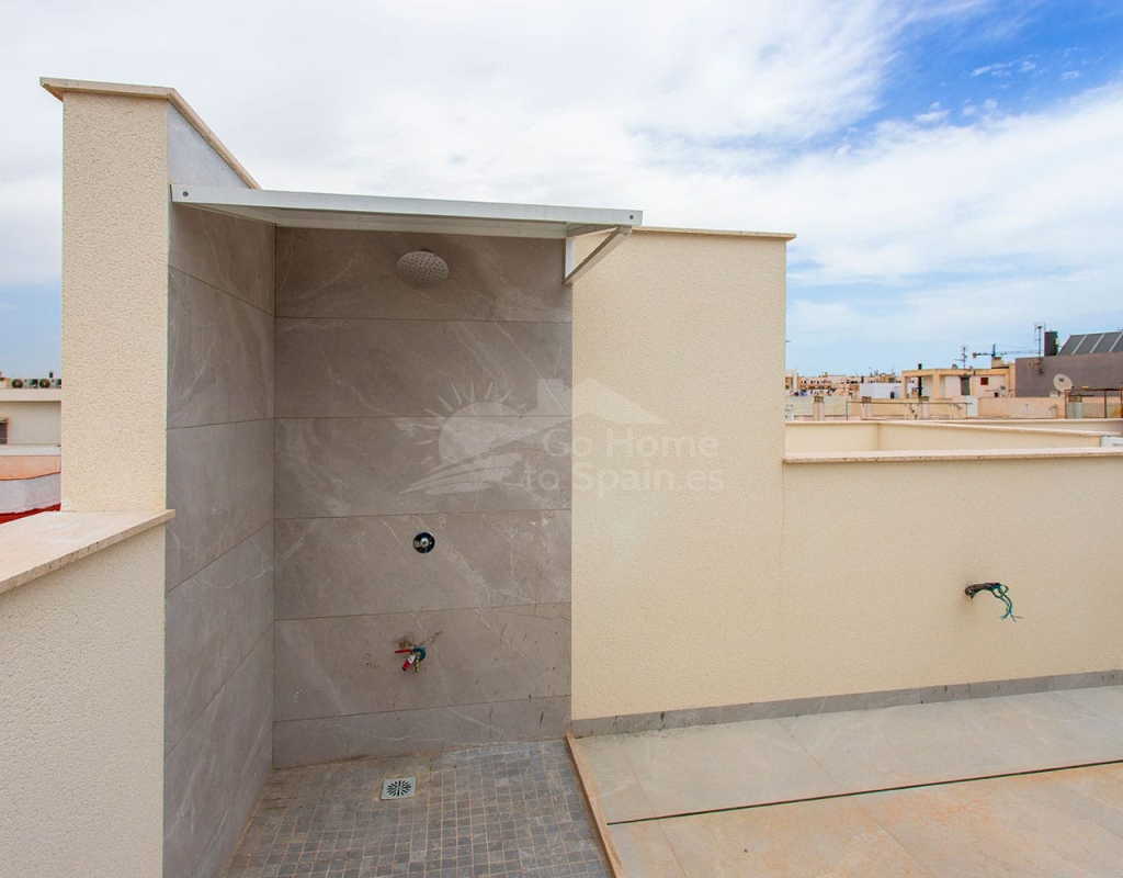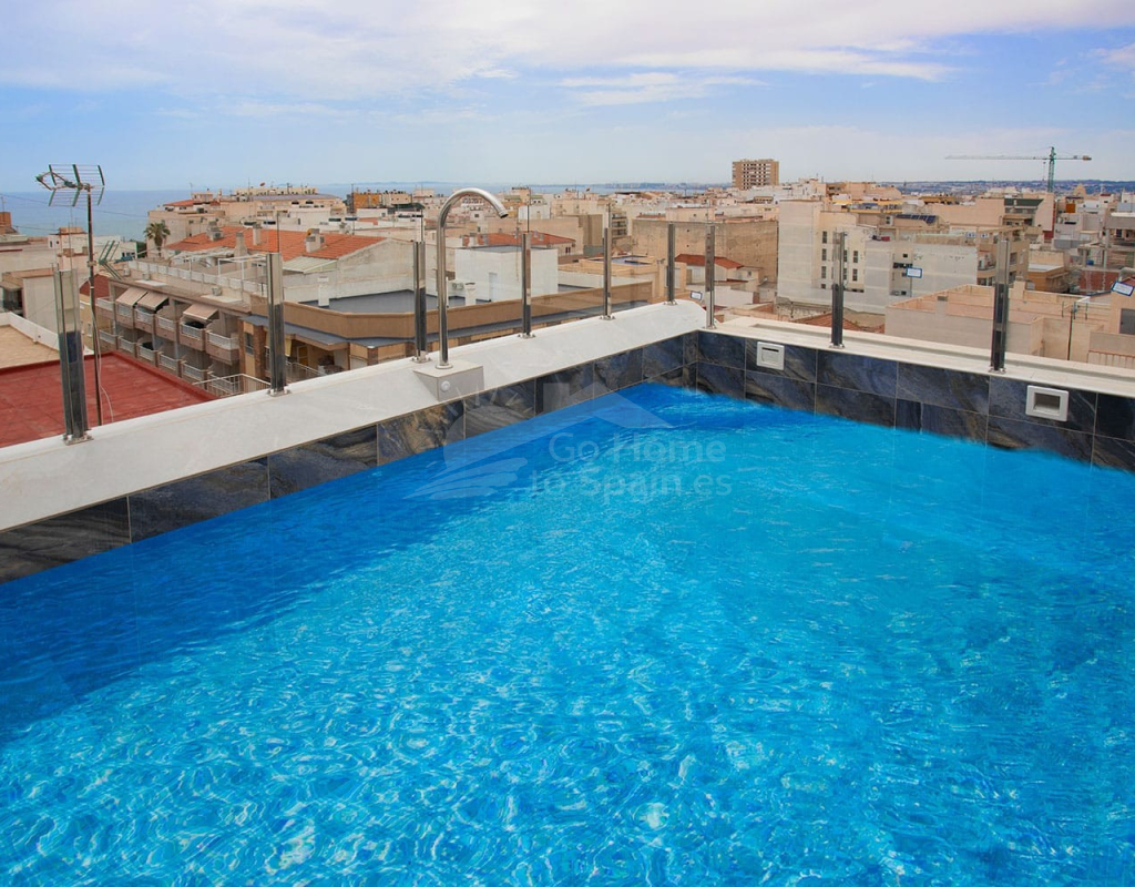Además, cuenta con una fantática piscina comunitaria en la azotea, con vistas encantadoras al mar, perfecta para disfrutar del estilo de vida mediterráneo.