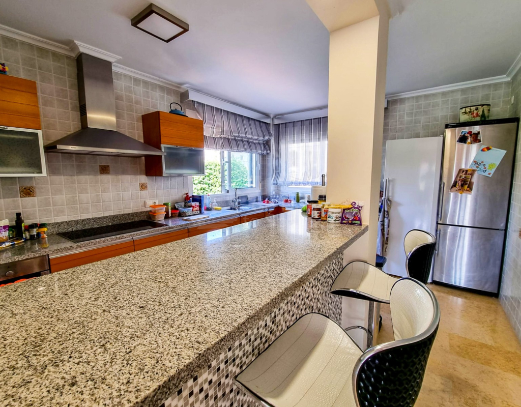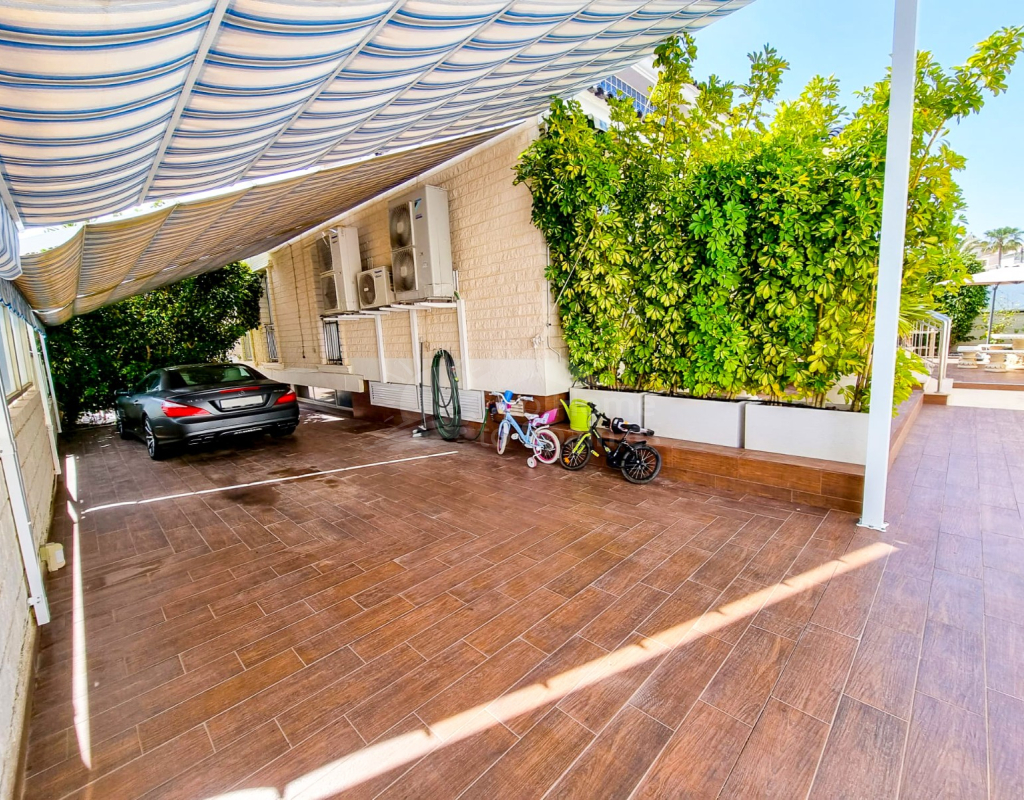 Ubicada en una amplia parcela, el espacio exterior es igualmente impresionante. Varias zonas de descanso ofrecen espacio para relajarse o entretenerse, mientras que la encantadora piscina privada invita a refrescarse y tomar el sol. Hay amplio aparcamiento para varios vehículos y la propiedad pertenece a una comunidad bien cuidada que ofrece jardín y pista de tenis compartidos.