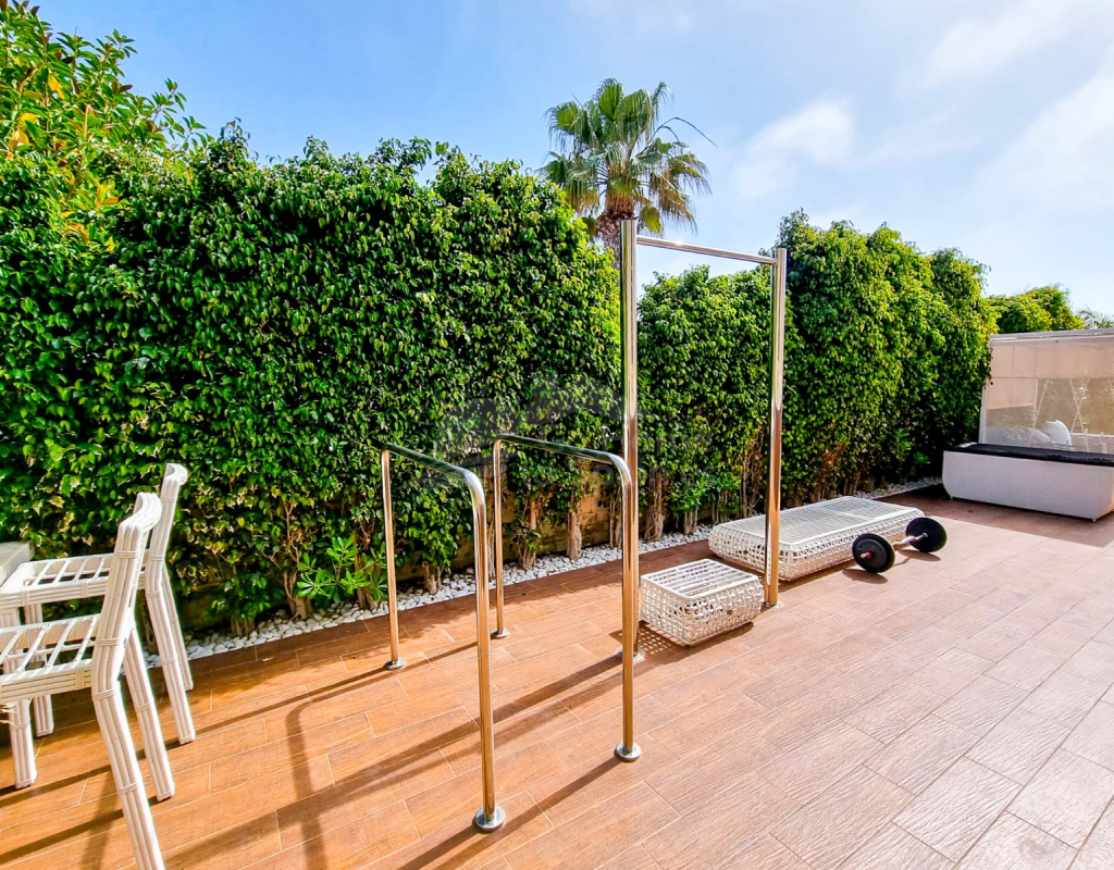 La planta principal le da la bienvenida con una distribución luminosa y espaciosa que incluye tres amplios dormitorios, dos baños completos, un aseo de cortesía y un aseo con ducha adicional. La elegante cocina se integra a la perfección con el espacioso salón, que se abre a una gran terraza orientada al sur, ideal para comer al aire libre y relajarse. El dormitorio principal también tiene acceso directo a la terraza, creando una armonía perfecta entre la vida interior y exterior.