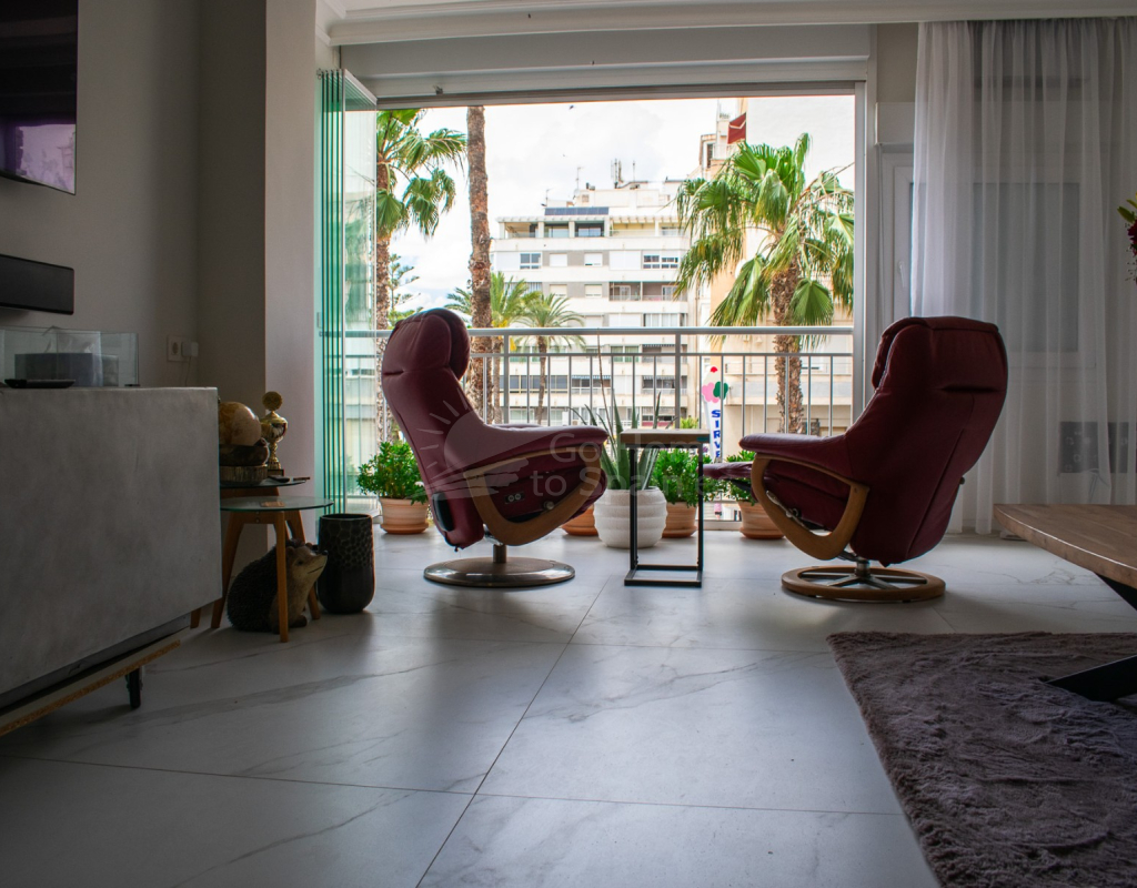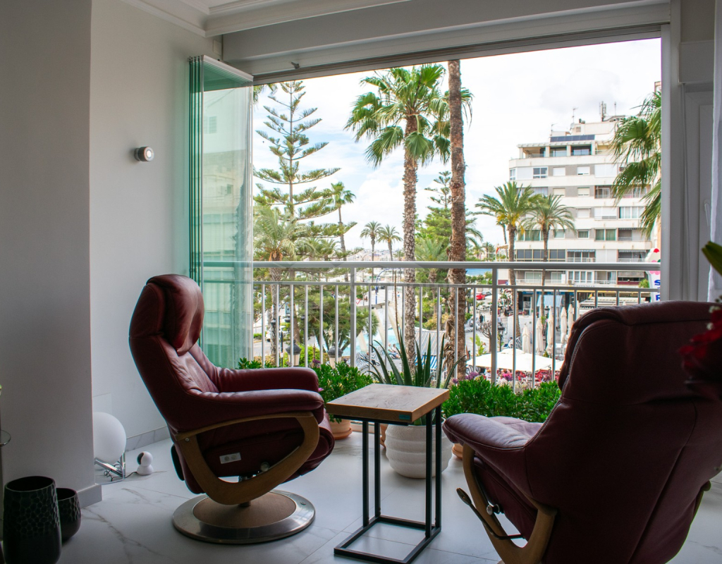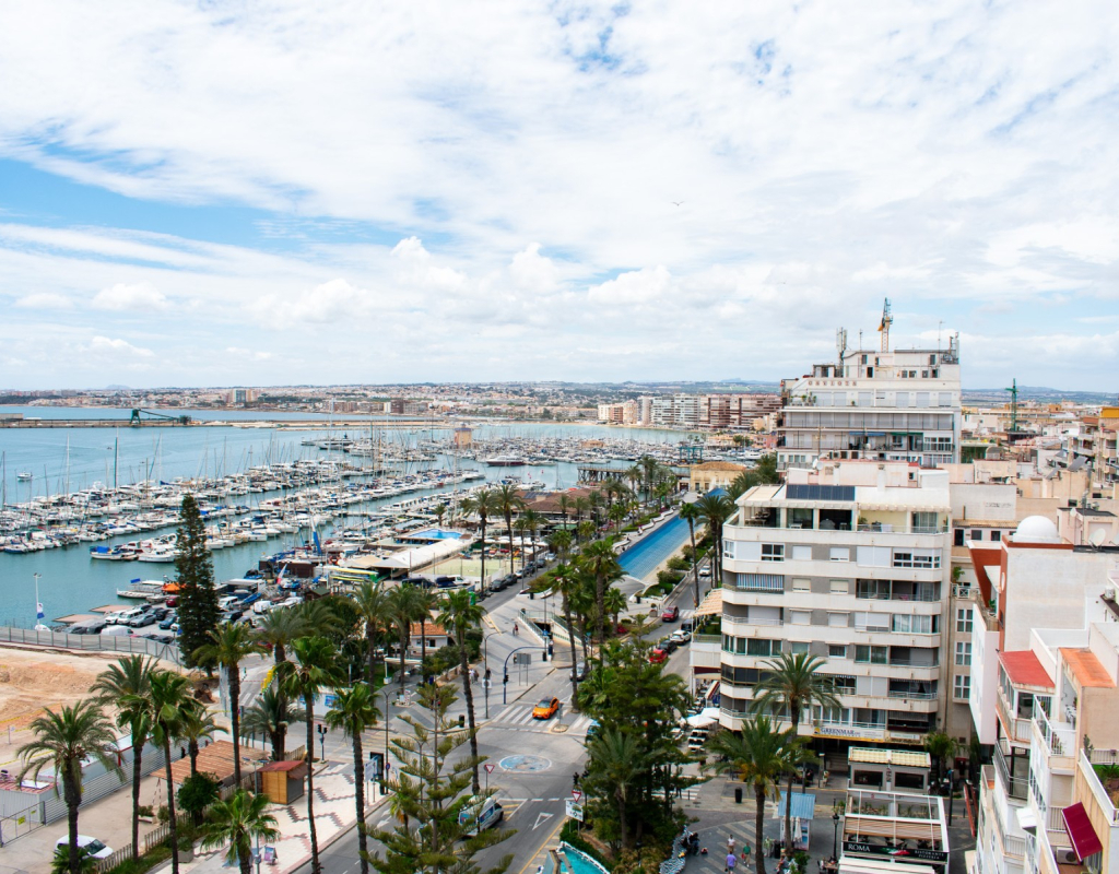 Descubra este magnífico apartamento de 105 m² en el corazón de Torrevieja, ubicado en una de las zonas más codiciadas de la ciudad. Situado en una primera planta, esta vivienda impresiona con sus vistas panorámicas al mar y al puerto, ofreciendo un entorno privilegiado a solo 100 metros del puerto y a 4 minutos a pie de la playa. La propiedad cuenta con 2 amplios dormitorios y 2 baños completos, incluyendo un elegante baño en suite en la habitación principal. El salón comedor es espacioso y luminoso, ideal para disfrutar en familia o recibir invitados. La cocina, equipada con materiales de primera calidad, combina diseño y funcionalidad, mientras que el aire acondicionado garantiza el máximo confort durante todo el año. Además, la azotea comunitaria ofrece un espacio inigualable para relajarse mientras se contemplan las vistas al Mediterráneo. Rodeado de enclaves exclusivos como el restaurante El Muelle, Nicky Beach y Bacanal, esta propiedad representa una oportunidad única para quienes buscan estilo de vida, ubicación y exclusividad. Ideal como residencia habitual o inversión en una de las zonas más dinámicas de la Costa Blanca.
