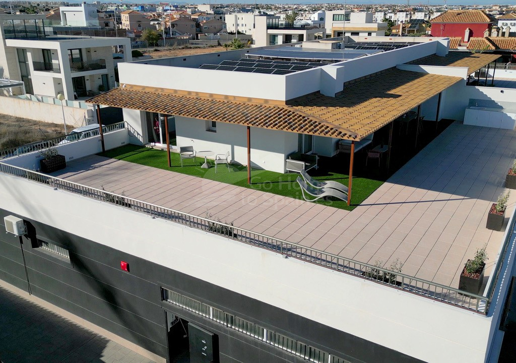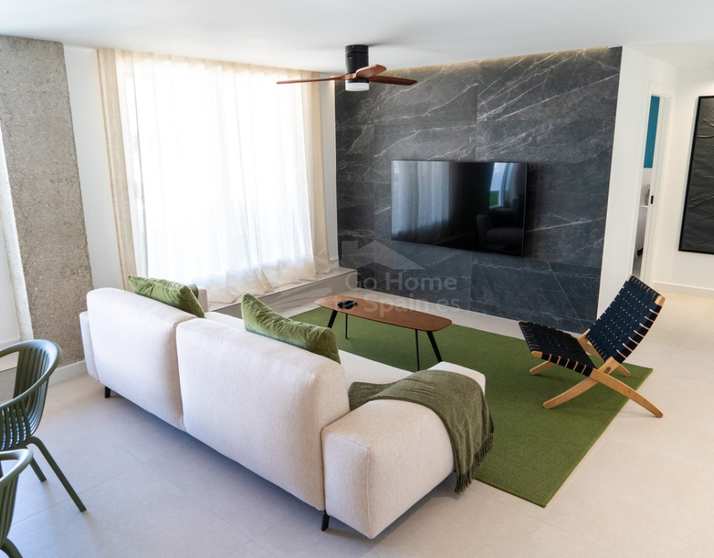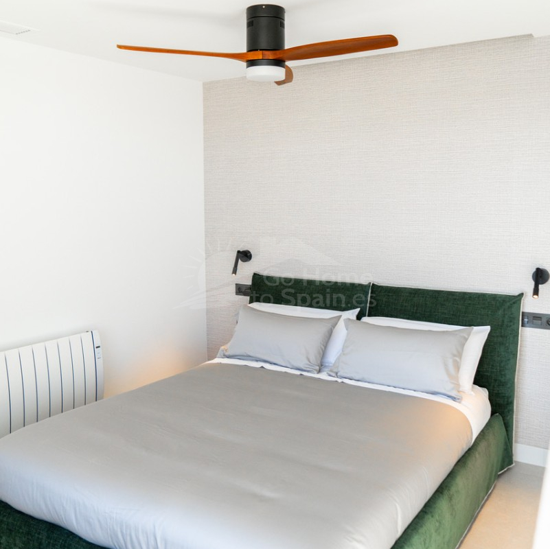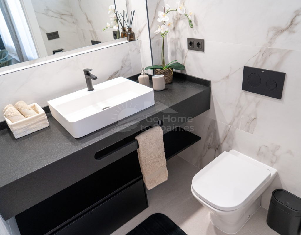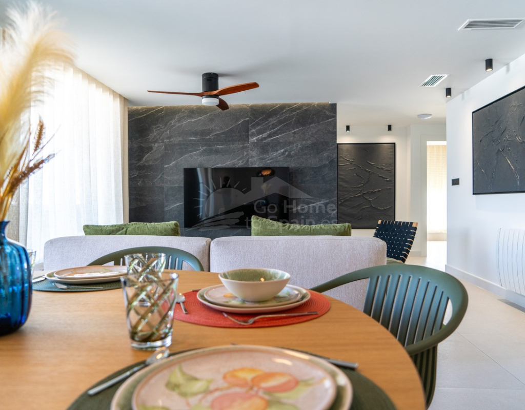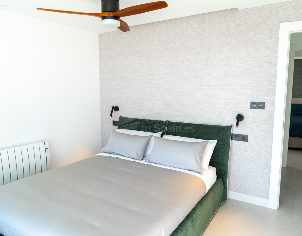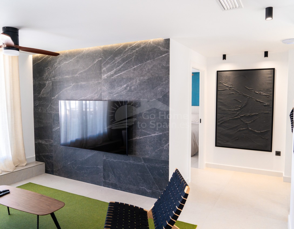 El interior destaca por su estilo elegante y funcional: una cocina italiana de diseño totalmente equipada con electrodomésticos, tres dormitorios y tres baños completos (uno en suite), además de aire acondicionado por conductos y calefacción de calor azul en todas las estancias. Los materiales de alta gama, como las ventanas Schüco y la puerta de seguridad con apertura mediante código, garantizan la máxima calidad y confort.
