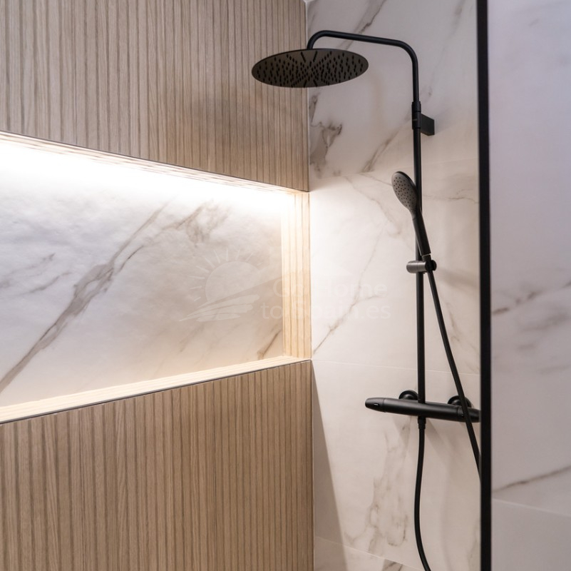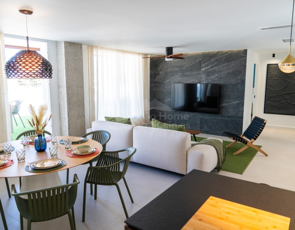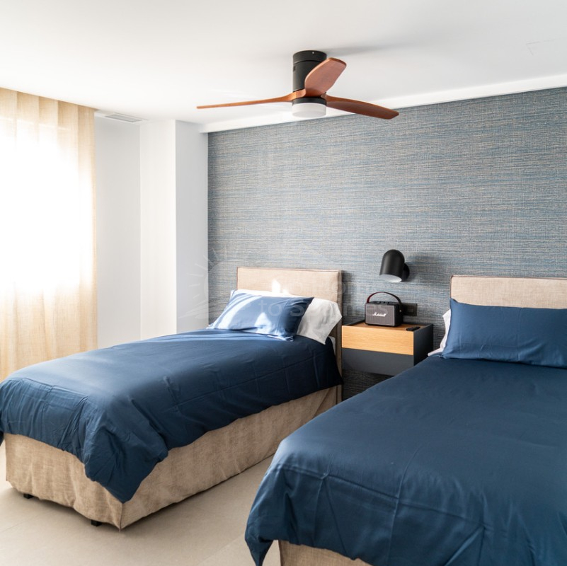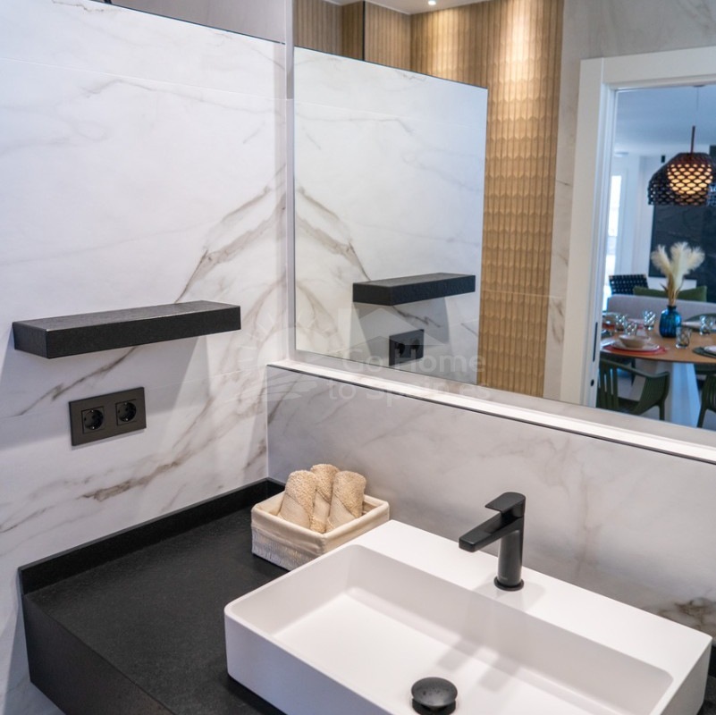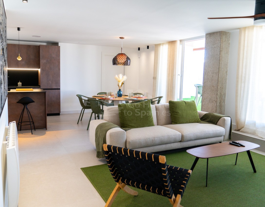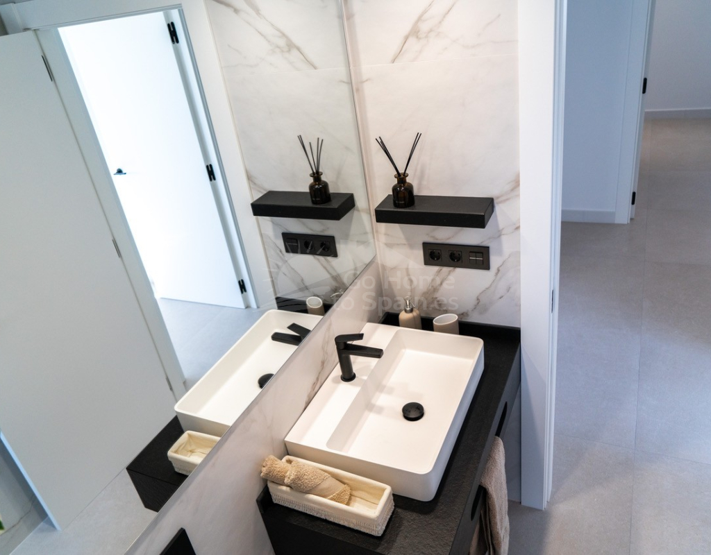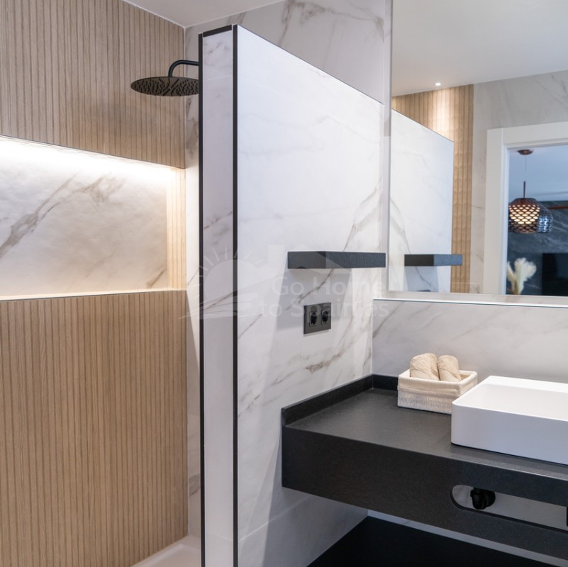 El interior destaca por su estilo elegante y funcional: una cocina italiana de diseño totalmente equipada con electrodomésticos, tres dormitorios y tres baños completos (uno en suite), además de aire acondicionado por conductos y calefacción de calor azul en todas las estancias. Los materiales de alta gama, como las ventanas Schüco y la puerta de seguridad con apertura mediante código, garantizan la máxima calidad y confort.