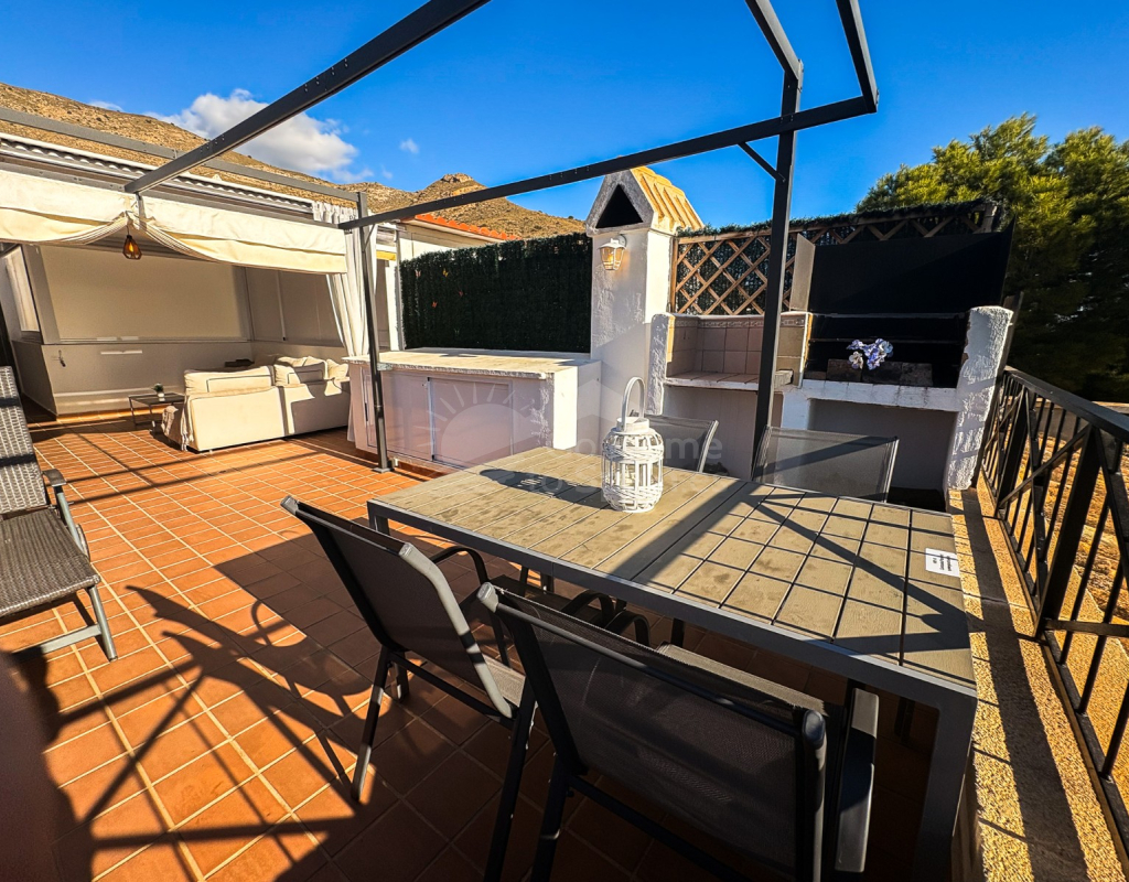 Presentamos esta casa adosada de 160 m², distribuida en cuatro alturas, ubicada en la prestigiosa zona de Golf Bahía (Finestrat). Una vivienda luminosa, amueblada y con vistas al mar y a Benidorm, situada en un entorno residencial muy tranquilo con una fantástica piscina comunitaria, jardines y plaza de parking incluida.