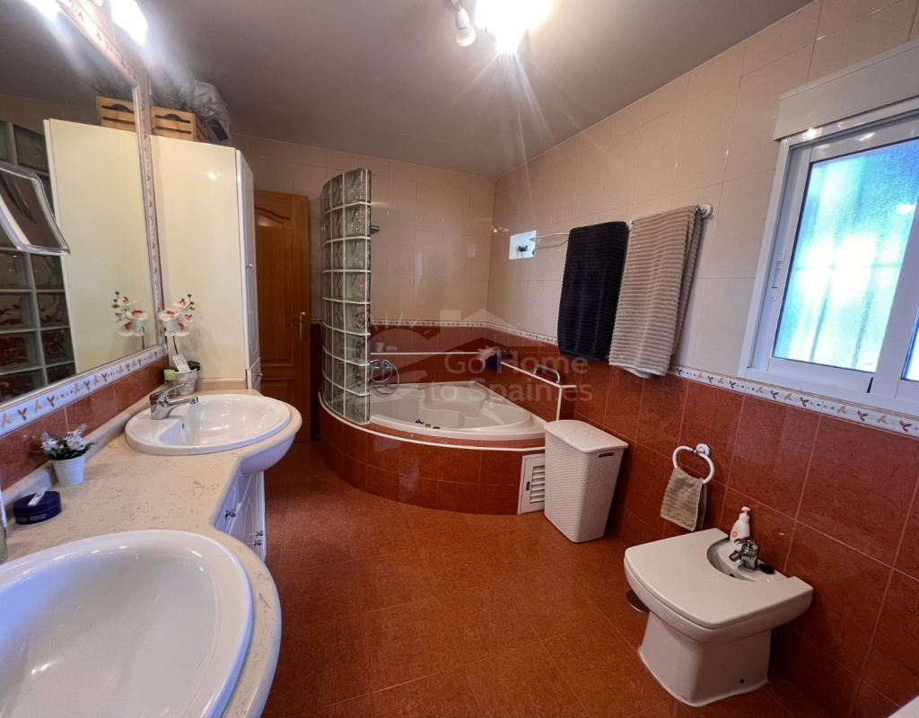 El conjunto suma aproximadamente 400 m² construidos y ofrece un total de 6 dormitorios y 3 baños, distribuidos de forma funcional y cómoda. La vivienda principal destaca por su amplio salón-comedor con chimenea, una cocina espaciosa y bien equipada, tres dormitorios dobles y un baño de grandes dimensiones con jacuzzi. Sus terrazas perimetrales, el magnífico solárium y su fantástica piscina, permiten disfrutar de vistas abiertas a la montaña y al entorno natural, creando espacios ideales para relajarse y vivir al aire libre durante todo el año.