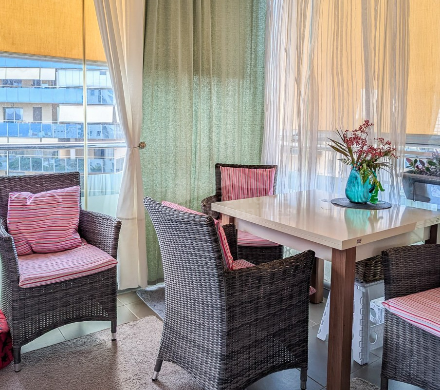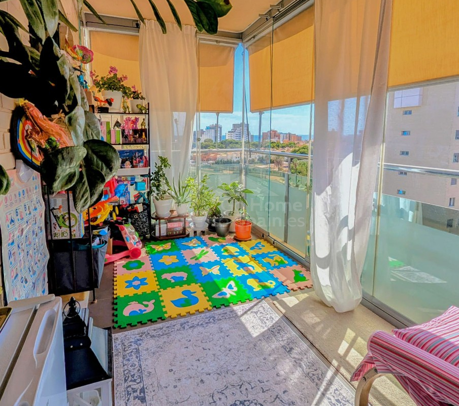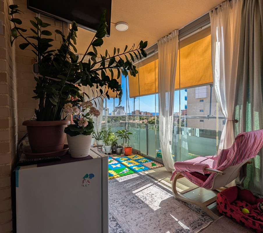 Este piso luminoso y acogedor se sitúa en pleno corazón de El Campello, en una urbanización tranquila y cuidada, ideal para quienes desean vivir cerca del mar sin renunciar a comodidad y servicios. La vivienda destaca por sus preciosas vistas al mar y por una gran terraza, un espacio versátil perfecto como comedor exterior, zona de juegos, área de descanso o despacho, desde donde disfrutar cada mañana de un café con el Mediterráneo como telón de fondo.