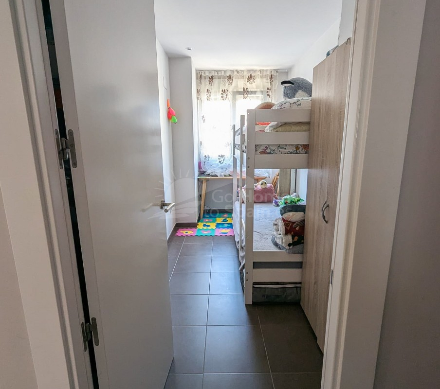 Con una superficie aproximada de 80 m², el apartamento dispone de 2 habitaciones, 1 baño, y una distribución funcional pensada para el día a día. Es una segunda mano en buen estado, cuenta con armarios empotrados y una excelente orientación sur, que garantiza luz natural durante gran parte del día.