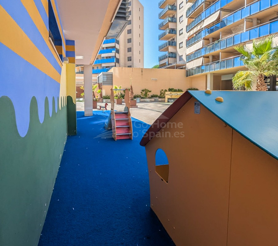 La urbanización ofrece una piscina comunitaria, zona infantil, espacio para eventos y un entorno agradable para familias. Su ubicación es especialmente práctica: el TRAM se encuentra a pocos pasos, un gran parque muy cercano, y el mar a solo 5 minutos caminando. Además, en las inmediaciones encontrarás supermercados, colegio, mercado, centro médico y restaurantes, cubriendo todas las necesidades sin necesidad de coche.