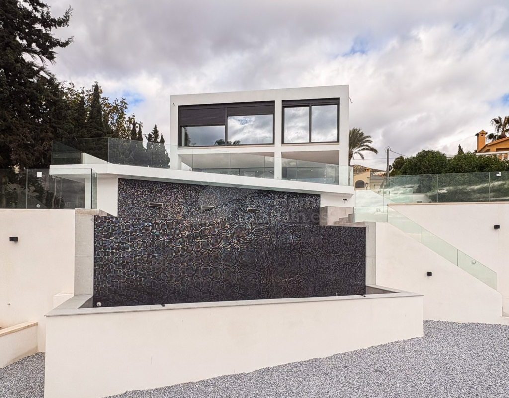 El exterior ha sido diseñado para disfrutar del entorno con elegancia y bajo mantenimiento. Destaca una terraza frontal de 35 m², que recorre todo el ancho de la vivienda y se convierte en un mirador privilegiado sobre el mar, además de espacios adicionales con posibilidad de crear más terrazas en los laterales y la parte trasera. La propiedad cuenta con una piscina privada climatizada, situada estratégicamente sobre la cala, creando una conexión única entre arquitectura y paisaje marino.