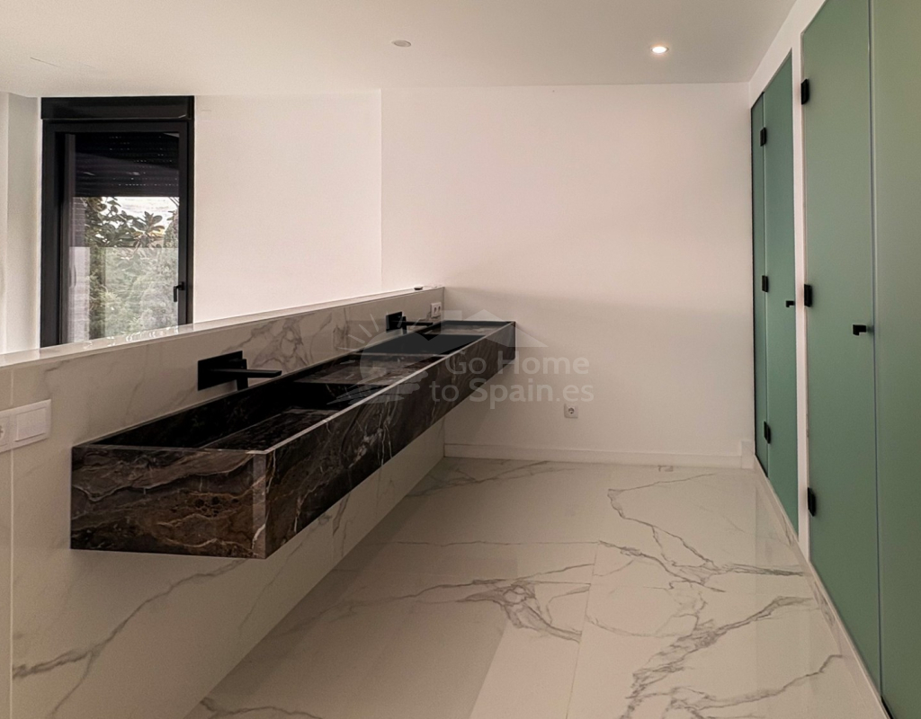 La propiedad cuenta con 300 m² de superficie habitable, 335 m² construidos y se asienta sobre una parcela de 763 m² con orientación este–sureste, lo que garantiza una magnífica entrada de luz natural desde primeras horas del día y vistas abiertas al Mediterráneo, así como panorámicas hacia Alicante al atardecer. La villa dispone de 5 dormitorios, ofreciendo amplitud, privacidad y una distribución pensada para un estilo de vida sofisticado junto al mar.