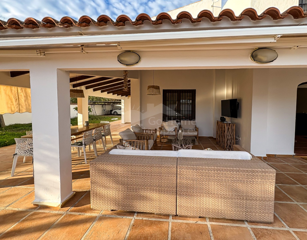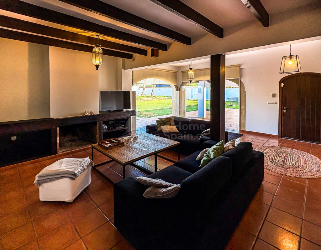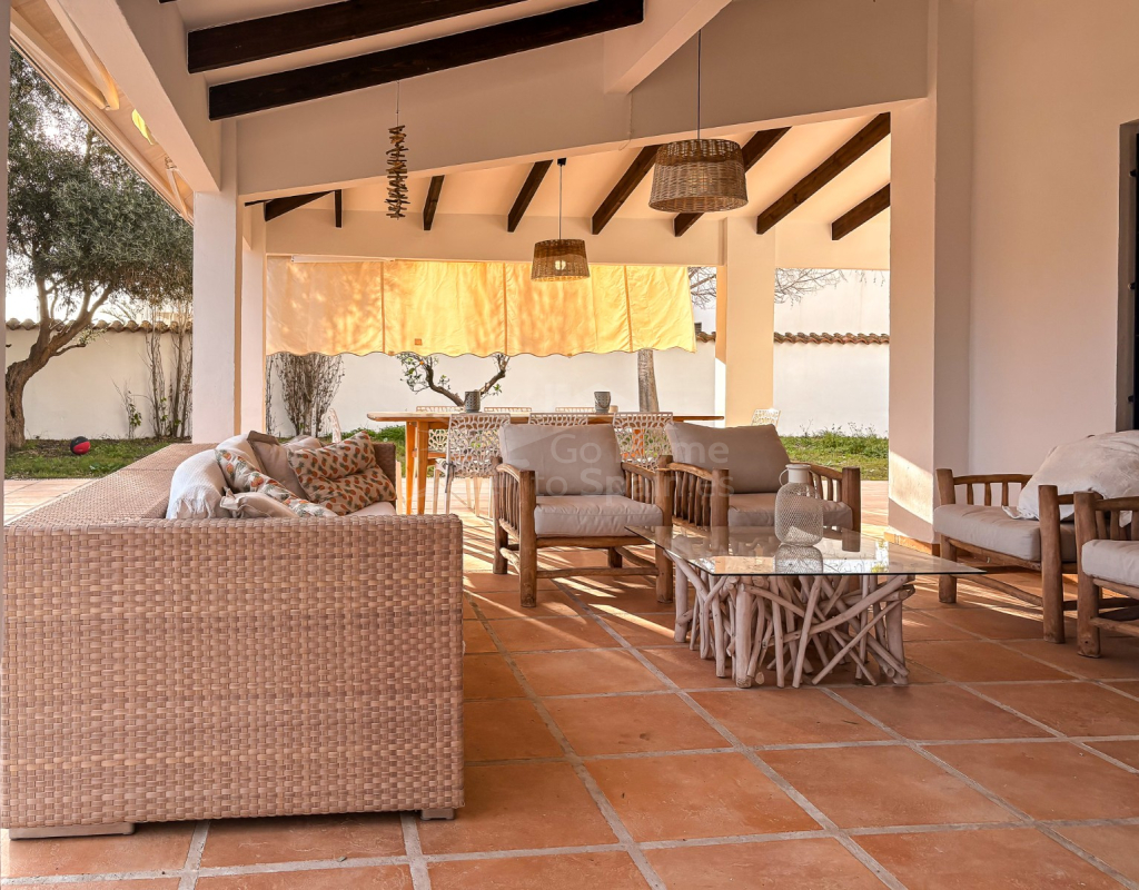 Arquitectónicamente, la villa refleja la esencia del Mediterráneo: fachada blanca, líneas curvas, vigas de madera vistas y una cuidada selección de muebles de diseño que refuerzan su identidad. Es una propiedad ideal para quienes valoran la arquitectura con madera, los detalles artesanales y el lujo sereno.