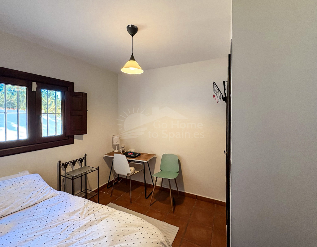 La casa cuenta con 4 dormitorios, 2 baños completos y 1 aseo. El dormitorio principal dispone de baño en suite con ducha, creando un espacio íntimo y confortable. La distribución está pensada para favorecer la ventilación cruzada y la entrada de luz natural, gracias a su orientación este, que permite disfrutar de amaneceres luminosos y temperaturas agradables.