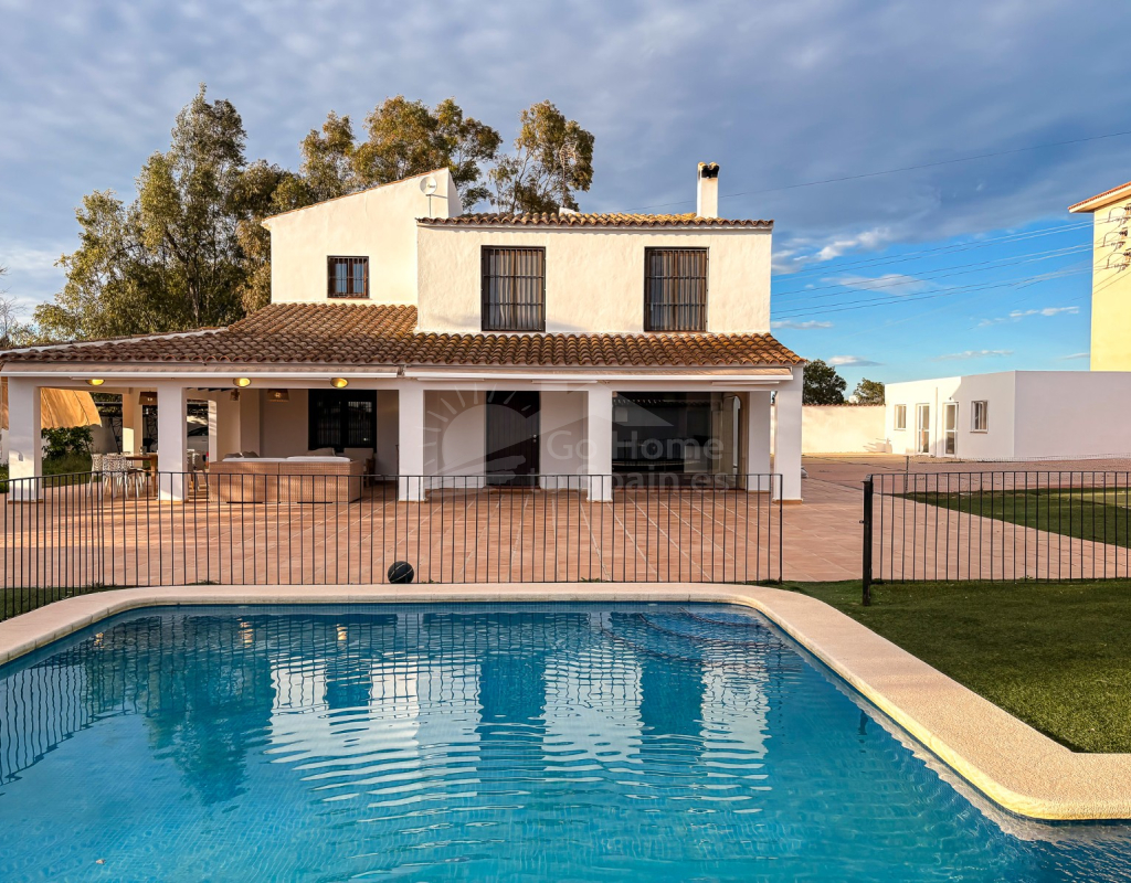 La vivienda se asienta sobre una impresionante parcela de 1.860 m², ofreciendo privacidad absoluta y amplios espacios exteriores. Dispone de 230 m² de vivienda principal, y junto con construcciones auxiliares —como zona de duchas para la piscina, trastero y áreas de almacenamiento— alcanza un total de 406 m² construidos.