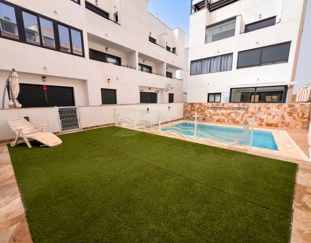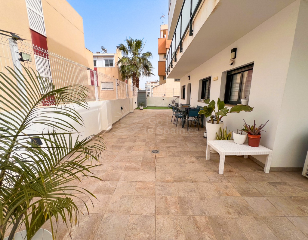 Hay viviendas que sorprenden por su distribución y otras por cómo se sienten al vivirlas. Este apartamento en planta baja en Guardamar del Segura combina ambas cosas. Situado en una urbanización moderna con piscina comunitaria y zonas de descanso, ofrece la sensación de vivir en un bungalow privado, gracias a sus amplios espacios exteriores y a la privacidad que aporta su orientación y disposición dentro del residencial.