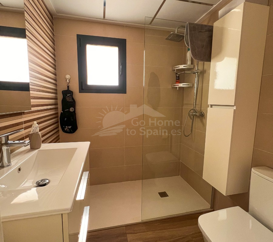 La vivienda cuenta con 122 m² construidos, distribuidos entre 77 m² de vivienda y un sótano privado de 45 m², creando una propiedad versátil y funcional. El interior se organiza en torno a un luminoso salón-comedor con cocina abierta de diseño contemporáneo, un espacio cómodo y acogedor que se conecta con una terraza cubierta perfecta para disfrutar durante todo el año. Dispone de 3 dormitorios con armarios empotrados y 2 baños completos, además de aire acondicionado centralizado frío/calor, que garantiza confort en cualquier estación.