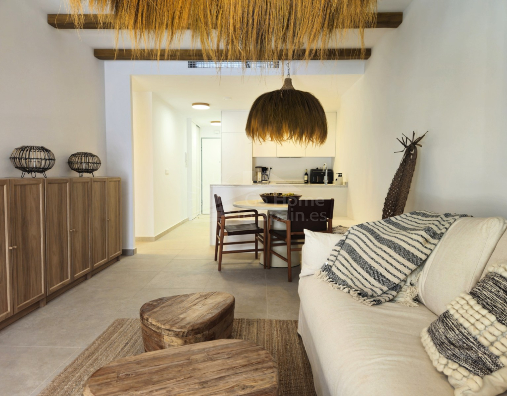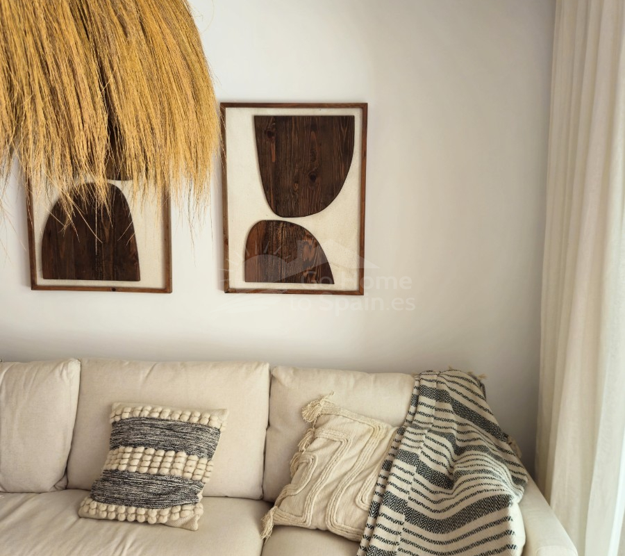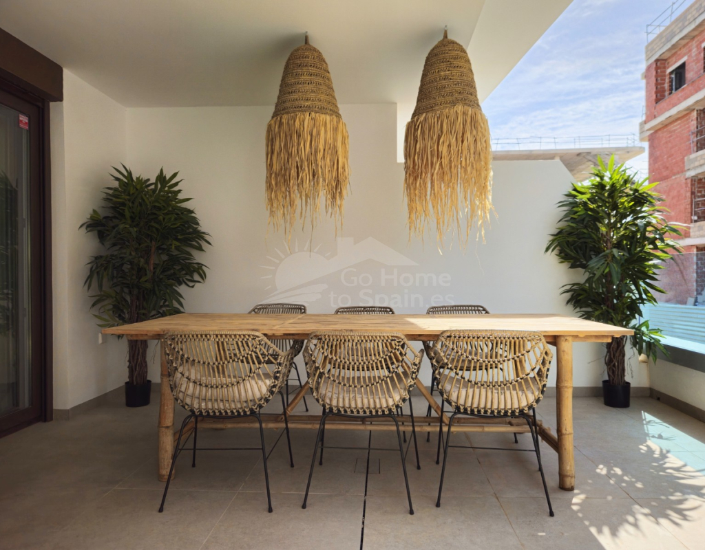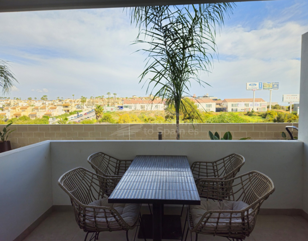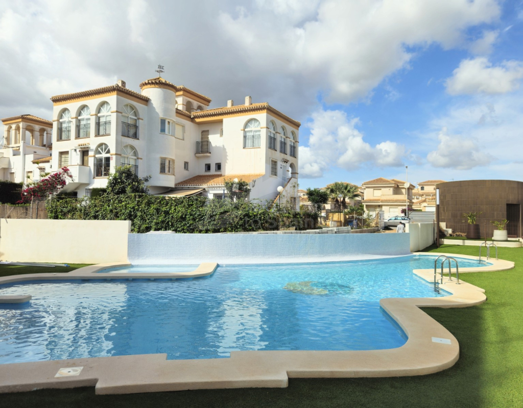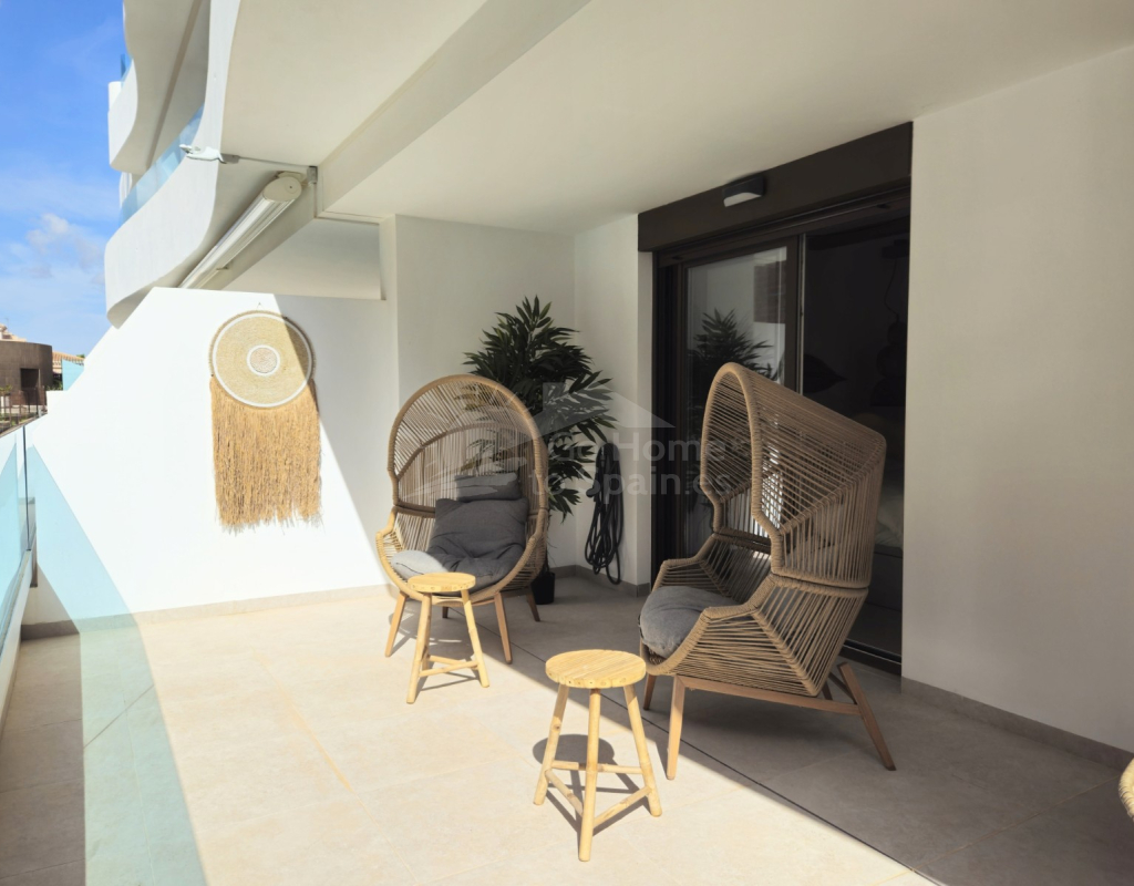 Descubra este elegante apartamento en planta baja en Playa Flamenca, Orihuela Costa, una ubicación privilegiada en la Costa Blanca que combina tranquilidad, estilo de vida mediterráneo y cercanía a todos los servicios. Esta acogedora vivienda de estilo mediterráneo cuenta con 2 dormitorios y 2 baños, diseñada para ofrecer comodidad, funcionalidad y luminosidad en cada espacio. El corazón del hogar lo forma un moderno salón-comedor con cocina abierta, un concepto actual que conecta perfectamente con el resto de la vivienda y crea un ambiente ideal tanto para la vida diaria como para recibir invitados. Desde el salón se accede a una agradable terraza privada, perfecta para disfrutar del clima soleado durante todo el año, desayunar al aire libre o relajarse al final del día. La propiedad forma parte de una cuidada urbanización con una fantástica piscina comunitaria, rodeada de zonas comunes ideales para el descanso y el ocio. Su excelente ubicación permite llegar fácilmente al mar y a las playas de Orihuela Costa, así como a prestigiosos campos de golf, al popular centro comercial la Zenia y a una amplia oferta de restaurantes, tiendas y servicios. Esta vivienda representa una oportunidad ideal tanto como residencia habitual, segunda vivienda en la Costa Blanca o inversión inmobiliaria, combinando ubicación estratégica, confort y el auténtico estilo de vida mediterráneo.