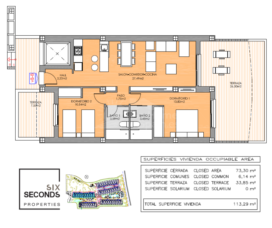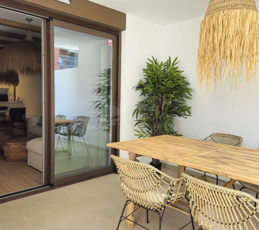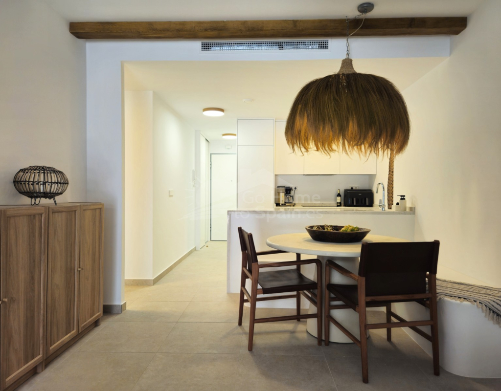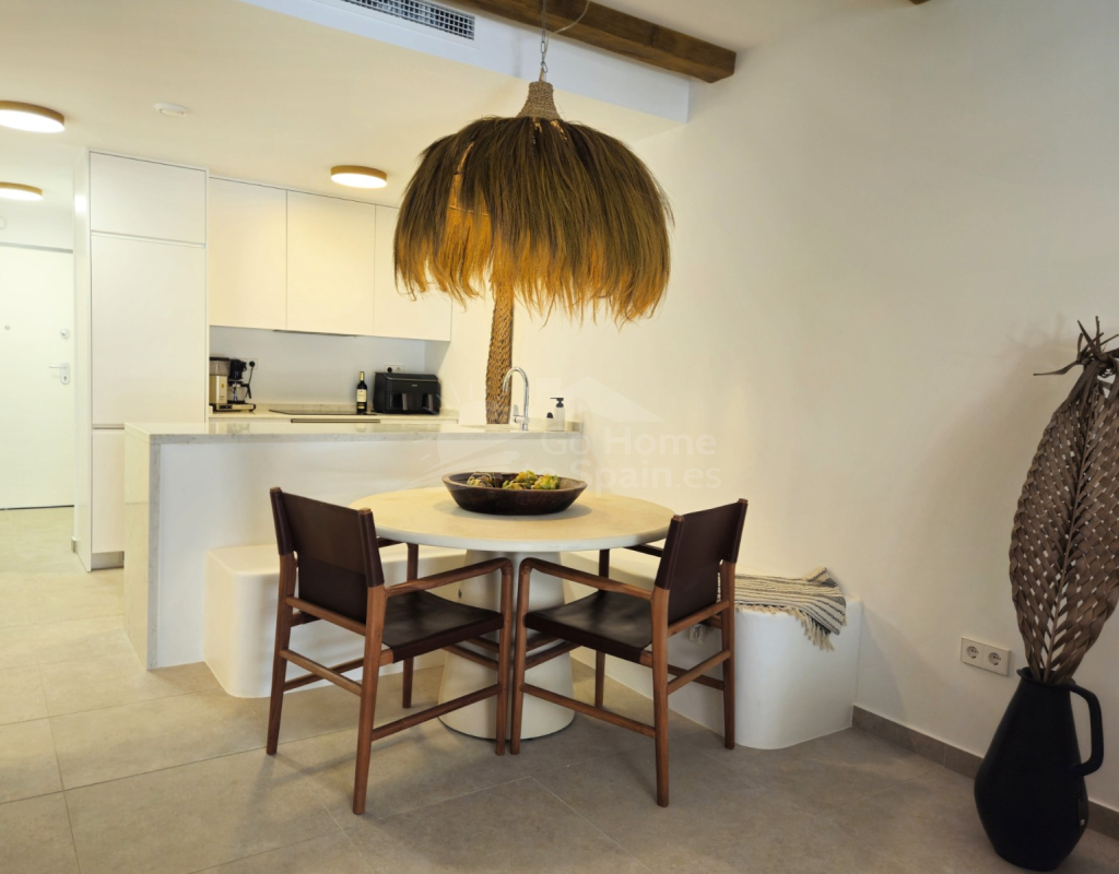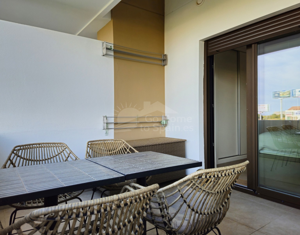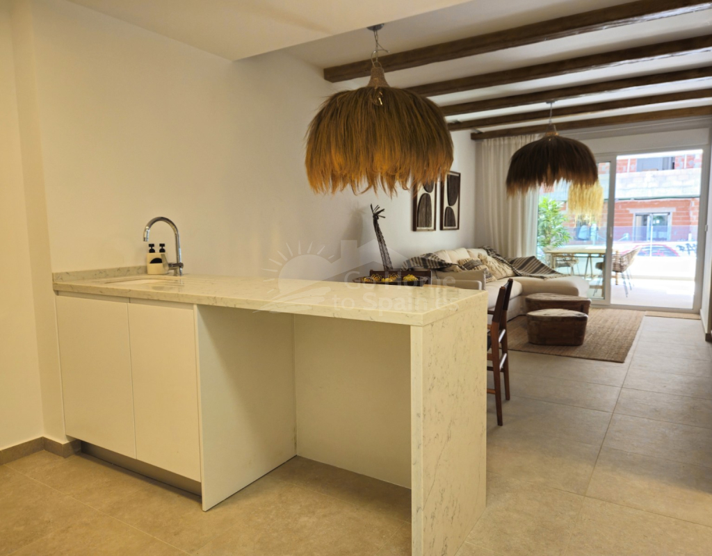 Descubra este elegante apartamento en planta baja en Playa Flamenca, Orihuela Costa, una ubicación privilegiada en la Costa Blanca que combina tranquilidad, estilo de vida mediterráneo y cercanía a todos los servicios. Esta acogedora vivienda de estilo mediterráneo cuenta con 2 dormitorios y 2 baños, diseñada para ofrecer comodidad, funcionalidad y luminosidad en cada espacio. El corazón del hogar lo forma un moderno salón-comedor con cocina abierta, un concepto actual que conecta perfectamente con el resto de la vivienda y crea un ambiente ideal tanto para la vida diaria como para recibir invitados. Desde el salón se accede a una agradable terraza privada, perfecta para disfrutar del clima soleado durante todo el año, desayunar al aire libre o relajarse al final del día. La propiedad forma parte de una cuidada urbanización con una fantástica piscina comunitaria, rodeada de zonas comunes ideales para el descanso y el ocio. Su excelente ubicación permite llegar fácilmente al mar y a las playas de Orihuela Costa, así como a prestigiosos campos de golf, al popular centro comercial la Zenia y a una amplia oferta de restaurantes, tiendas y servicios. Esta vivienda representa una oportunidad ideal tanto como residencia habitual, segunda vivienda en la Costa Blanca o inversión inmobiliaria, combinando ubicación estratégica, confort y el auténtico estilo de vida mediterráneo.