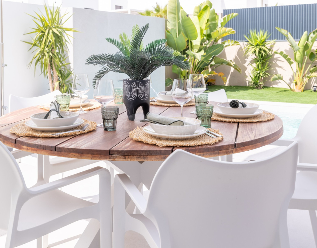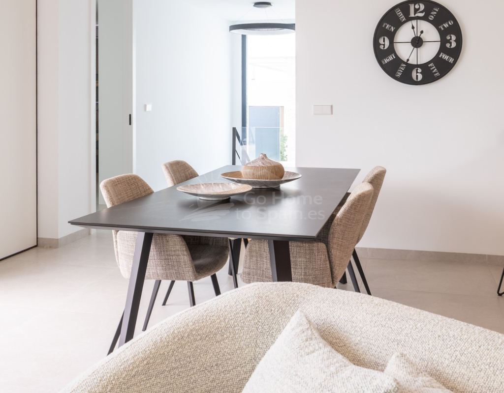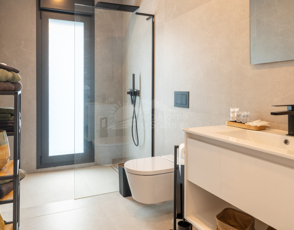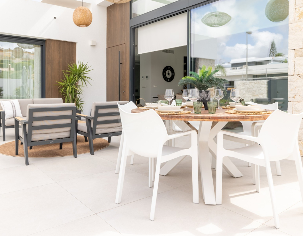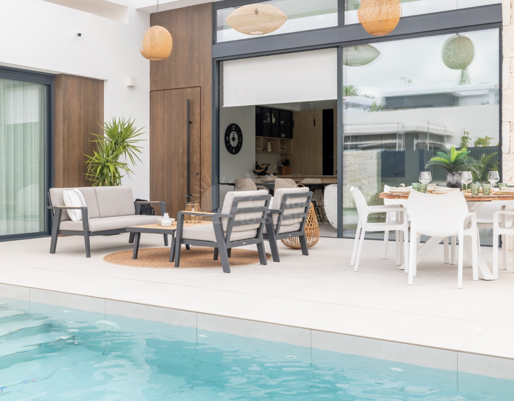 Descubre esta impresionante villa moderna en Rojales (Alicante), con 272 m² construidos sobre una parcela de 370 m². La vivienda cuenta con 4 amplios dormitorios y 4 baños, un salón-comedor luminoso con cocina abierta totalmente equipada, además de sala polivalente, lavadero y vestidor. Su diseño contemporáneo, con grandes ventanales y acabados de primera calidad, ofrece espacios elegantes y confortables. En el exterior podrás disfrutar de una piscina privada con cascada, terrazas soleadas y un jardín de bajo mantenimiento, perfectos para relajarse o compartir momentos en familia. Situada en la exclusiva urbanización La Bernada, en Rojales, la propiedad combina tranquilidad y comodidad, con todos los servicios a pocos minutos: supermercados, restaurantes, colegios y centros deportivos, además de prestigiosos campos de golf en el entorno. A tan solo 10 minutos de las playas de Guardamar y La Mata, y a 30 minutos del aeropuerto de Alicante, esta villa es la opción ideal tanto como residencia permanente como para vacaciones en la Costa Blanca.