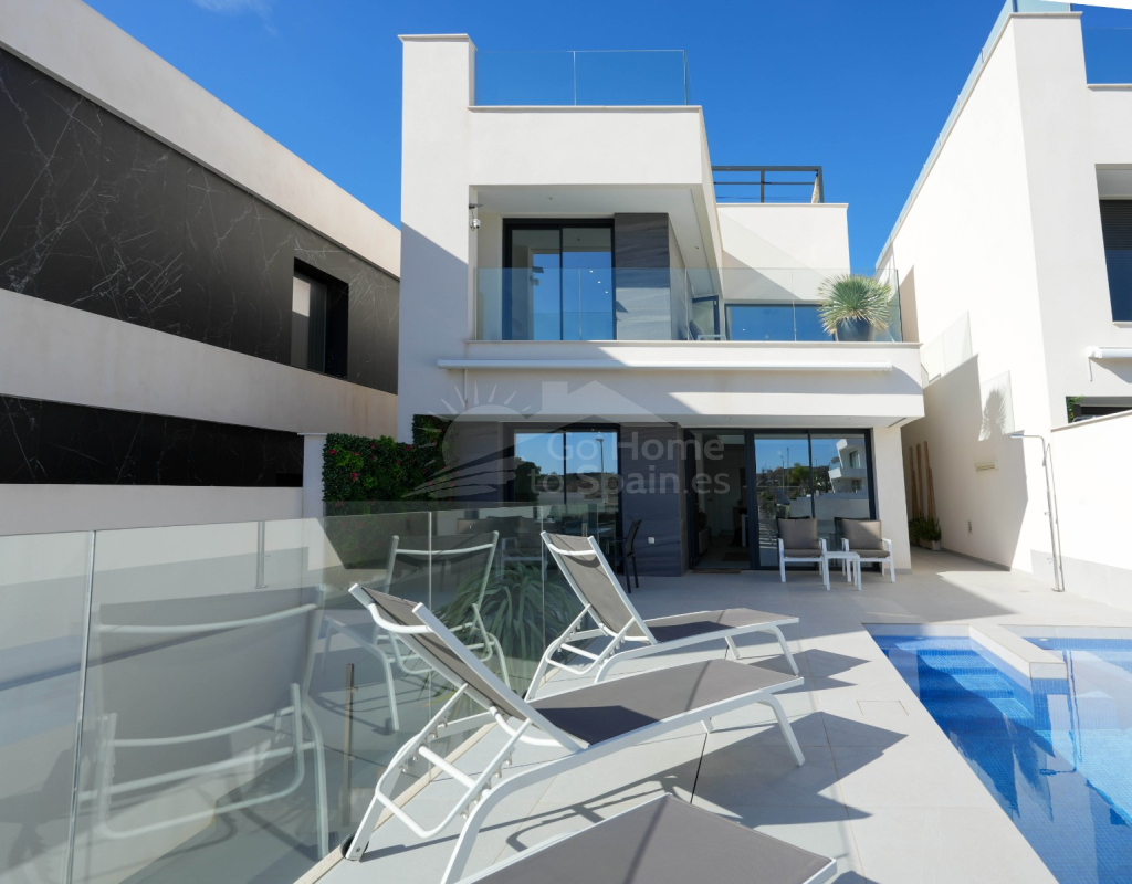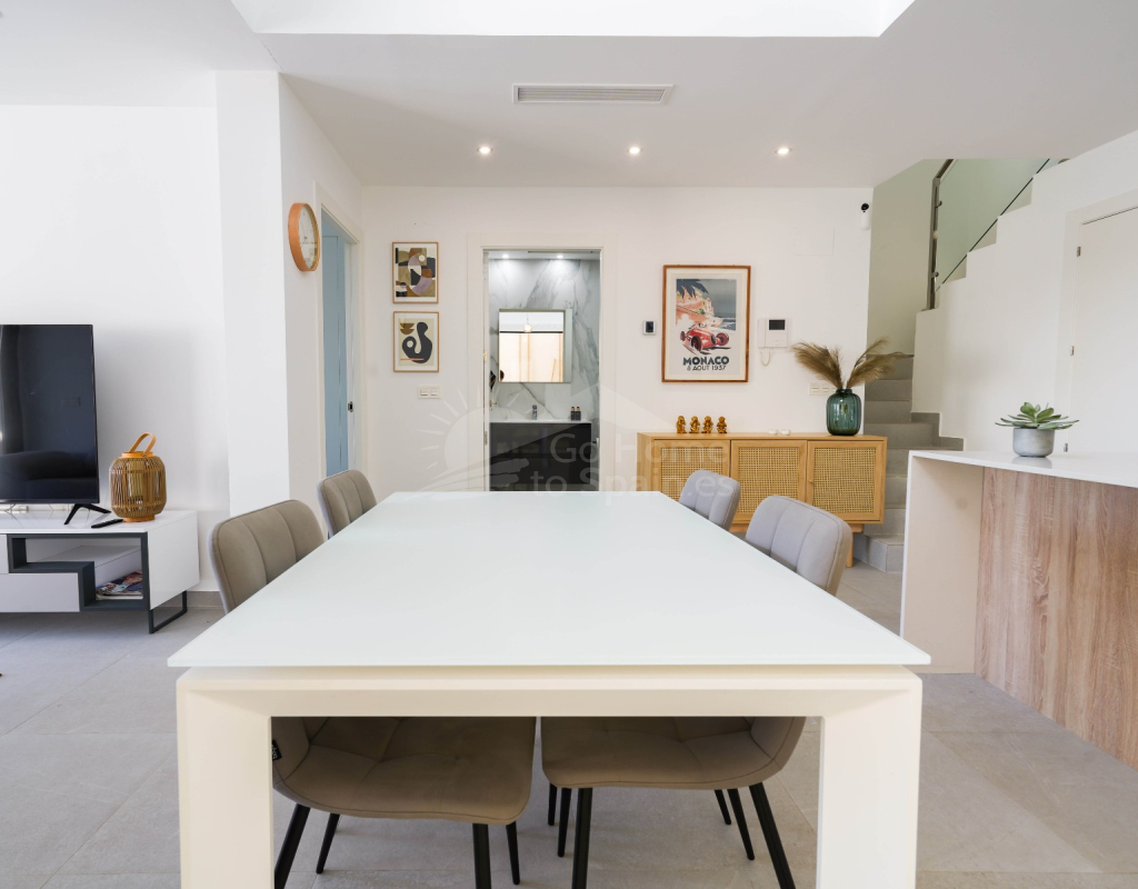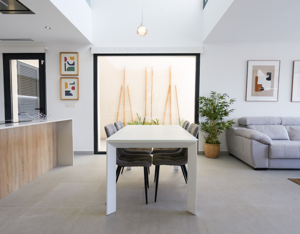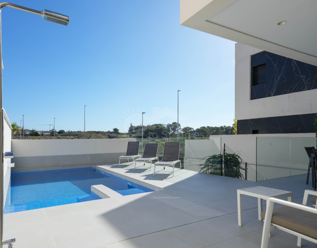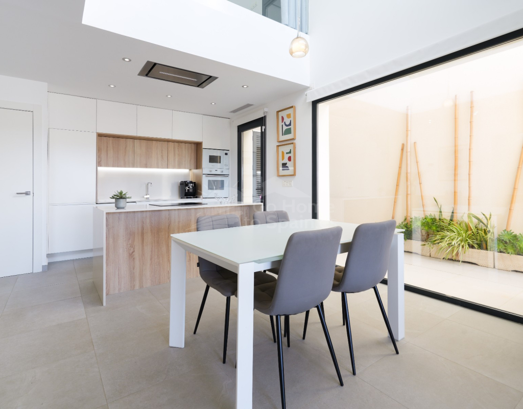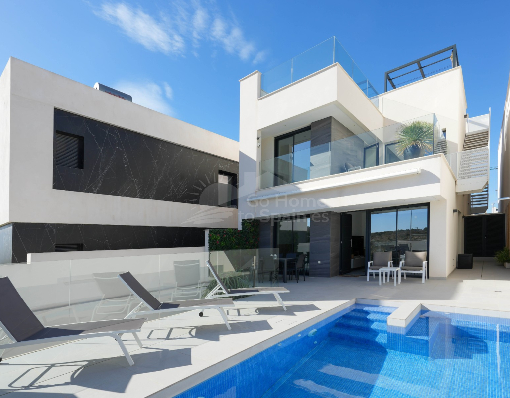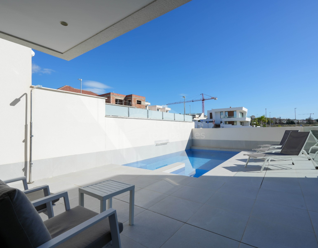 Esta villa combina un diseño actual con espacios amplios y bien aprovechados. Dispone de 3 dormitorios y 2 baños, una cocina abierta integrada con el salón-comedor, creando un ambiente cómodo y luminoso con acceso directo al exterior. En la zona exterior se encuentra la piscina privada, el solárium y un aparcamiento dentro de la parcela. Es una vivienda moderna y funcional, ideal para disfrutar del clima mediterráneo durante todo el año.