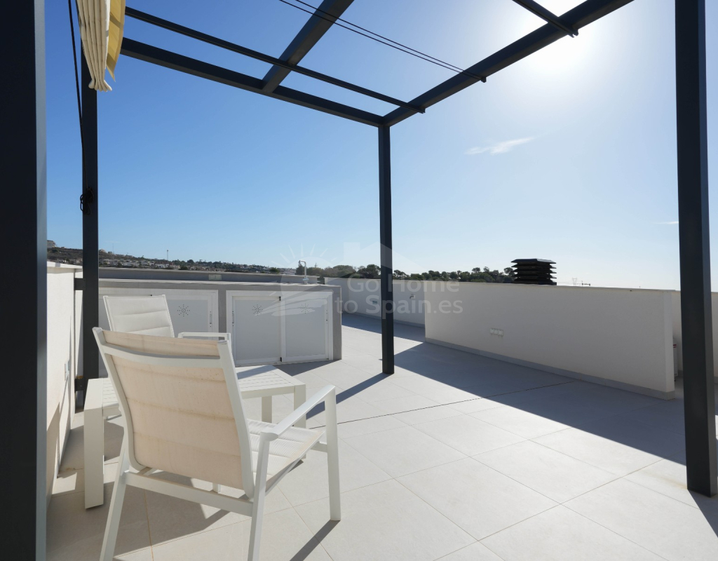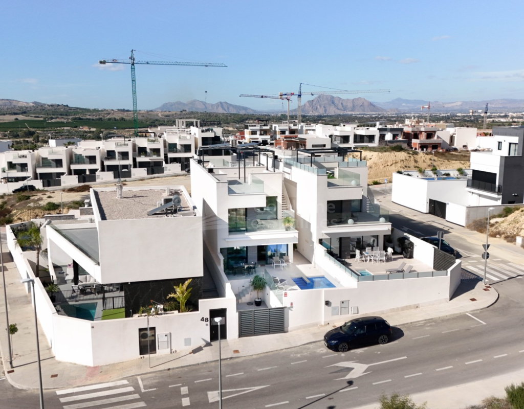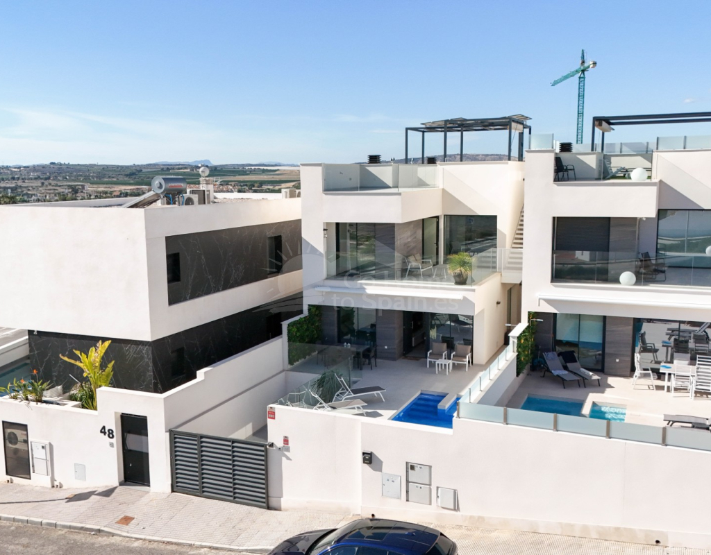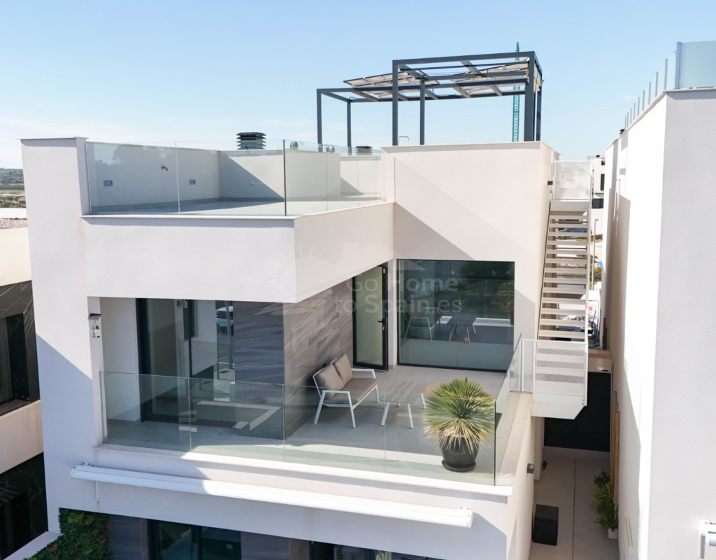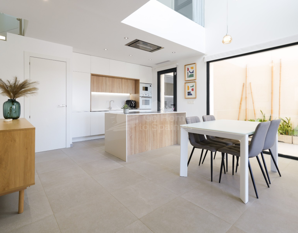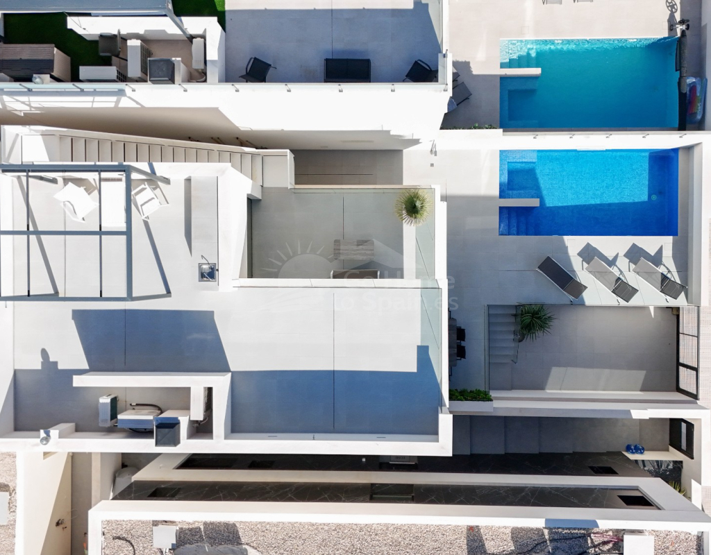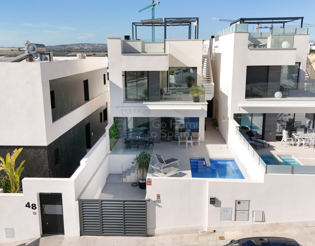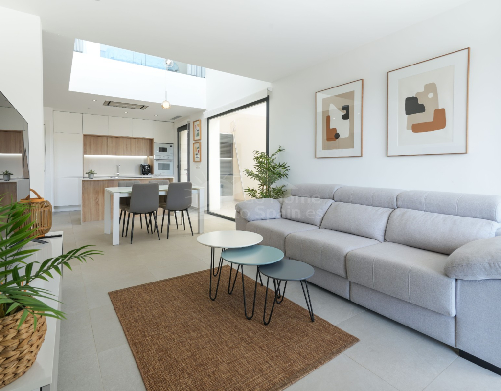 Esta villa combina un diseño actual con espacios amplios y bien aprovechados. Dispone de 3 dormitorios y 2 baños, una cocina abierta integrada con el salón-comedor, creando un ambiente cómodo y luminoso con acceso directo al exterior. En la zona exterior se encuentra la piscina privada, el solárium y un aparcamiento dentro de la parcela. Es una vivienda moderna y funcional, ideal para disfrutar del clima mediterráneo durante todo el año.