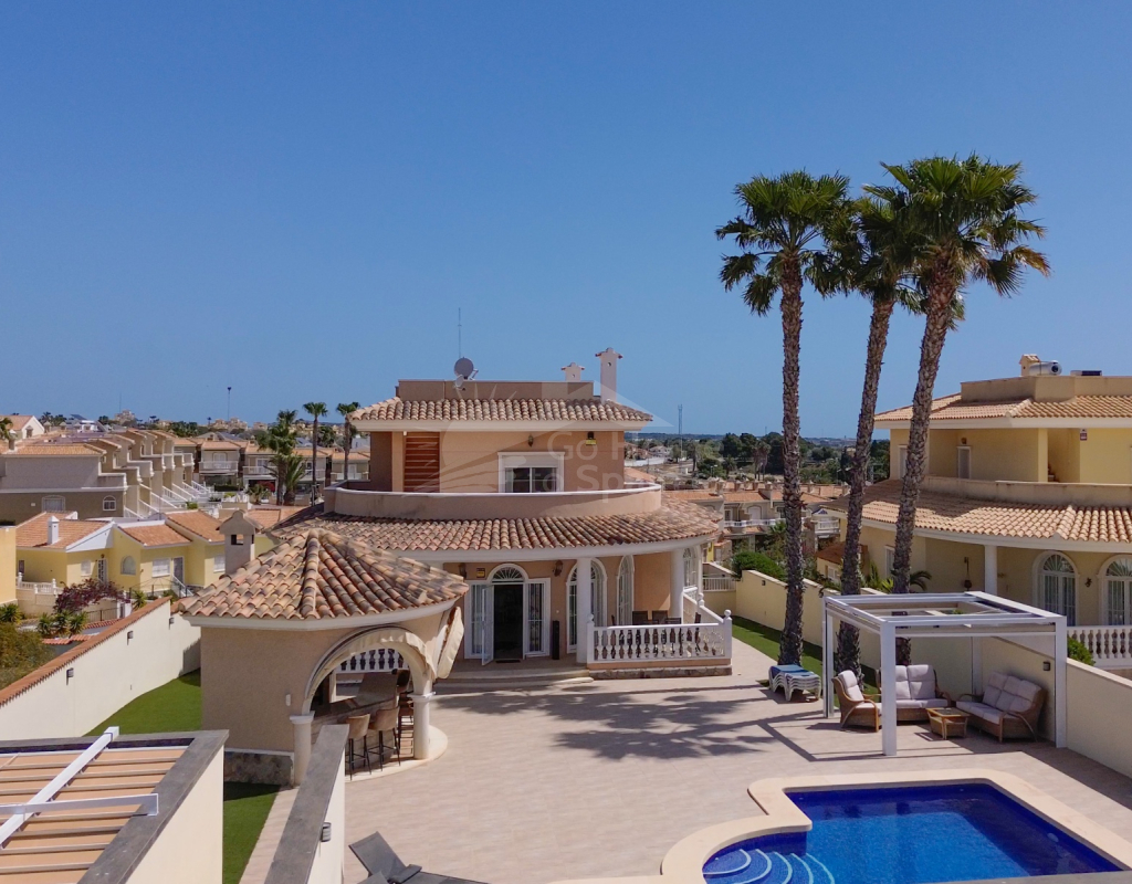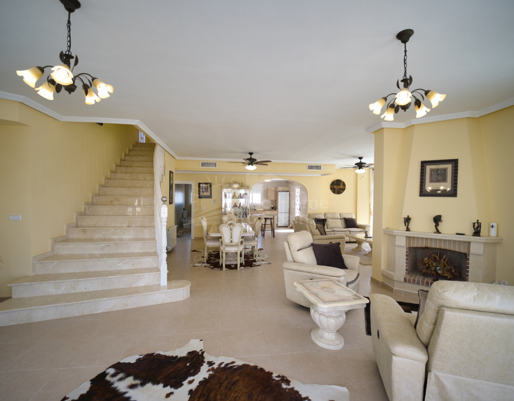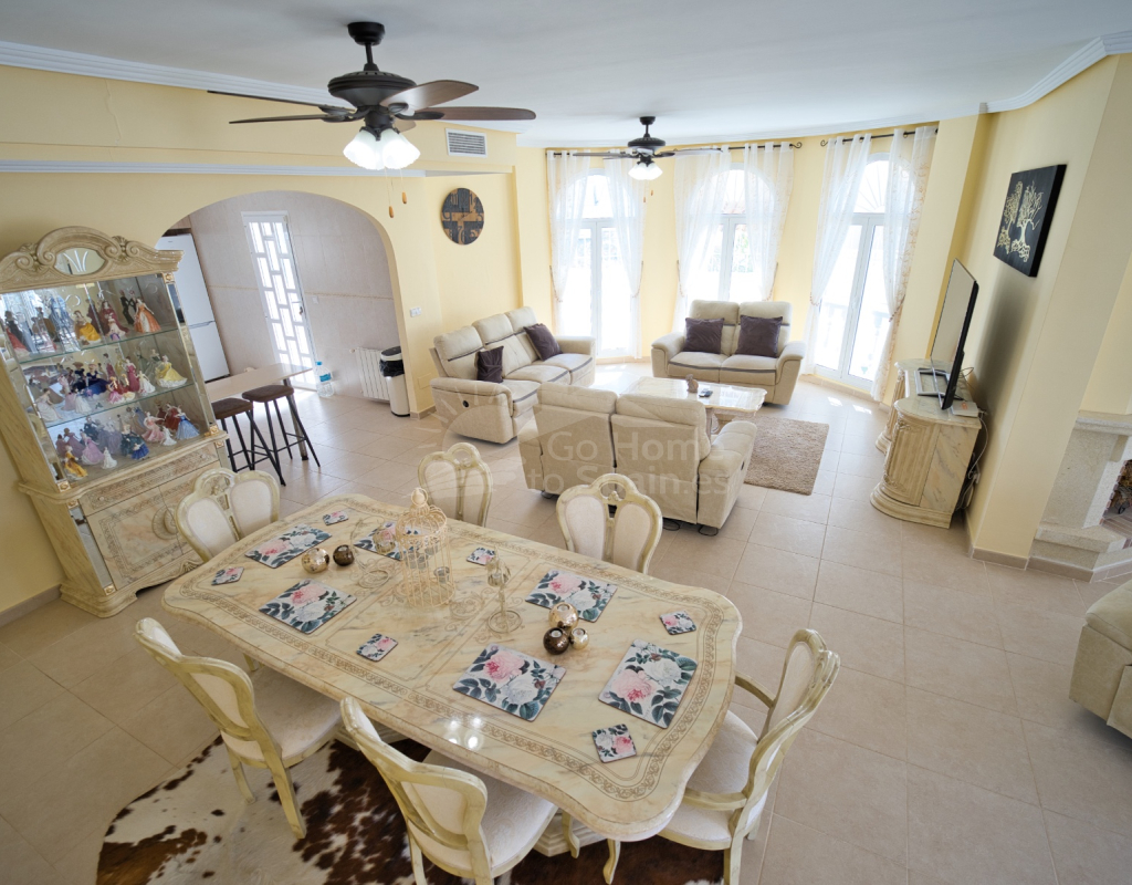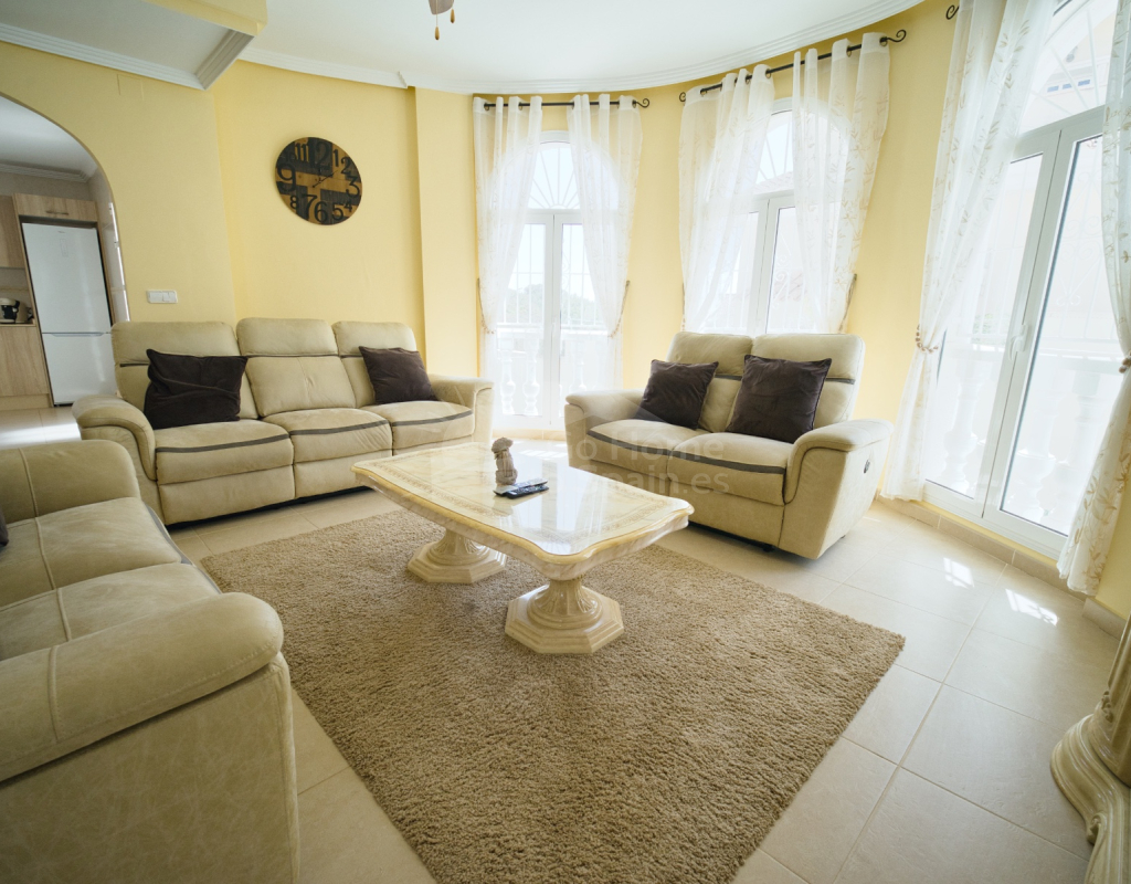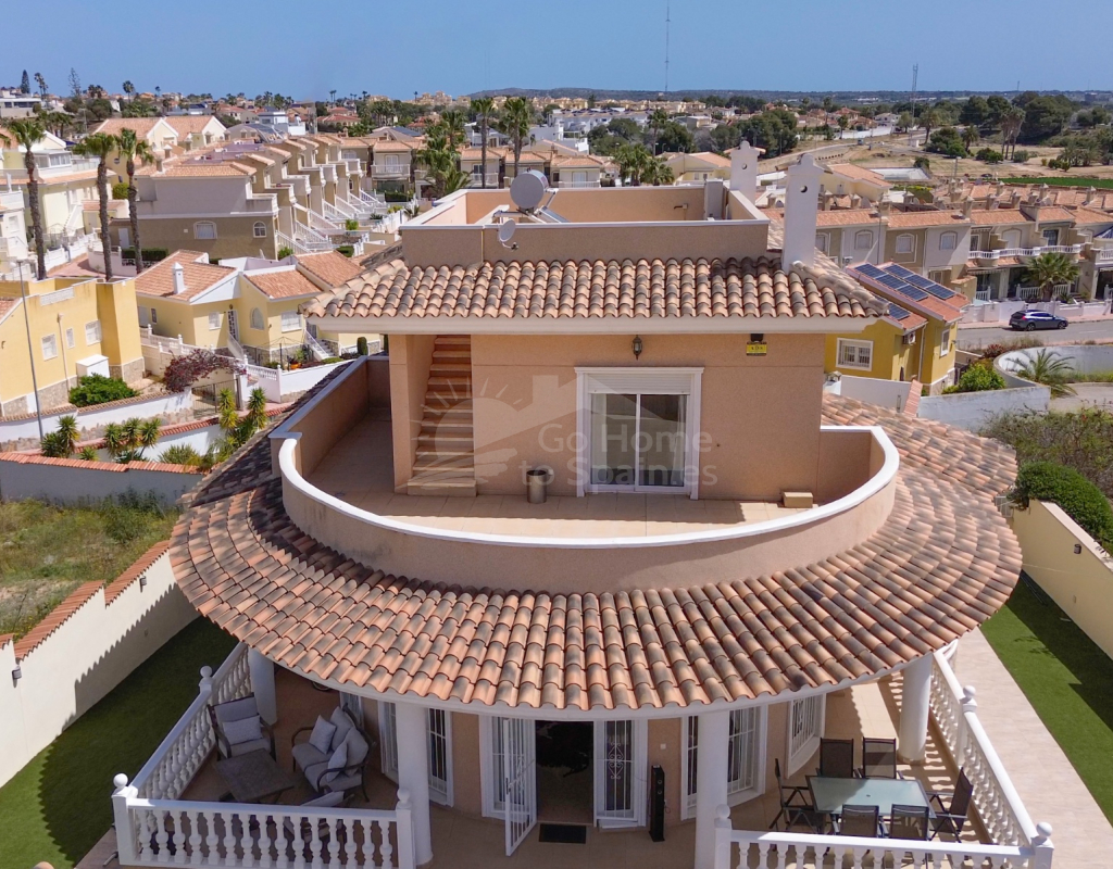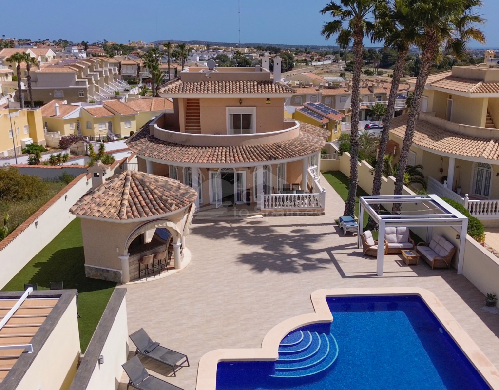 Nos complace ofrecer esta impresionante villa independiente de 4 dormitorios y 3 baños con piscina en la zona más cotizada de Ciudad Quesada. Situada en una generosa parcela de 786 m², esta hermosa vivienda ofrece espacio, comodidad y un toque de lujo en todas sus estancias. En la planta baja encontrará dos amplios dormitorios dobles y un gran y elegante cuarto de baño familiar. La zona de estar diáfana es realmente espectacular, tan grande que cuenta con dos zonas de salón diferenciadas, un comedor y una cocina totalmente equipada. Es el espacio perfecto para la vida familiar o para recibir invitados. En la planta superior encontrará otros dos amplios dormitorios, ambos con modernos cuartos de baño en suite. El dormitorio delantero tiene acceso a una enorme terraza privada con vistas al jardín, fácil de mantener, y a la acogedora zona de la piscina privada. Subiendo de nuevo, se llega a la azotea, donde las vistas se extienden a lo largo de los lagos salados y hasta el mar Mediterráneo, simplemente impresionante. En el exterior, esta casa sigue impresionando. Hay dos terrazas cubiertas en la parte delantera de la villa, ideales para comer al aire libre o relajarse a la sombra. Una encantadora zona con pérgola, un bar bien equipado con televisión y taburetes y un garaje individual con techo retráctil. Otras características adicionales son el aire acondicionado y la calefacción central. La villa se vende completamente amueblada con muebles de buen gusto y alta calidad en todas las estancias.