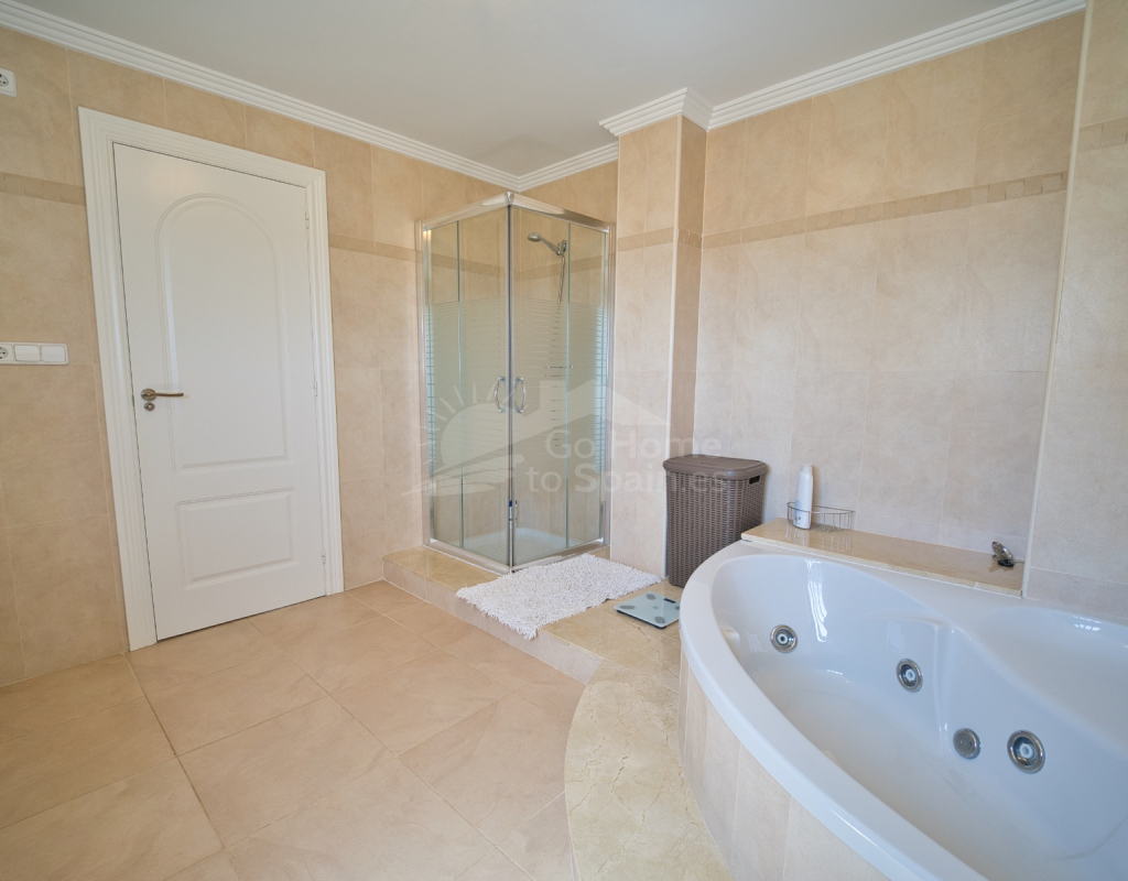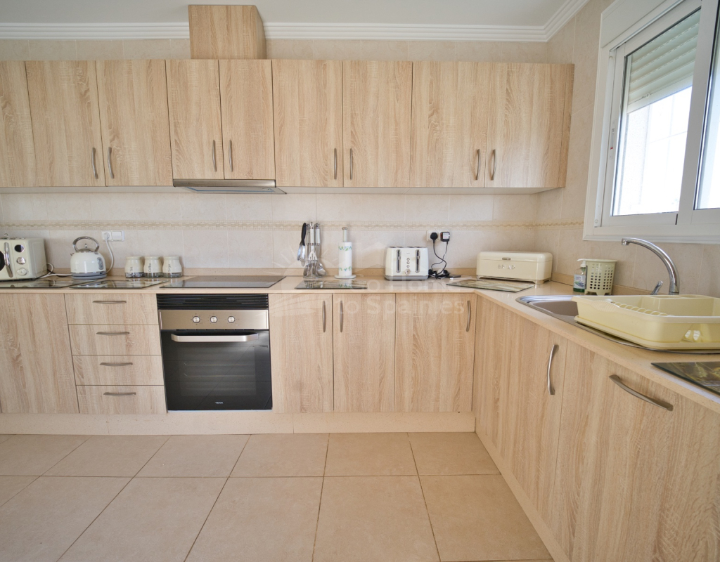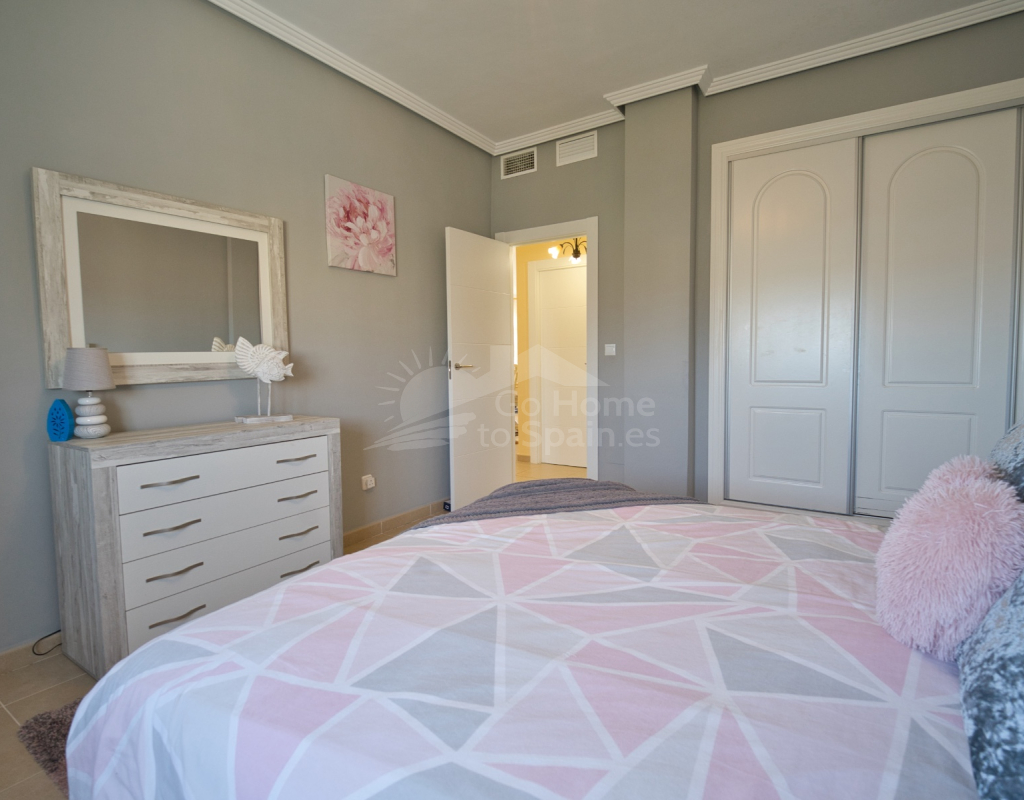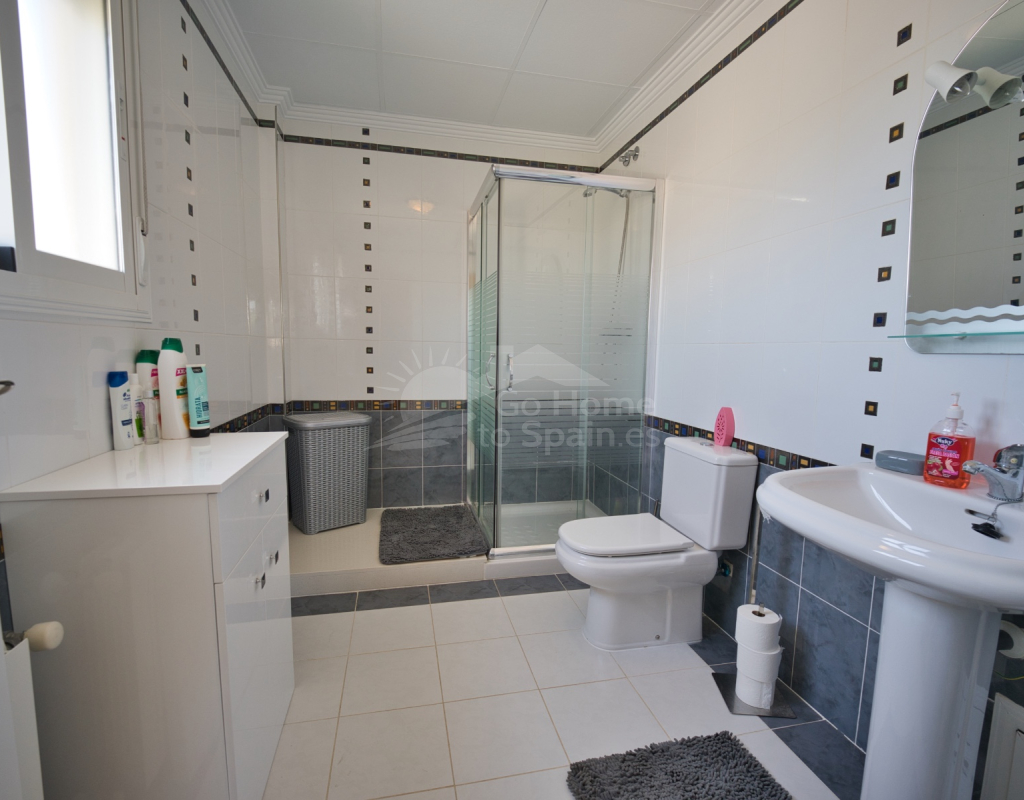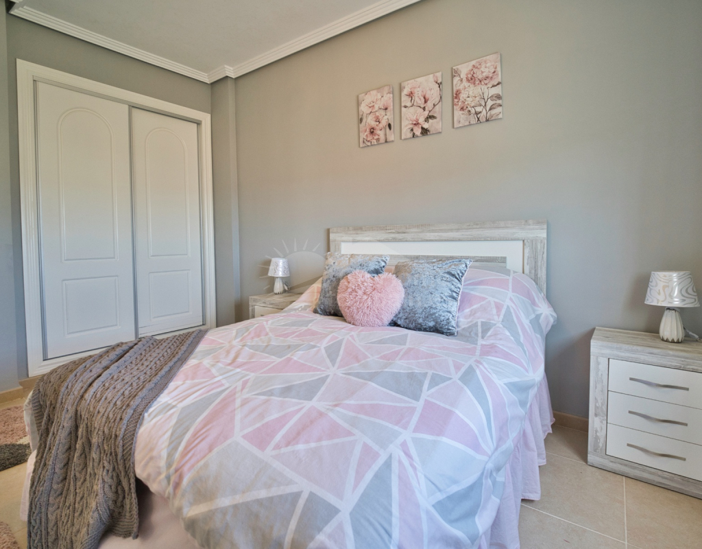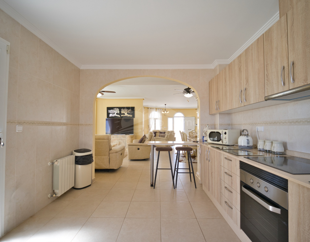 Nos complace ofrecer esta impresionante villa independiente de 4 dormitorios y 3 baños con piscina en la zona más cotizada de Ciudad Quesada. Situada en una generosa parcela de 786 m², esta hermosa vivienda ofrece espacio, comodidad y un toque de lujo en todas sus estancias. En la planta baja encontrará dos amplios dormitorios dobles y un gran y elegante cuarto de baño familiar. La zona de estar diáfana es realmente espectacular, tan grande que cuenta con dos zonas de salón diferenciadas, un comedor y una cocina totalmente equipada. Es el espacio perfecto para la vida familiar o para recibir invitados. En la planta superior encontrará otros dos amplios dormitorios, ambos con modernos cuartos de baño en suite. El dormitorio delantero tiene acceso a una enorme terraza privada con vistas al jardín, fácil de mantener, y a la acogedora zona de la piscina privada. Subiendo de nuevo, se llega a la azotea, donde las vistas se extienden a lo largo de los lagos salados y hasta el mar Mediterráneo, simplemente impresionante. En el exterior, esta casa sigue impresionando. Hay dos terrazas cubiertas en la parte delantera de la villa, ideales para comer al aire libre o relajarse a la sombra. Una encantadora zona con pérgola, un bar bien equipado con televisión y taburetes y un garaje individual con techo retráctil. Otras características adicionales son el aire acondicionado y la calefacción central. La villa se vende completamente amueblada con muebles de buen gusto y alta calidad en todas las estancias.