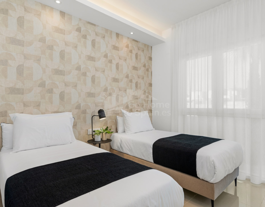 The apartments have 2 bedrooms and 2 bathrooms in the Adhara model and 3 bedrooms and 2 bathrooms in the Jazmín model, as well as an open plan kitchen and living-dining room. You can choose the option of ground floor with beautiful private garden or top floor with spacious solarium.
