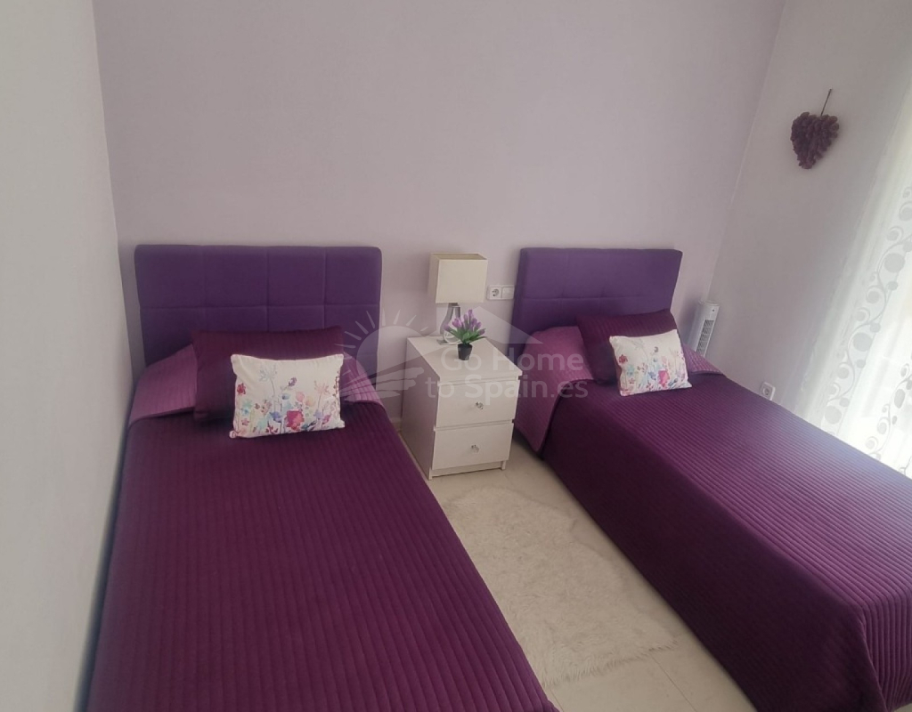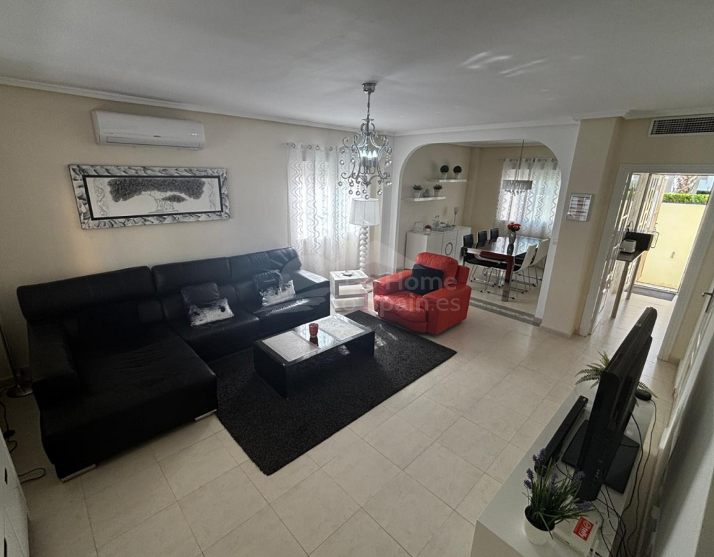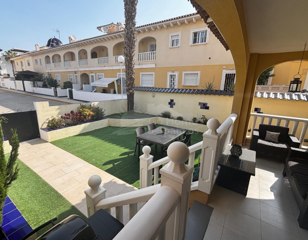 We are delighted to bring to market this stunning 2/3 bedroom semi-detached Lola style property, built by Euromarina in 2007, in the highly desirable area of Dona Pepa, within a gated community. The property has been improved to a very high standard by the current owners. The property benefits from a corner position, providing front & rear gardens along with a side entrance. The external walls have been raised, providing privacy, an outside utility area has been added housing the washing machine and storage area.Inside the property, the current owners have kept a lounge & dining space. This dining space can easily be converted back to a 3rd bedroom if desired.The furniture, all of which is included with this property is of an exceptional standard. This really is a turn key property to enable you to enjoy from the moment you step through the door.The small development of Alegria enjoys a fabulous communal pool with beautiful gardens for you to enjoy. Within a short walking distance you will find various supermarkets, bars & restaurants.
