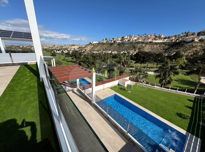 Villa in the first line of La Marquesa golf course, this villa has elevator on all floors of the villa, with 4 bedrooms, one of them is a suite, 4 bathrooms, 2 large and comfortable living rooms, 2 kitchens in interior and a summer kitchen on the solarium, terraces with overviews on the golf course, laundry, parking area and a big private pool with jacuzzi. Fully equipped with elevator, solar panels and air conditioning. We have ENERGY rating A, betting on bioconstruction, ecoefficient villas of the next XXI. It is located near of medical services, Swedish school, public schools, playgrounds, 15 minutes from the beaches of Guardamar and 5 minutes from the old town of Rojales. With 467 m2 of plot area and 260,43 m2 of useful area.