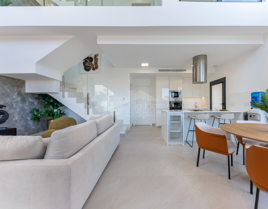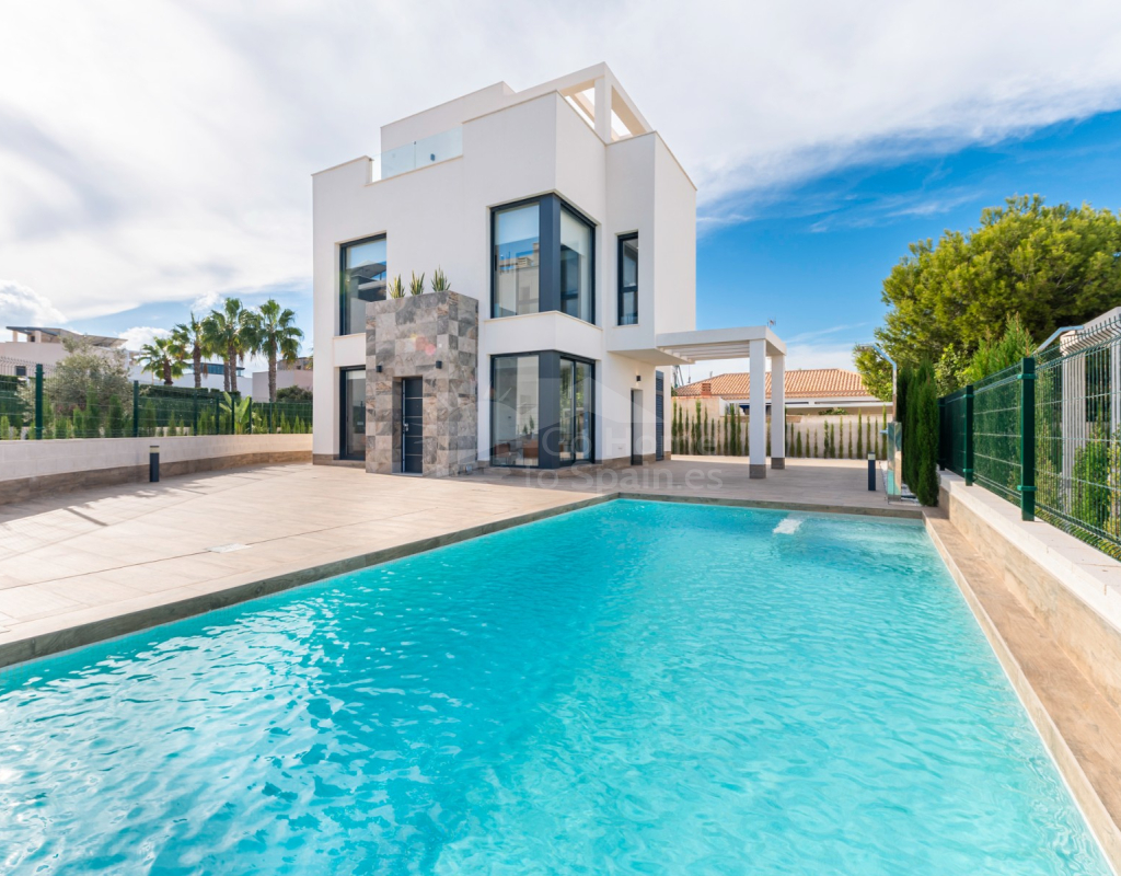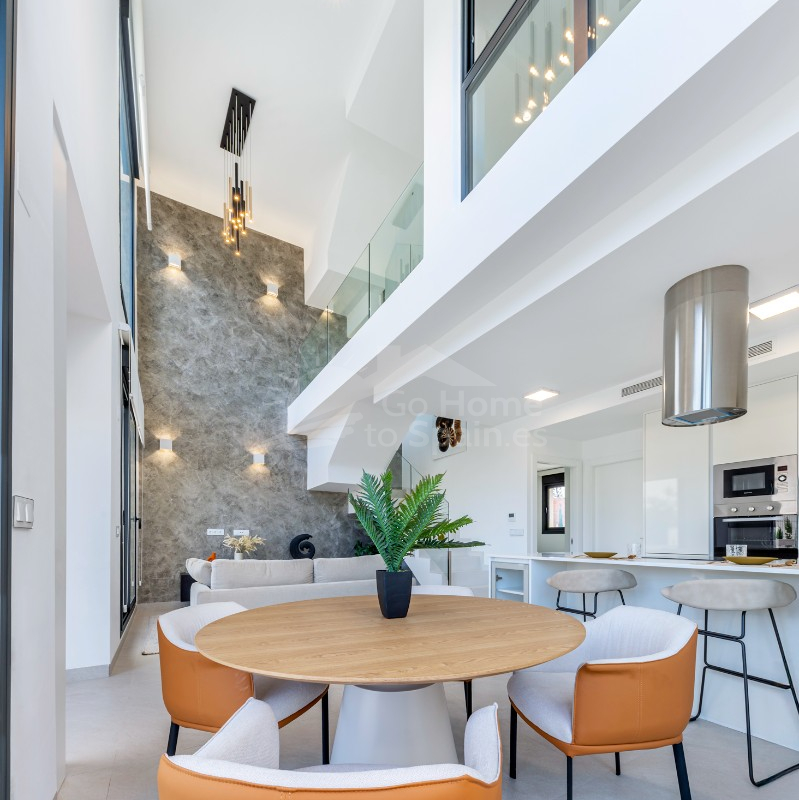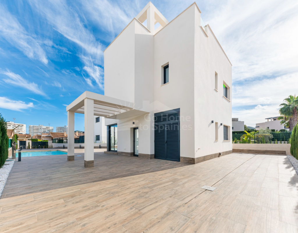New build villa in Playa Honda, Mar Menor Can you imagine enjoying the tranquillity of the sea, the climate and the wonderful atmosphere of the Costa Calida all year round? This incredible brand new villa for sale in Playa Honda is perfect. It offers comfort and elegance in equal measure in every corner. A home to match your standard of living. You will love to fill this beautiful home with memorable memories, such as sunsets or barbecues on the large solarium, dips in the private pool during the long summers or starry nights in the glazed dining room. Undoubtedly, a home that envelops you and that will make you enjoy every single one of its details. Build a new and healthy life in this property with 3 bedrooms and 3 bathrooms, where you will be part of an exclusive and quiet residential area, where you will be able to meet other charming families who share the same tastes as you. The new development AMAY VILLAS DEL MAR could not have a better location: it is situated just 3 minutes’ walk from the beautiful Playa Honda (Cartagena) and very close to the famous Calblanque Regional Park, considered the natural paradise of Murcia. If you are looking for a quiet life by the sea, this modern villa in Mar Menor is your dream To live all year round in the sun and enjoy pleasant strolls through healing waters is only available in one place: the Region of Murcia and its beautiful salt sea. If you want to take care of yourself and your family, this new build villa, excellently designed with high qualities and safe technology, will connect you with the wellness of the Mar Menor. Can you imagine enjoying a free outdoor spa 365 days a year? This property, a breath away from the Mar Menor and its wonderful iodine baths, is a gift for your health. With its 126 m2 built and private plot of 440 m2, the house is spacious enough to raise a family, watch your children play in a safe enclosure and receive your guests as they deserve, being a good host and offering them all the comforts.