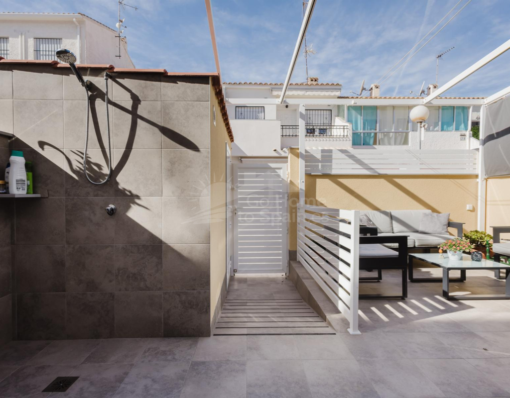 DREAM BUNGALOW JUST STEPS FROM THE SEA €185.000Looking for a move-in ready home in a vibrant setting with the best quality of life the Mediterranean has to offer This bungalow in Torrevieja is exactly what you need.With 3 bedrooms, 1 bathroom, 102 m² of living space, and a 28 m² private garden, this property combines comfort, functionality, and style. Its open-plan kitchen is perfect for family moments, while the proximity to the sea gives you the privilege of living where others only dream of vacationing Just 300 meters from Los Náufragos Beach, awarded the Blue Flag for its clean waters and excellent services. Only 400 meters from Acequión Beach, ideal for evening strolls and water activities. It also includes access to a community pool through a summer pass, perfect for cooling off and socializing in the best season of the year.The location is unbeatable surrounded by shops, supermarkets, pharmacies, restaurants, bars, shopping centers, and with excellent access to Alicante International Airport (only 45 km away).Living in Torrevieja means enjoying more than 320 days of sunshine per year, a privileged Mediterranean climate, and a wide range of leisure and tourism options the Natural Park of the Salt Lakes of La Mata and Torrevieja, the seafront promenade, the marina, and historical landmarks such as Torre del Moro. In addition, within 30 minutes youll find top-level golf courses and amusement parks along the Costa Blanca.This bungalow is not just a home, its a lifestyle. Perfect both as a permanent residence and as an investment, it offers you tranquility, proximity to the sea, and all the amenities at your fingertips. Price €185.000 Location Torrevieja Southern Costa Blanca Property Tax (IBI) €170.85 Community Fees €157.80 per year Ready to move in! Dont miss the opportunity to make this bungalow your new Mediterranean home.