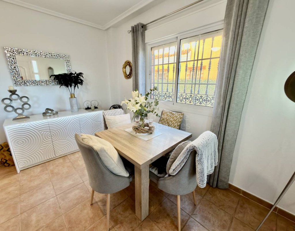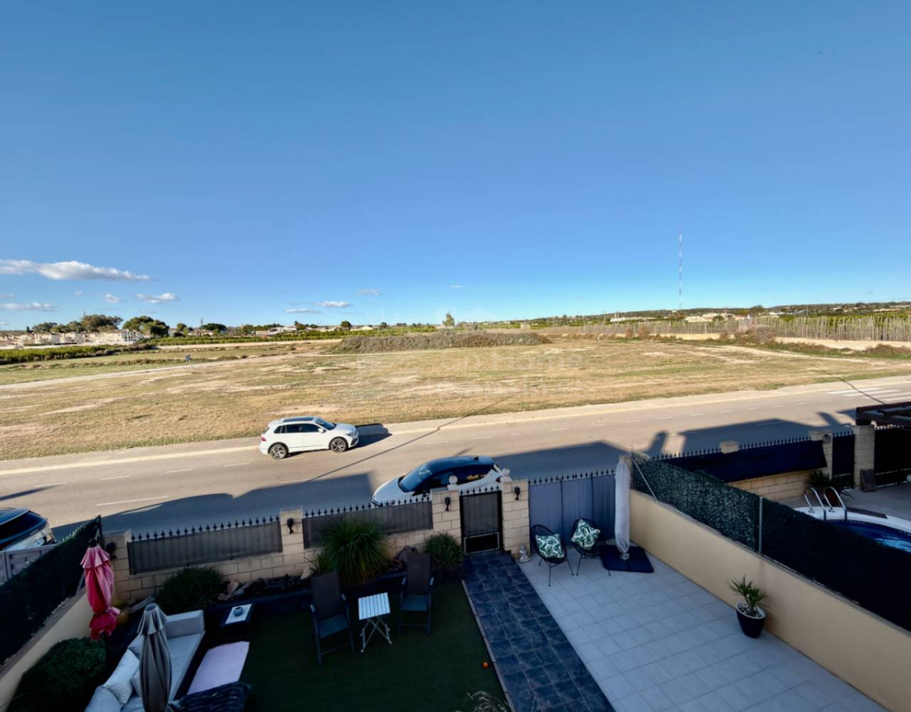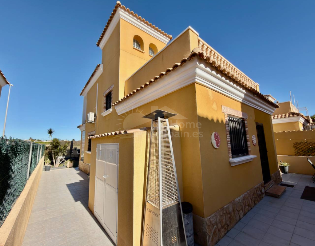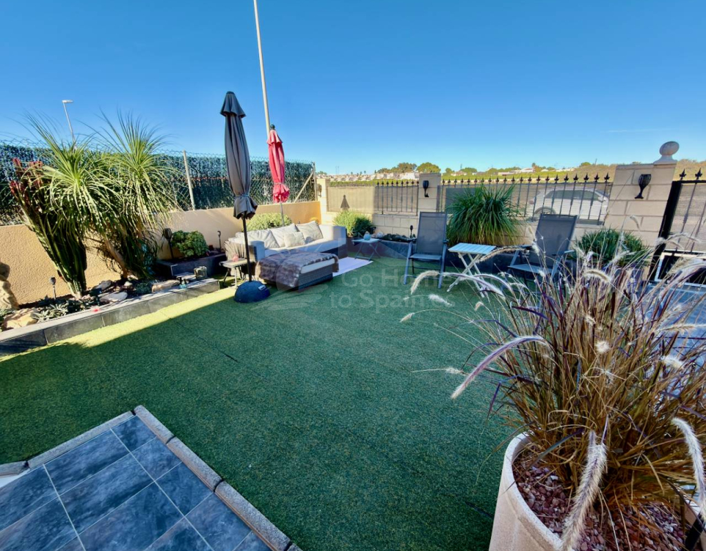 This beautifully maintained 3-bedroom villa, built in 2006, offers an excellent blend of comfort, space, and convenience. With a 119m² build set on a generous 250m² plot, the home provides ample indoor and outdoor areas ideal for full-time living, holidays, or investment. The property features a bright open-plan living and dining room, complemented by a separate fully fitted kitchen equipped with white goods. Three well-sized bedrooms come with built-in wardrobes, providing plenty of storage, and the home includes 2 bathrooms for added convenience. Equipped with air conditioning and ceiling fans, the villa ensures year-round comfort. A storage room offers additional practicality, while furniture is negotiable, allowing you the flexibility to personalise the home to your taste. Outdoors, the property impresses with private gardens, garden views, and room for a pool, offering great potential for further development. The north-east facing orientation provides morning sunshine and comfortable afternoon shade. A private solarium adds extra outdoor living space, perfect for relaxing or entertaining. The villa benefits from off-road private parking, making everyday living easy and convenient. Located just 5 minutes from local amenities, 10 minutes from the beach, 15 minutes from golf, and 30 minutes from the airport, this home offers the ideal balance of tranquility and accessibility. With the added benefit of being within walking distance to amenities, the location is exceptionally convenient.