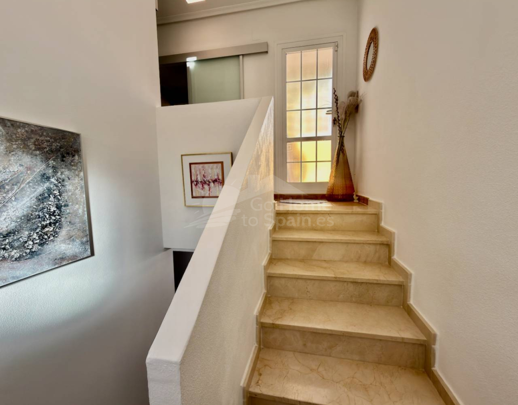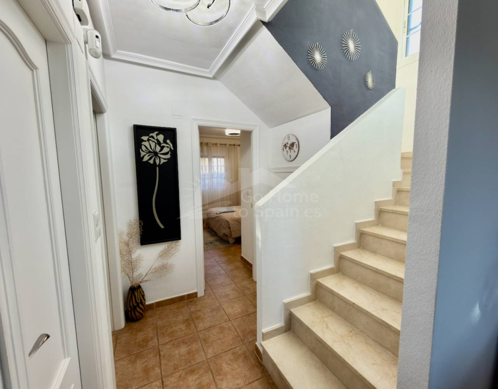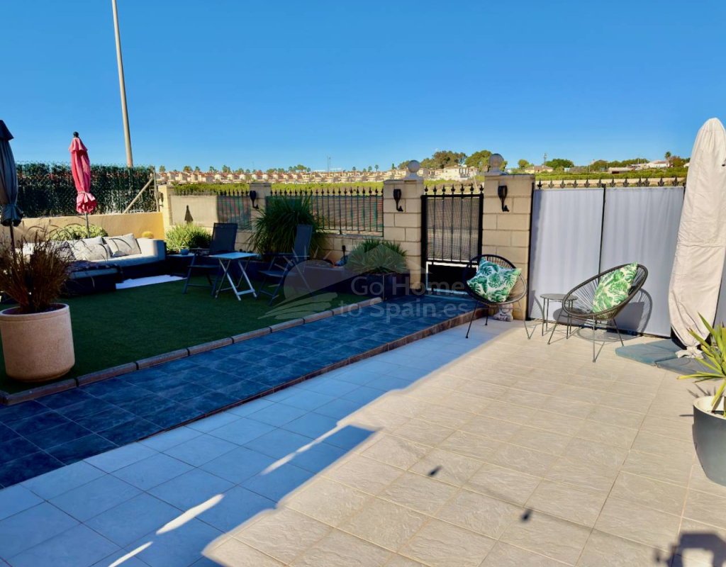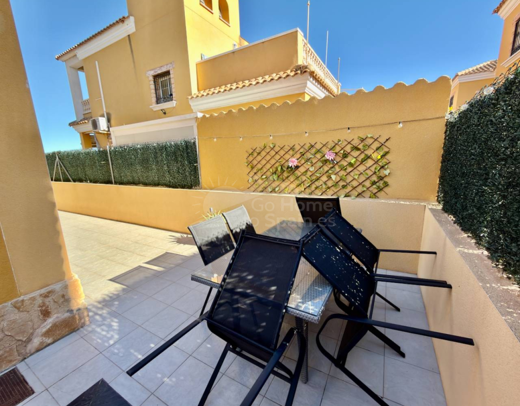 This beautifully maintained 3-bedroom villa, built in 2006, offers an excellent blend of comfort, space, and convenience. With a 119m² build set on a generous 250m² plot, the home provides ample indoor and outdoor areas ideal for full-time living, holidays, or investment. The property features a bright open-plan living and dining room, complemented by a separate fully fitted kitchen equipped with white goods. Three well-sized bedrooms come with built-in wardrobes, providing plenty of storage, and the home includes 2 bathrooms for added convenience. Equipped with air conditioning and ceiling fans, the villa ensures year-round comfort. A storage room offers additional practicality, while furniture is negotiable, allowing you the flexibility to personalise the home to your taste. Outdoors, the property impresses with private gardens, garden views, and room for a pool, offering great potential for further development. The north-east facing orientation provides morning sunshine and comfortable afternoon shade. A private solarium adds extra outdoor living space, perfect for relaxing or entertaining. The villa benefits from off-road private parking, making everyday living easy and convenient. Located just 5 minutes from local amenities, 10 minutes from the beach, 15 minutes from golf, and 30 minutes from the airport, this home offers the ideal balance of tranquility and accessibility. With the added benefit of being within walking distance to amenities, the location is exceptionally convenient.