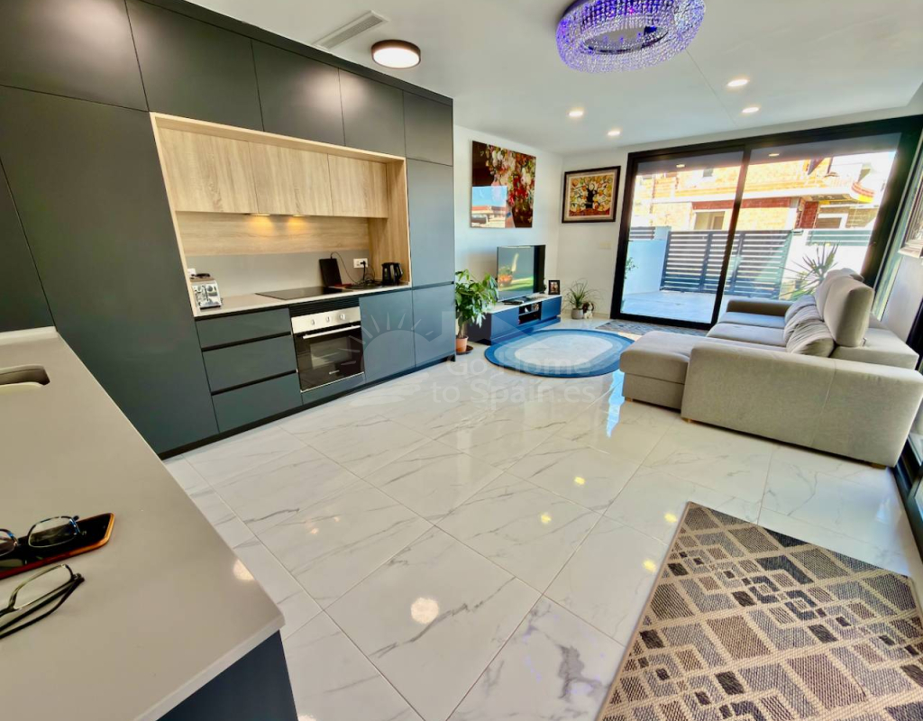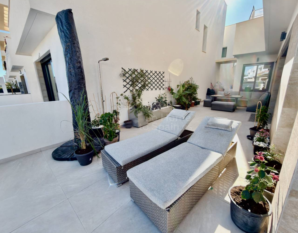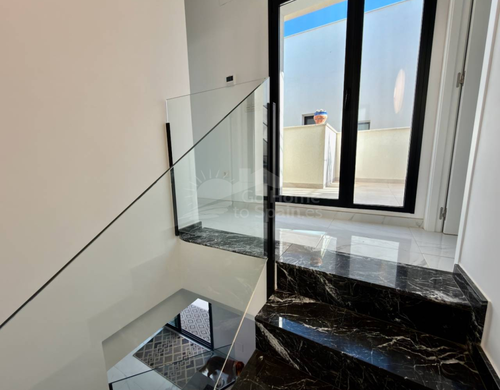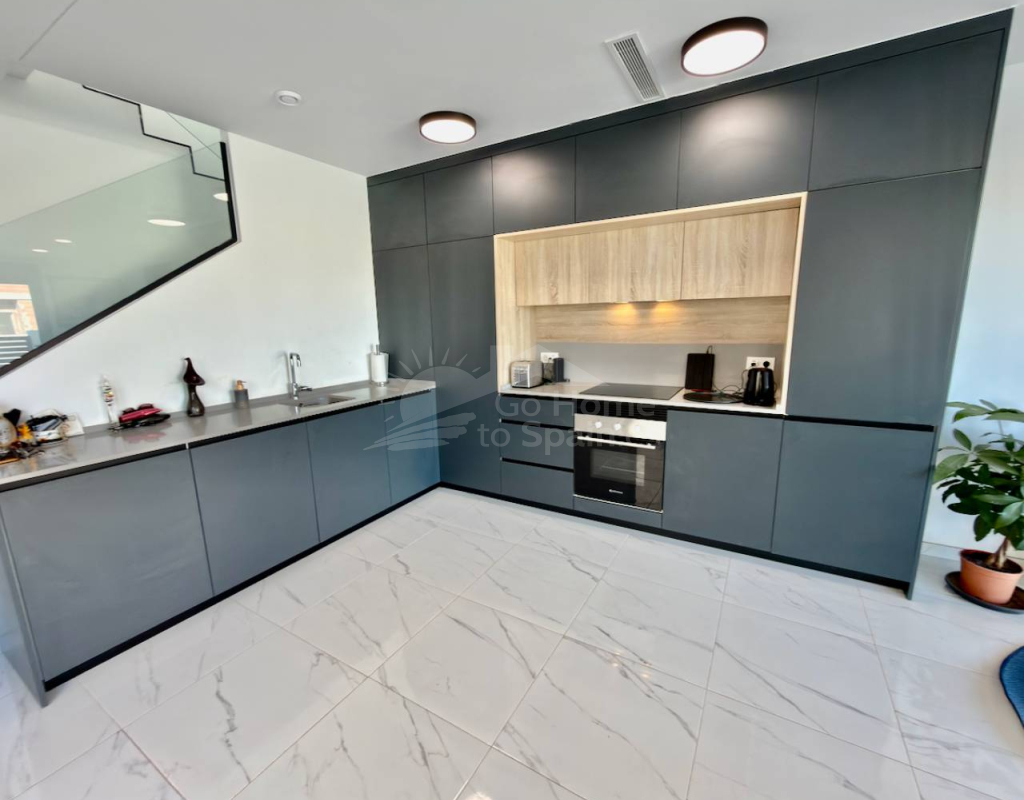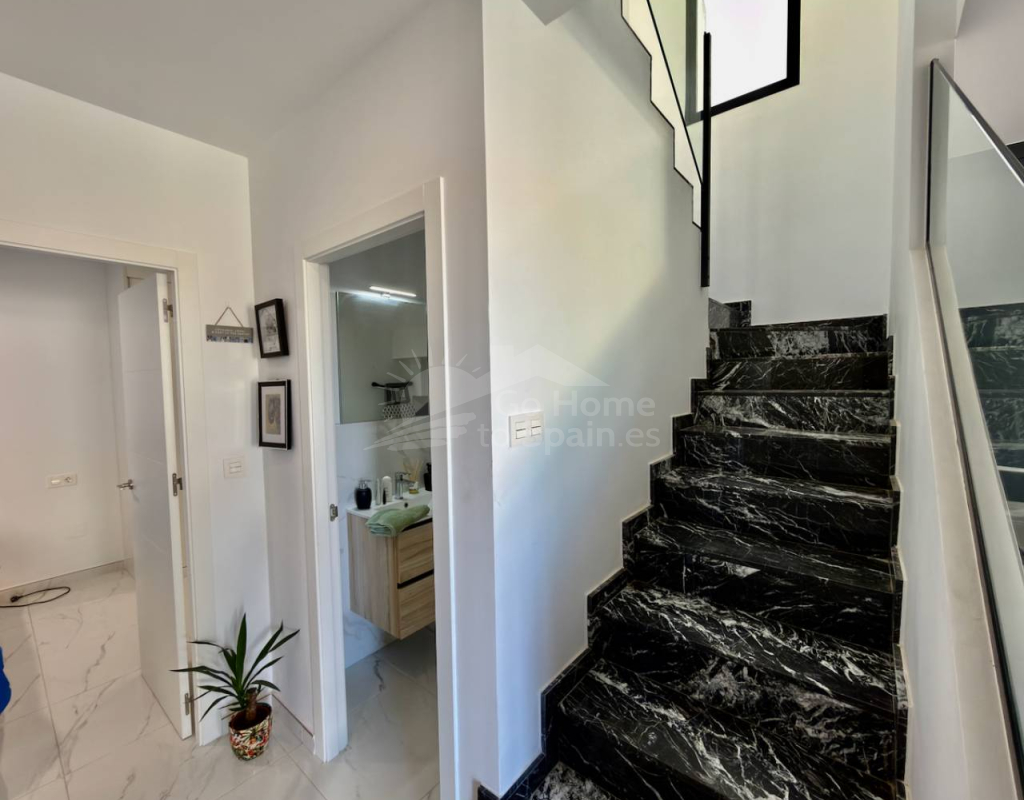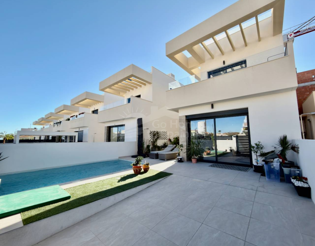 Discover this exceptional New Build Villa just 2 years No need to wait? With many extras. 3-bedroom, 2-bathroom modern home, built in 2025 and presented in excellent condition. With a generous 169m² build on a 109m² plot, this property offers contemporary living in a highly desirable location just 15 minutes from the beach, 30 minutes from the airport, and only 5 minutes from local amenities. Designed with comfort and lifestyle in mind, the home features an open-plan living and dining area, an American-style kitchen, and three fitted wardrobes. The master bedroom benefits from a stylish ensuite, while an additional toilet and utility room add convenience for everyday living. Outside, enjoy a private pool, easy-maintenance gardens, and both garden and pool views, all within a north-facingorientation. The property also includes off-road parking with electric gates, ensuring both security and ease of access. High-quality finishes and modern features include air conditioning, ceiling fans, white goods, and underfloor heating, creating a comfortable environment all year round. Furniture is negotiable, offering flexibility to suit your needs. Situated in a tranquil area yet close to the main town and just 15 minutes from golf, this home perfectly blends convenience, comfort, and contemporary style.
