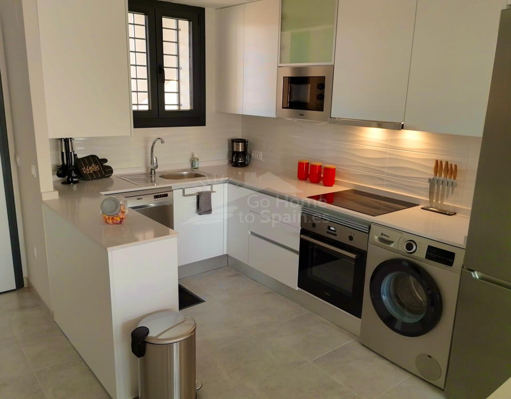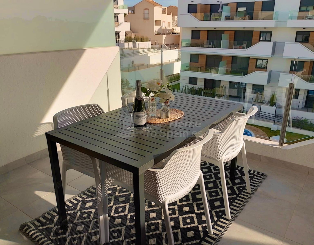Charming Apartment in Orihuela Welcome to this delightful two-bedroom apartment located in the picturesque area of Costa Blanca Sur, Orihuela. This property harmoniously combines comfort and modern living, creating a perfect retreat by the Mediterranean Sea. Inviting Living Spaces As you step inside, you'll immediately be greeted by an open and airy layout that encompasses a total built area of 70 square meters. The spacious living area is designed to provide an atmosphere of warmth and relaxation, enhanced by natural light streaming in from the large windows. The American-style kitchen seamlessly integrates with the living and dining space, making it ideal for entertaining family and friends. Comfortable Bedrooms The apartment boasts two well-appointed bedrooms, each crafted with comfort in mind. The master bedroom and guest room both offer ample space to unwind, ensuring restful nights. With two modern bathrooms, you'll find convenient access for both family members and guests, elevating the ease of daily living. Outdoor Oasis One of the standout features of this property is the generous terrace of 11 square meters. This outdoor space serves as a private oasis, perfect for enjoying morning coffee or evening relaxation while soaking up the sun and appreciating the pleasant local climate. Additionally, a charming balcony provides another outdoor spot to enjoy the fresh air. Community Amenities Your new home also features a stunning community swimming pool, an ideal place to cool off during the warmer months and socialize with neighbors. The property comes fully furnished, ensuring an effortless transition as you begin to make memories in your new abode. Practical Features This apartment is equipped with modern comforts, including air conditioning to keep you cool during the summer heat. Additional conveniences include a garage and covered parking, providing secure options for your vehicles. Energy Efficiency The property holds an energy certification of C, ensuring efficiency and environmental consideration are at the forefront of this delightful home. Location Highlights Located in the beautiful province of Alicante, Orihuela offers stunning landscapes and a vibrant local culture. The picturesque beaches, charming streets, and delicious culinary offerings make this area a sought-after destination for both residents and visitors. Experience the true essence of coastal living while enjoying the intricate blend of relaxation and leisure that Costa Blanca Sur has to offer.