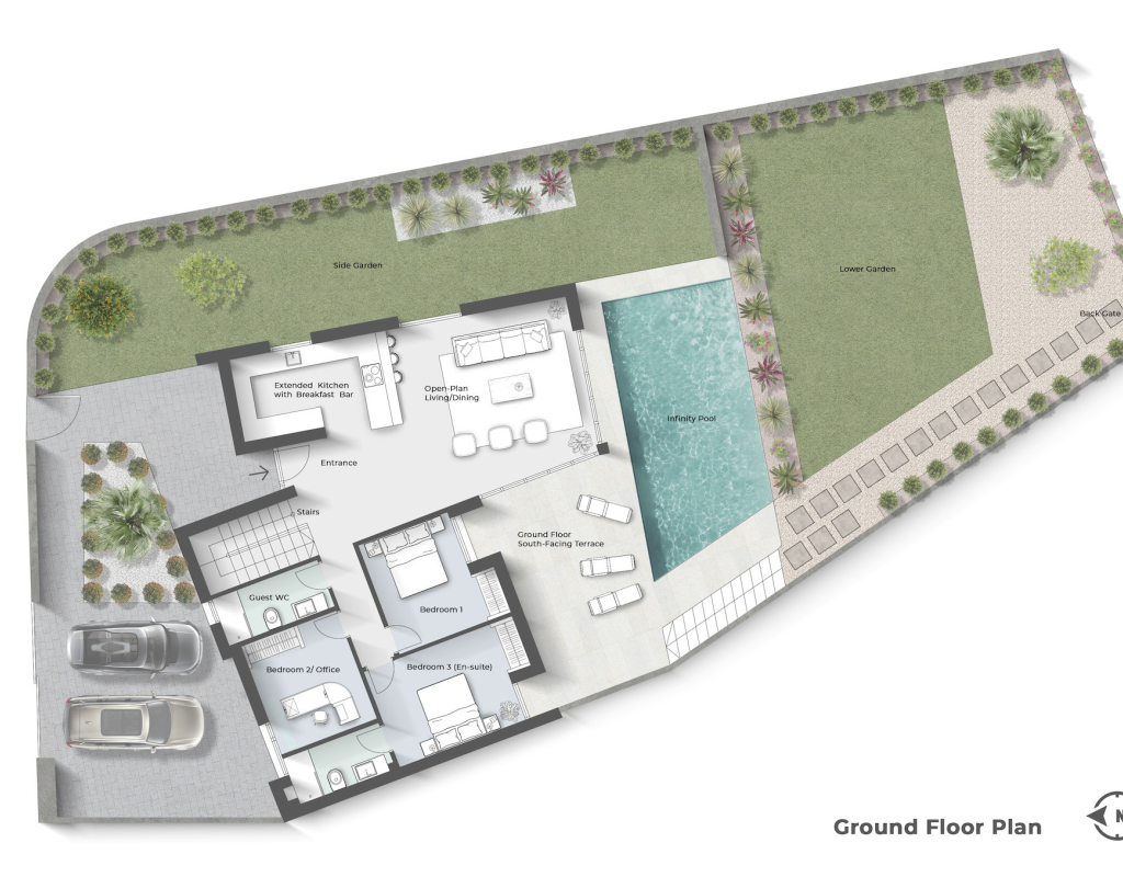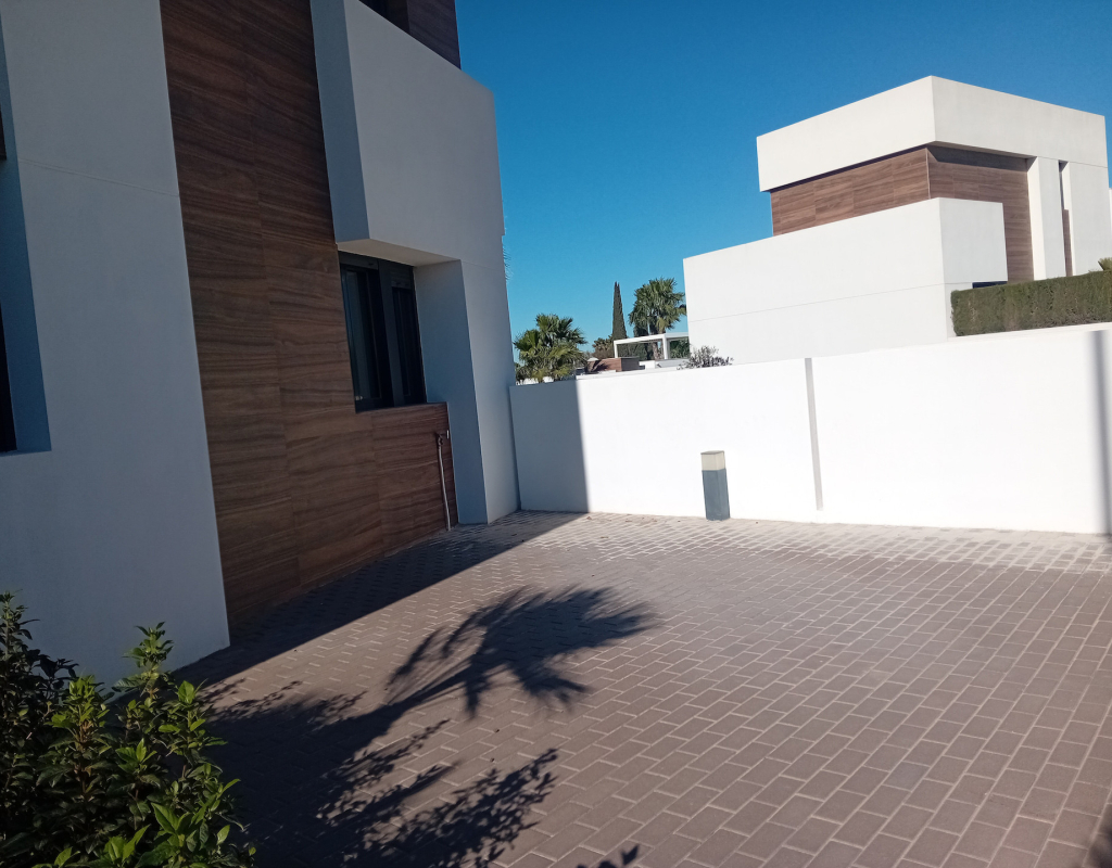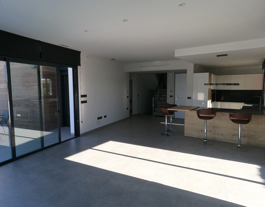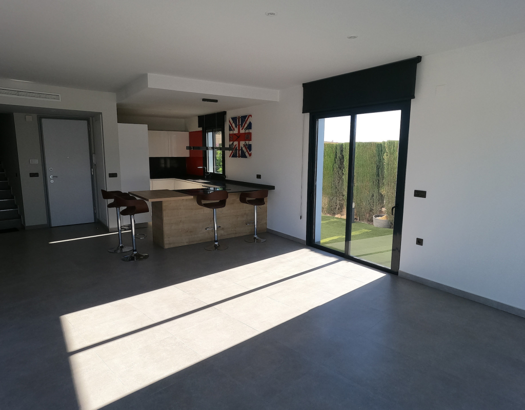 Stunning South-Facing Villa in prominent position to La Finca Golf with Exceptional Privacy, Infinity Pool & a 120m² Designer Underbuild. Positioned on one of the most privileged front line plots in all of La Finca Golf, this modern 4-bedroom villa combines architectural elegance, panoramic golf and mountain views, complete privacy, and a unique 120m² daylight-filled under build with spectacular pool windows — a feature rarely found anywhere in Spain. Just 30 minutes from Alicante Airport, this is the ideal base for year-round living, long golf weekends, or a premium holiday home. Property Overview 4 bedrooms 3 bathrooms + 1 guest WC 300 m² built area (including 120 m² under build) 440 m² private plot South-facing Front line golf position with uninterrupted views Infinity private pool with pool-window feature Large terraces + 65 m² solarium Parking area and dual access (front & back entrances) No community fees A Home Designed Around Light, Views and Privacy The villa enjoys one of the most private positions on La Finca — a rarity on the resort. No neighbouring properties overlook the pool, terraces or solarium, allowing for complete sunbathing privacy, even au naturel if desired. The elevated plot and open vistas provide a serene, exclusive atmosphere from sunrise to sunset. Main Living Area The ground floor is a bright, open-plan space framed by floor-to-ceiling glass, bringing views and sunlight into every corner. Spacious living room with panoramic views High ceilings for an airy architectural feel Direct access to the pool and terraces Seamless indoor–outdoor flow The Siemens-equipped kitchen includes: Siemens refrigerator Siemens dishwasher Dual Siemens ovens AEG induction hob with integrated extractor Abundant worktop and storage space Breakfast bar island Bedrooms and Bathrooms The villa offers four well-appointed bedrooms, each with large fitted wardrobes and beautiful natural light. Main level Three bedrooms, one with en-suite with bathtub Direct terrace and pool access from two bedrooms Additional family shower room Upper level Master suite with private bathroom Sliding doors to a spectacular wrap-around solarium Far-reaching views over the golf course and surrounding mountains 120 m² Underbuild — A Rare, Versatile Living Space This remarkable level is unlike anything else on La Finca: Flooded with natural light Show-stopping glass windows looking directly into the pool Guest WC + full laundry area (Siemens washing machine & Siemens dryer) This space can be transformed into: Cinema room Gym Games & bar lounge Additional living quarters Office + studio Wellness spa area The cool summer temperatures make it ideal for year-round use. Outdoor Living Infinity pool with underwater windows Large sun terraces with unbeatable views Beautiful low-maintenance landscaping South orientation for maximum sun exposure Elevated plot ensuring privacy 65 m² rooftop solarium for sunsets, yoga, dining, or a jacuzzi Additional Features Mitsubishi Electric air conditioning (efficient heating & cooling) Motion-detection alarm system High-speed fiber optic internet Electric shutters Front and rear access ideal for guests or deliveries Short walk to restaurants, bars, shops and services Access to La Finca’s spa, golf academy, padel and tennis club, and fitness facilities Lifestyle and Location La Finca Golf is one of Spain’s most highly regarded golf resorts, ranked among the Top 100 Golf Resorts in Europe. The villa is within minutes of: Renowned golf course with academy Tennis & padel club Luxury hotel & spa Gyms, hiking routes & mountain biking trails Excellent restaurants and entertainment Award-winning beaches (20 minutes) A rare combination of luxury, architecture, natural light, privacy, and an unbeatable front line setting. Viewing Highly Recommended Homes with this level of privacy, orientation and design are rarely available. Viewings are by appointment only.