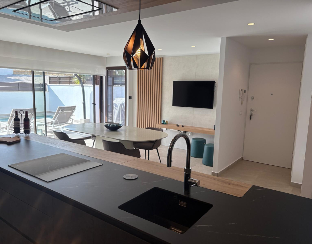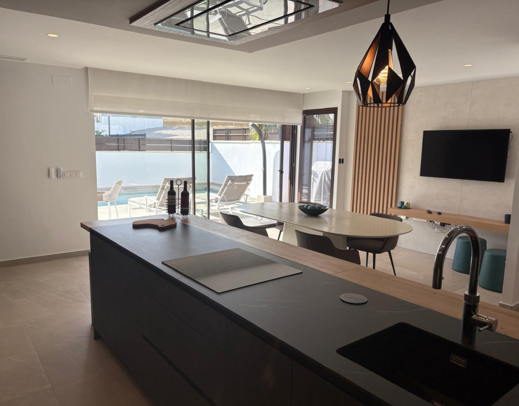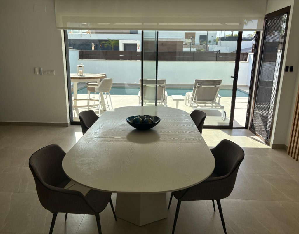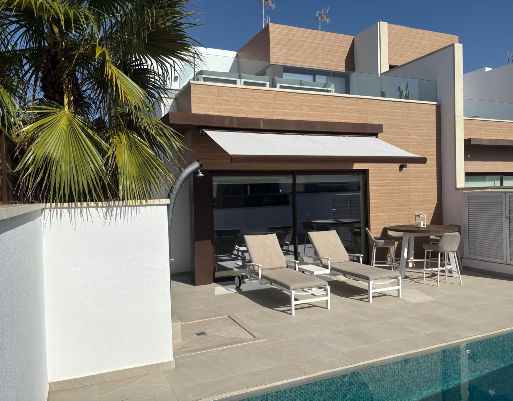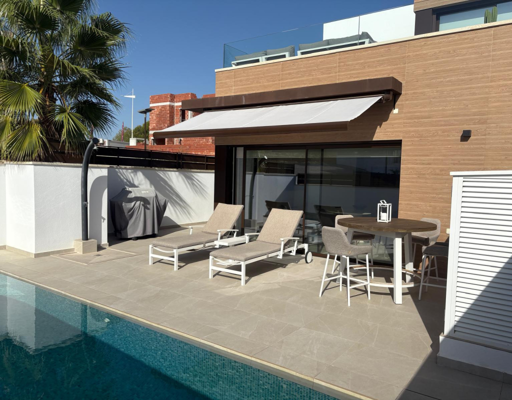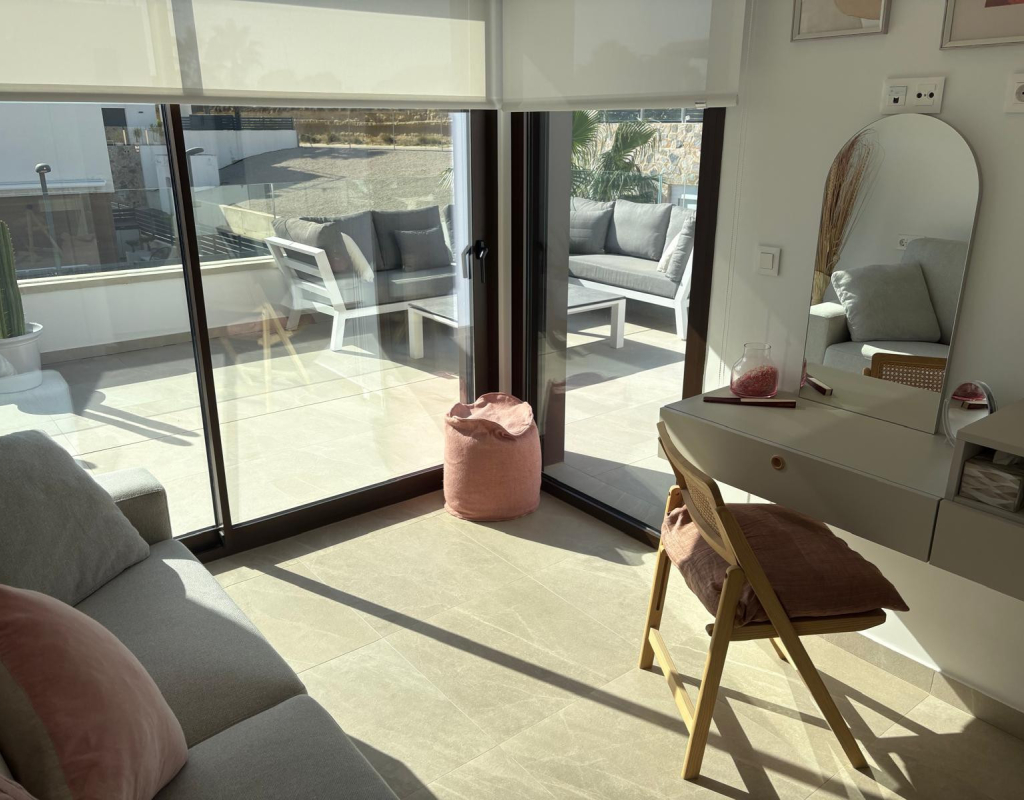 This beautiful villa is now available. Located on the prestigious La Finca Golf resort and walking to fantastic amenities. The villa has an internal space that flows effortlessly, and is flooded with light due to its sunny south facing orientation. The lounge overlooks the pool and low maintenance garden.. the luxury, designer kitchen is very impressive with built in appliances included. There are 3 double bedrooms and 2 bathrooms in the main accomodation and the added bonus of a very large underbuild space accessed via steps down from the lounge. This space could be used as a guest accomodation and has a kitchenette and bathroom. The various terraces and roof garden are perfect for entertaining, dining or relaxing. This property is immaculately presented and would make an ideal full time residence or holiday home. Contact us today to arrange a viewing!